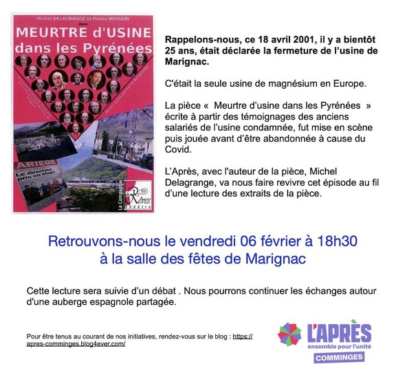 The play “Meurtre d’usine dans les Pyrénées” (Factory Murder in the Pyrenees), based on eyewitness accounts, was staged and performed before being abandoned because of the COVID.