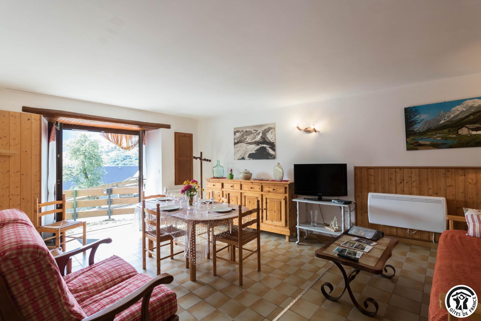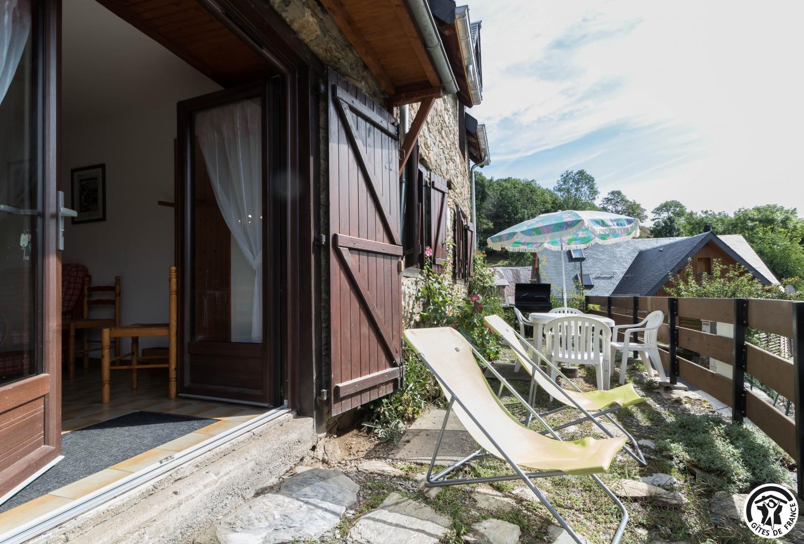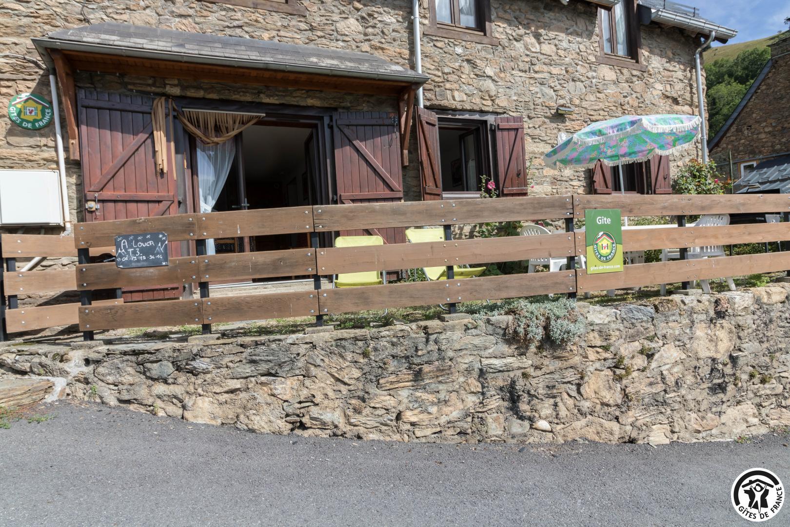 60m2 single-storey gîte with a 22m2 living area comprising a lounge area, dining area and kitchen. An adult bedroom of 8m2 with 1 double bed (140x190cm) and a children&s bedroom of 10m2 with 2 single beds (90x190cm) (stunning mountain views from the bedrooms), a shower room with shower cubicle and washbasin, and a separate WC. Small terrace with garden furniture, deckchairs and barbecue. Public parking 20 metres away. The owners’second home is above the gîte.