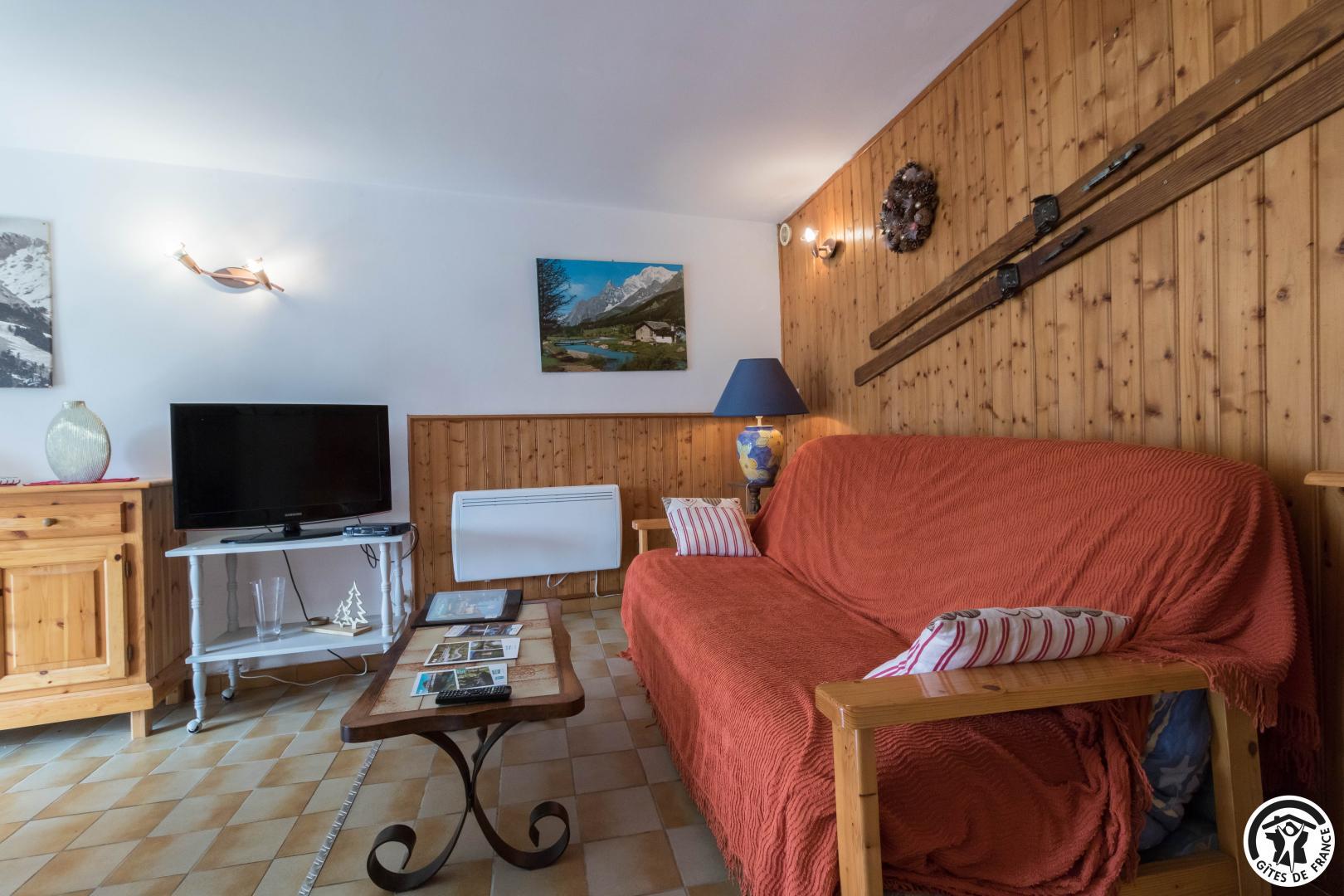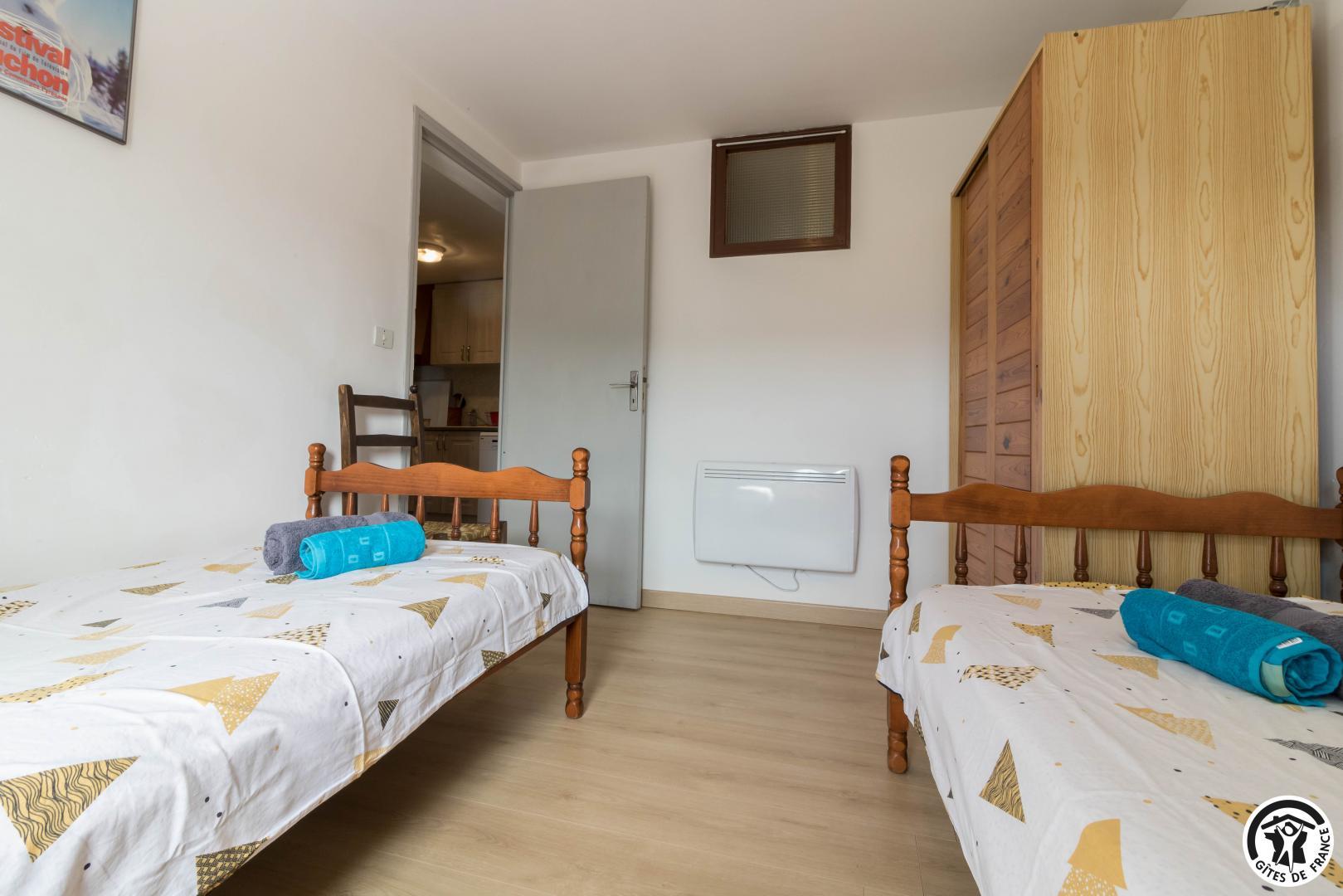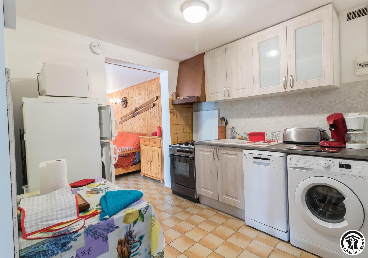 60m2 single-storey gîte with a 22m2 living area comprising a lounge area, dining area and kitchen. An adult bedroom of 8m2 with 1 double bed (140x190cm) and a children&s bedroom of 10m2 with 2 single beds (90x190cm) (stunning mountain views from the bedrooms), a shower room with shower cubicle and washbasin, and a separate WC. Small terrace with garden furniture, deckchairs and barbecue. Public parking 20 metres away. The owners’second home is above the gîte.