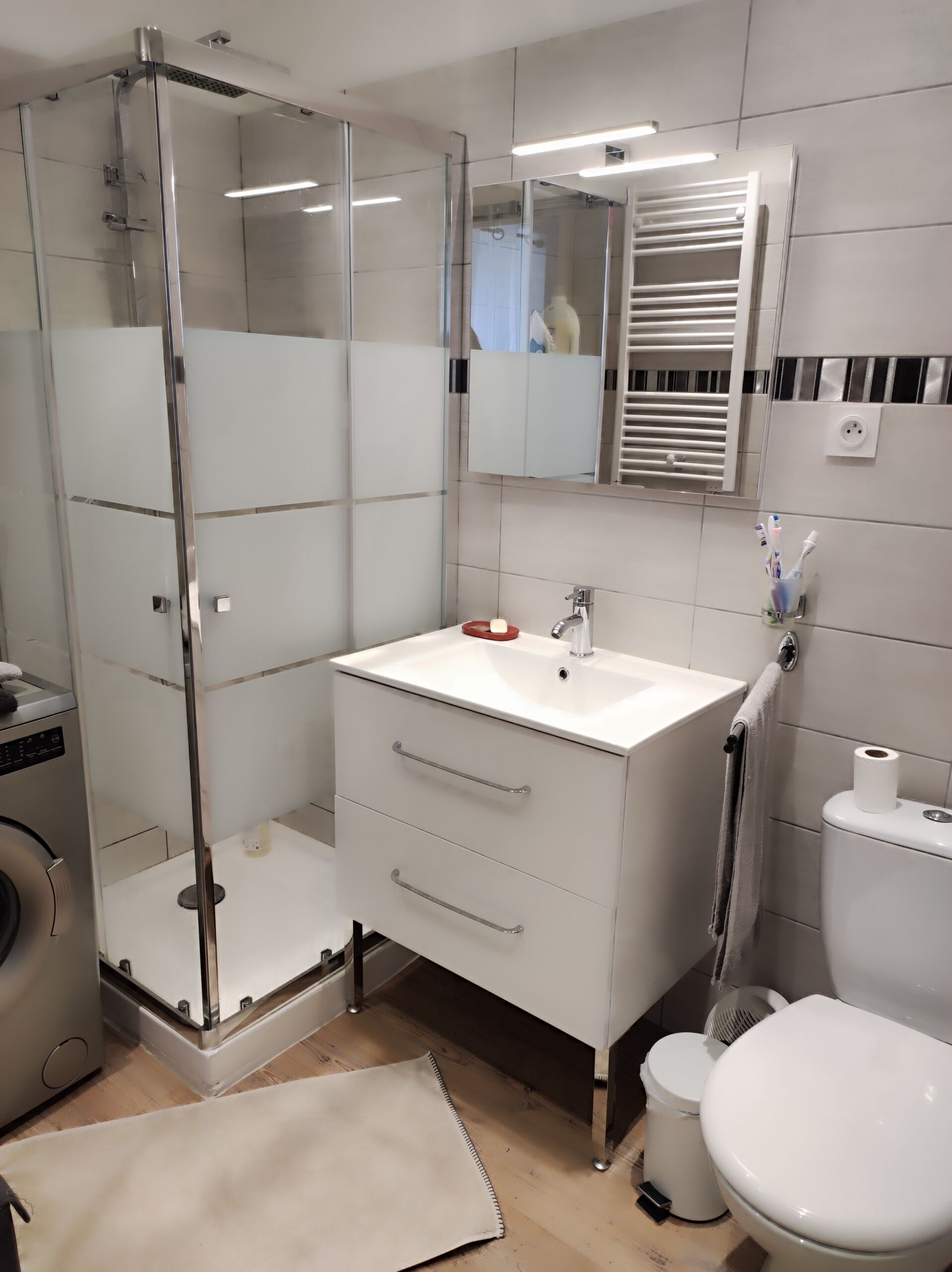 On the practical side, everything has been done to make your life easier: you have a private parking space in front of the house and access to the cellar with a large space for storing ski and/or bike equipment, bike rack…