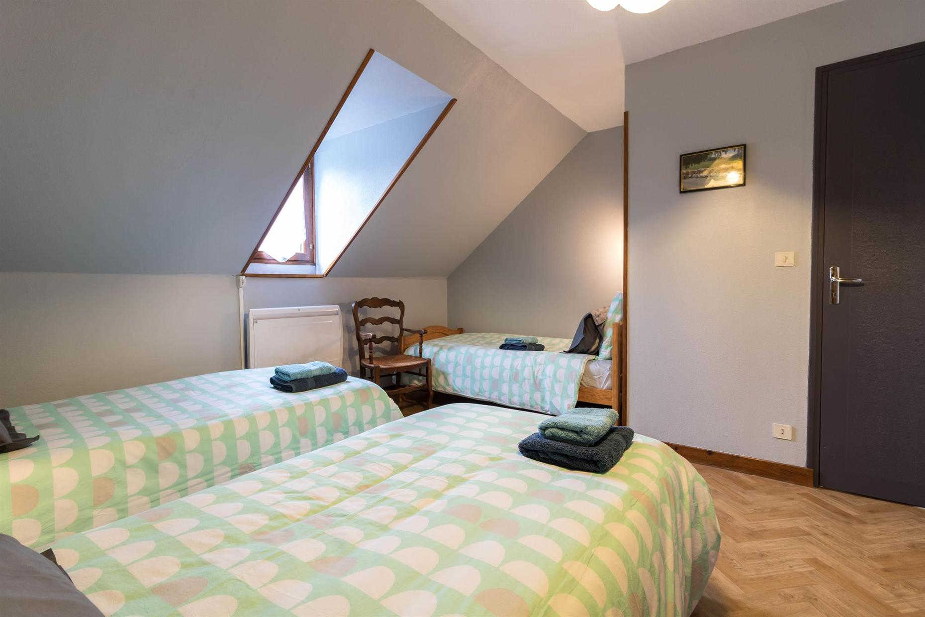 140m2 gîte with 1500m2 fully enclosed garden. First level: entrance onto a 13m2 veranda (table and 8 chairs, sofa, superb views of the garden and mountains), 30m2 dining room and lounge, 11m2 kitchen, 7m2 shower room, utility room, 10m2 “Le Port de Vénasque” sleeping area with 1 x 120x190cm single bed, chest of drawers and screen (separate from the living areas). Second level: “Ligarde” bedroom (10m2) with 1 double bed (140*190cm) and TV, “Le Sacroux” bedroom (13m2) with 3 single beds (90*190cm), “Le Sauvegarde” bedroom (10m2) with 1 double bed (140*190cm), 1.5m2 shower room (shower cubicle and washbasin), separate WC and relaxation area for children (sofa, board games for young and old, library, etc.).
