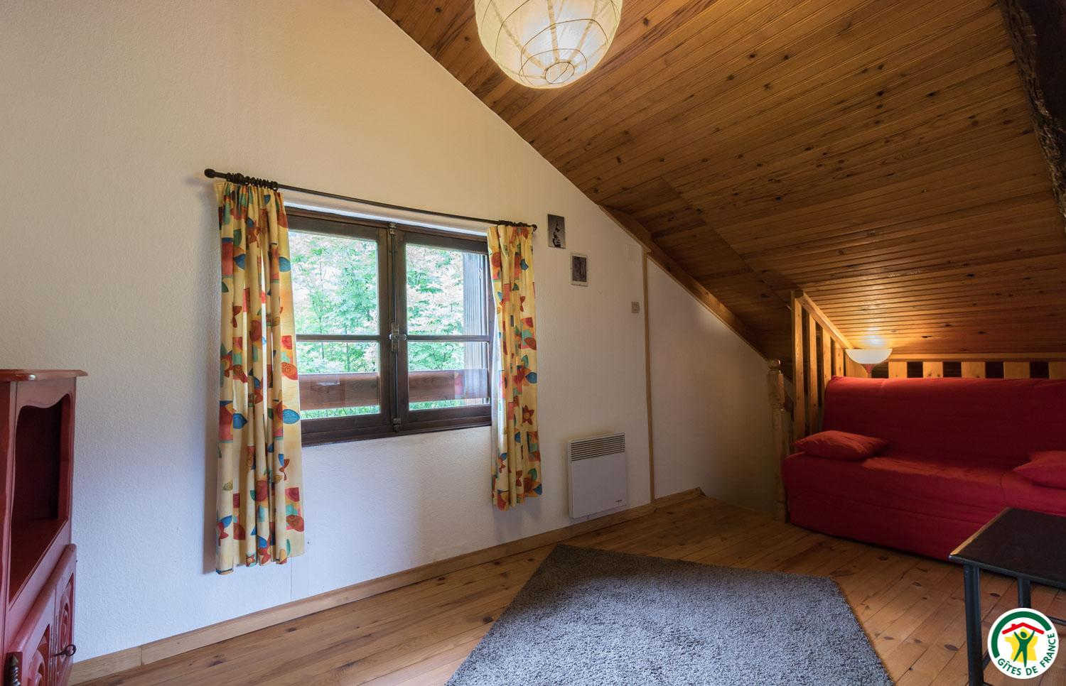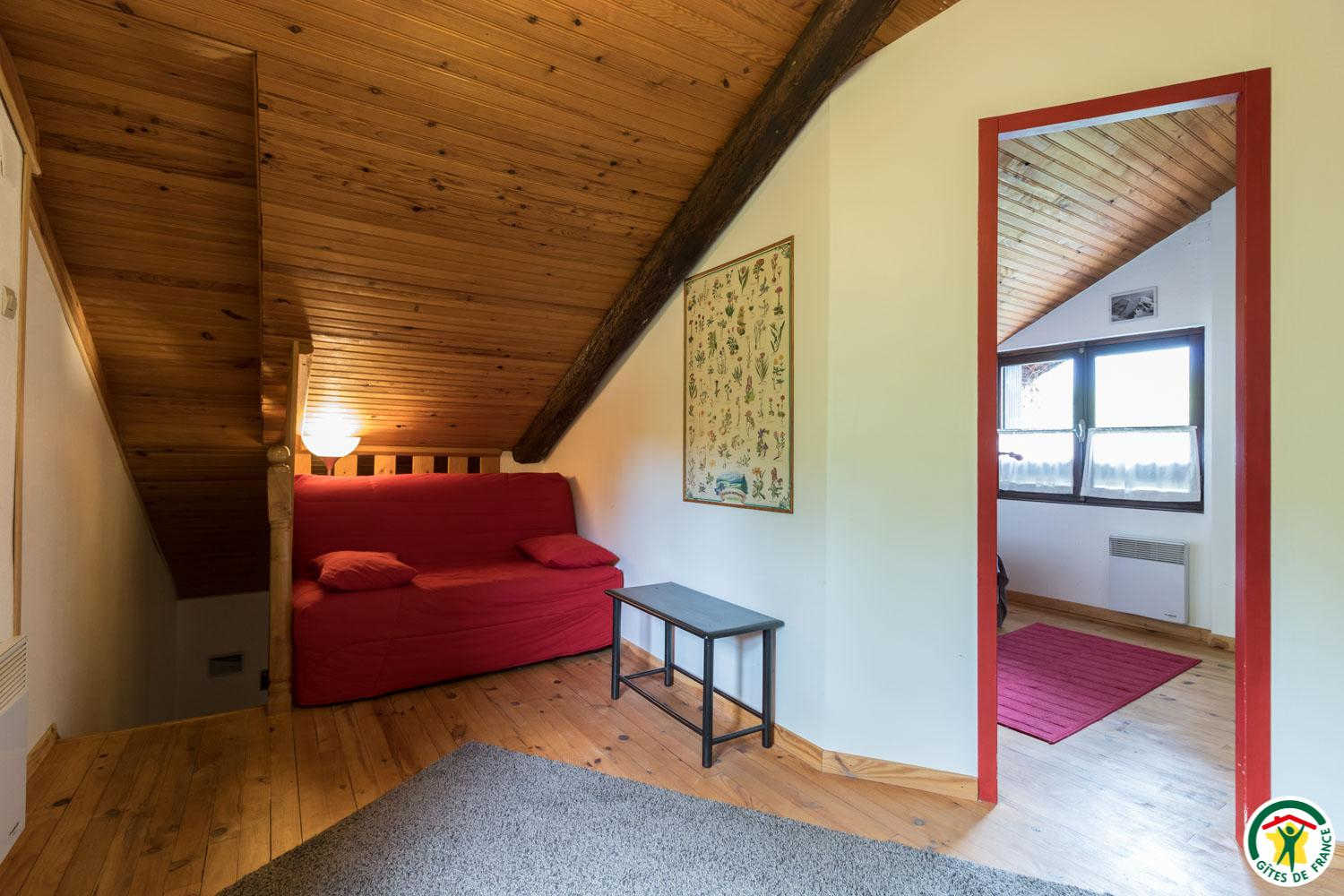 – First floor: mezzanine with sofa bed for 2 people (140*190cm), 2 attic bedrooms (1 double bed 140cm each), shower room/WC.