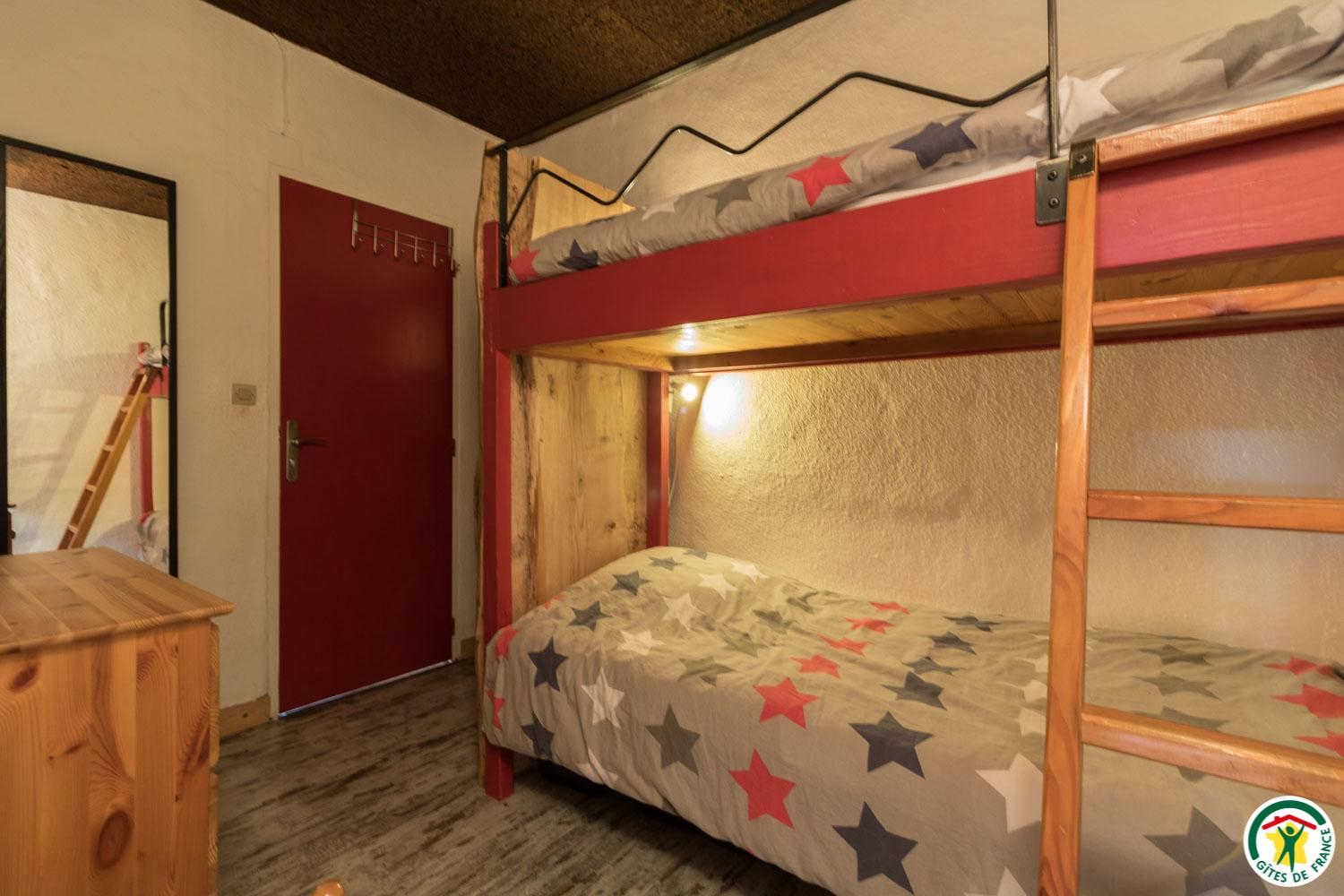 Gîte adjoining the owners’ house, access to the ground floor of the gîte after a few steps via the private terrace (3 bedrooms, 2 sleeping areas and 5 beds):