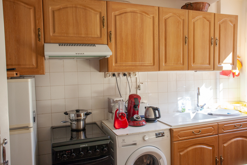 Fully-equipped living room/kitchen, extendable table, 5 chairs, 160 cm BZ sofa, washing machine… television…