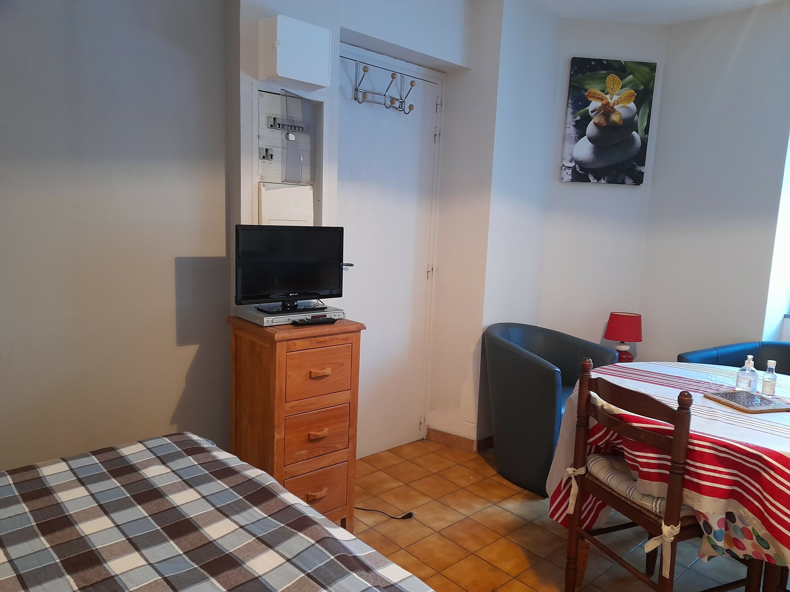 Kitchen included in the living room with dining area and a double bed (140cm), shower room with WC.