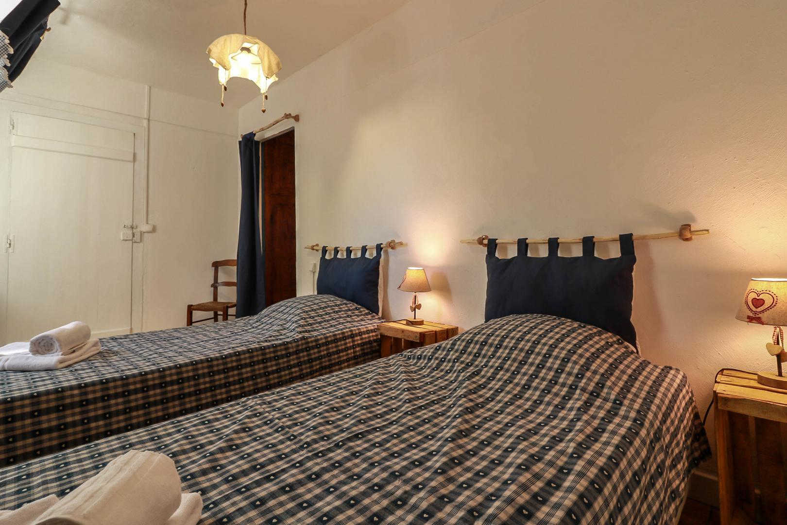 – on the second floor under the eaves, a family room: “L’Aneto” with, in a row, the children’s bedroom (2 single beds 90cm), the parents’ bedroom (1 double bed 160cm, and a double washbasin) and the separate shower room and WC.
