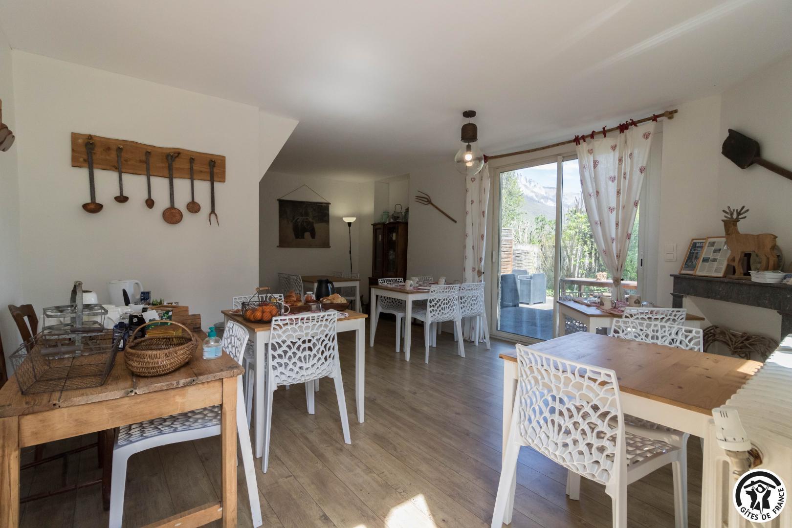 – on the ground floor: the entrance hall leads to the breakfast room, which opens onto the south-facing terrace, a sitting room with fireplace and television, and a large living room where table d’hôtes meals are served. An indoor sauna is available for the well-being of guests.