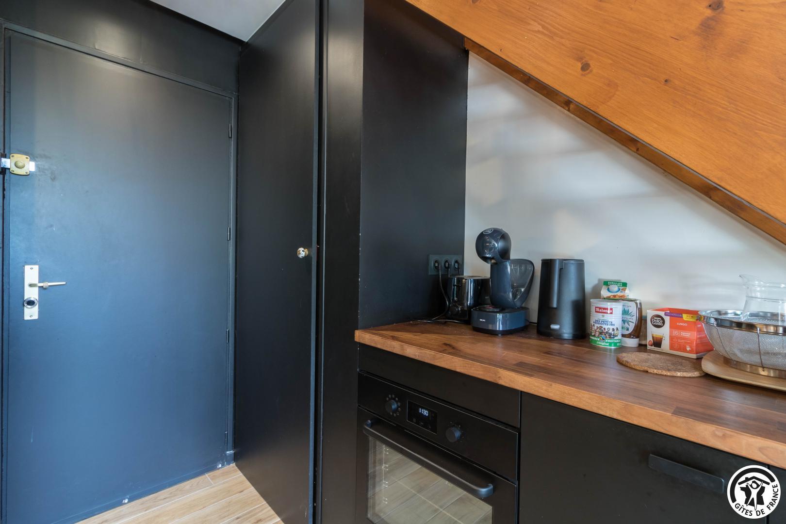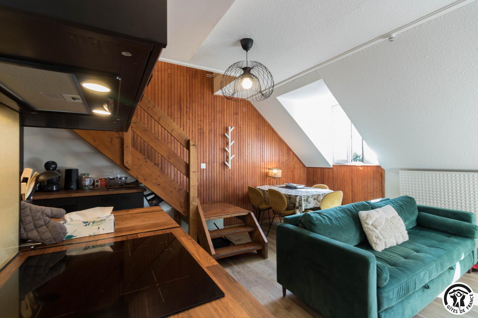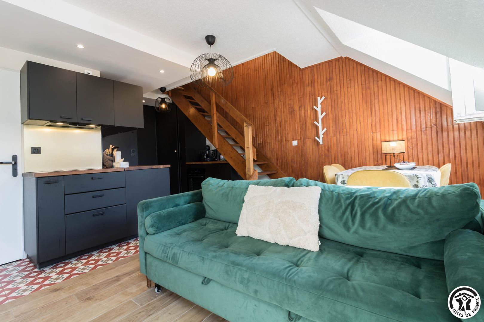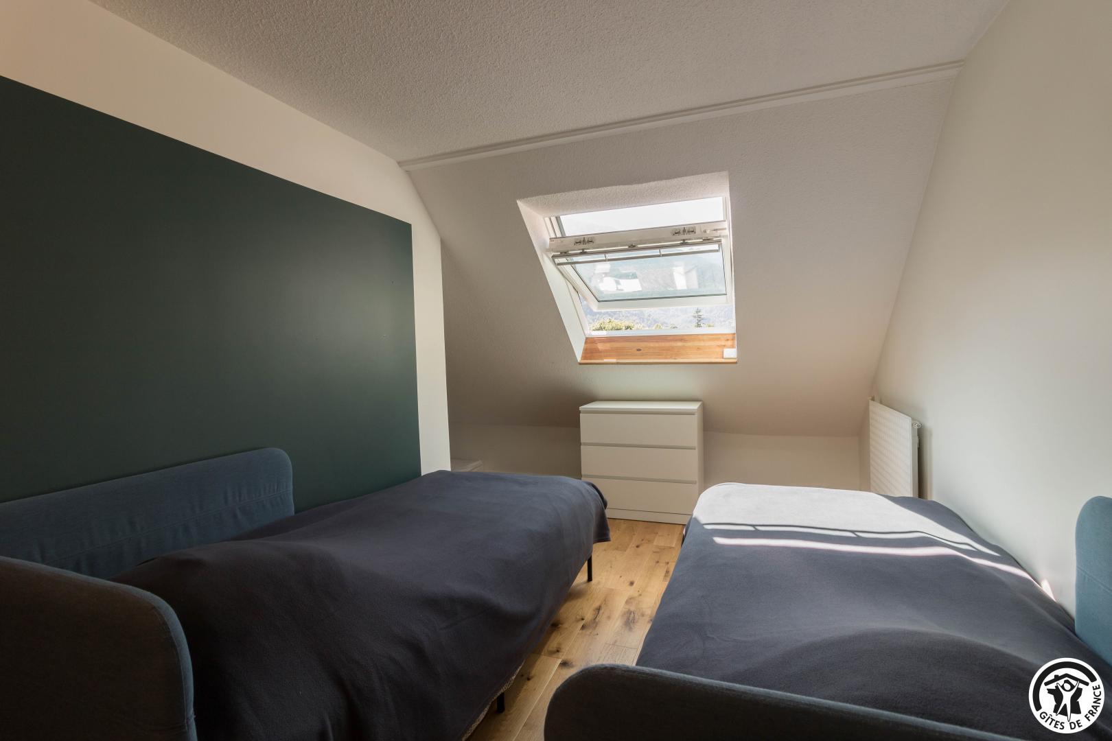 Discover the capital of the Central Pyrenees, thanks to this comfortable self-catering accommodation. This little Pyrenean jewel has everything you need for an unforgettable stay, and its decor is sober and refined. You will have access to a private underground parking space (at -1, accessible to small cars) and next to your parking space, a ski room. The flat is on the fourth floor with lift: entrance, living room (fitted kitchen, dining area and sitting area), shower room/WC. On the first floor, you will find 2 bedrooms (master bedroom: 6.27 loi Carrez and 12.04 on the floor, children’s bedroom: 9.97 loi Carrez and 16.76 on the floor) each with 2 single beds 90*200cm (the beds in the small bedroom can be twinned) and a WC (washing machine).