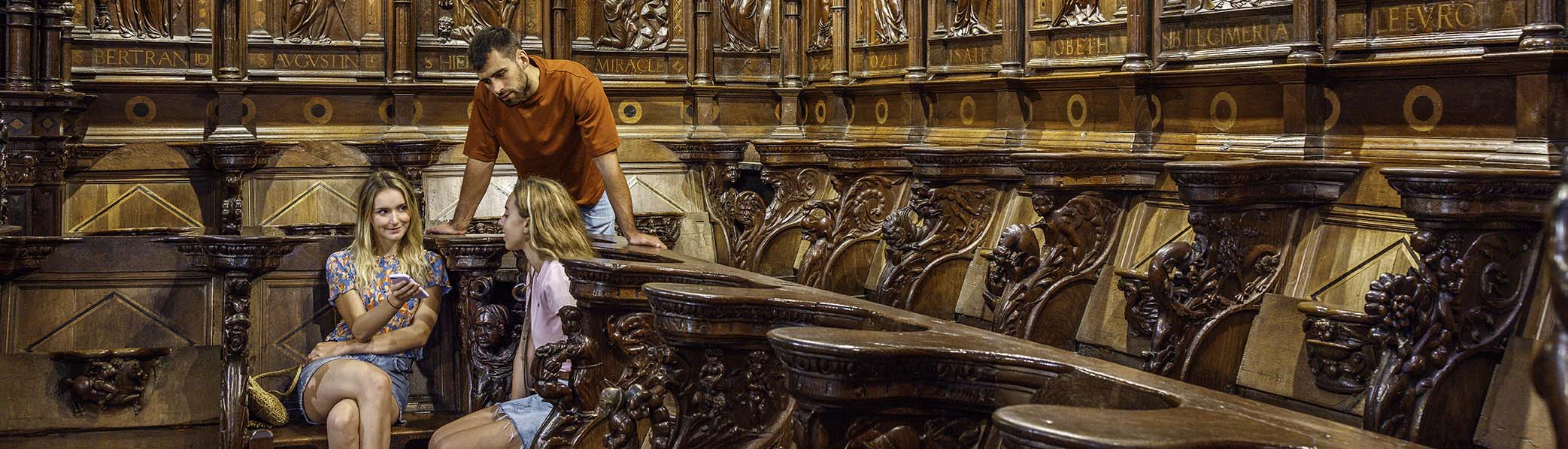 Al cruzar sus puertas, se entra en un mundo de serenidad y grandeza. La sillería del coro, finamente esculpida, el órgano monumental y las capillas ornamentadas revelan una artesanía excepcional, que sumerge al visitante en una atmósfera solemne y espiritual. Este lugar excepcional, a la vez refugio de peregrinos y joya patrimonial, deja una huella indeleble en el corazón de quienes pasan por él.