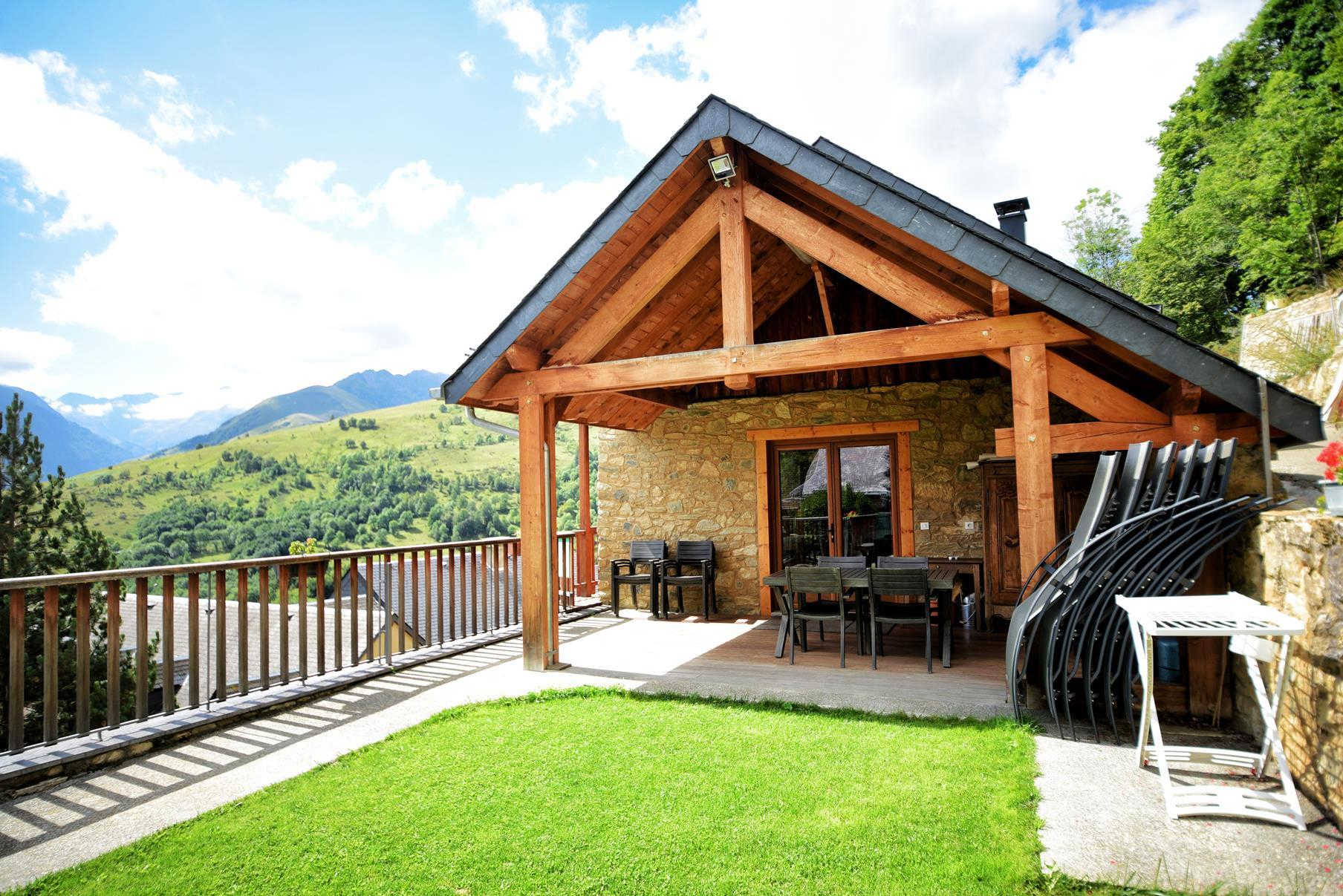 Casa rural de una sola planta en las alturas del pueblo con una vista excepcional de las cumbres pirenaicas