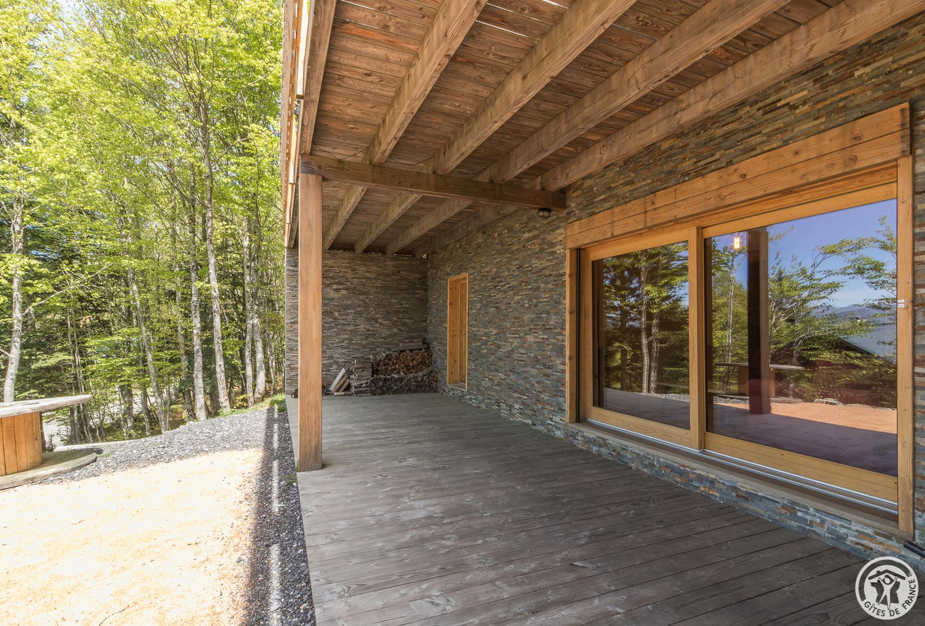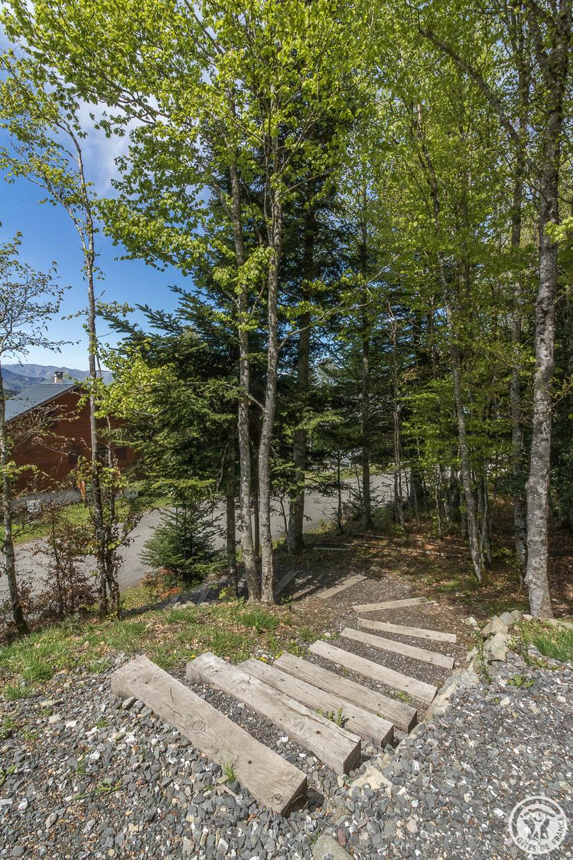Jean-Michel construyó este amplio y moderno chalet de madera, perfectamente integrado en su entorno, para alojar su casa de vacaciones en los 2 niveles superiores y una casa rural en el nivel del jardín (acceso independiente por una escalera desde la carretera de abajo). Situada en medio del bosque, la casa goza de una ubicación ideal a la entrada de la estación de Mourtis, donde se ofrecen actividades al aire libre tanto en verano como en invierno.