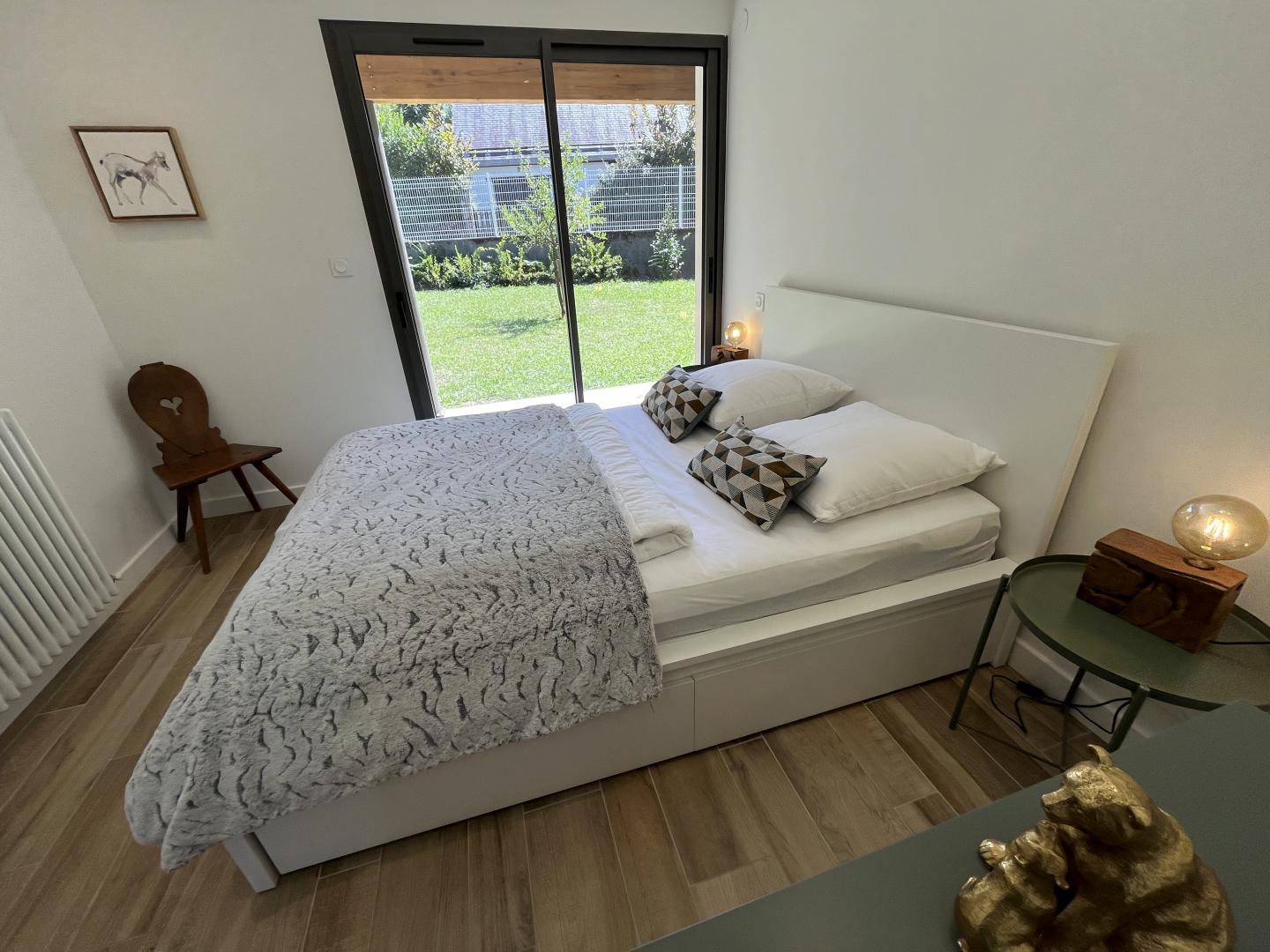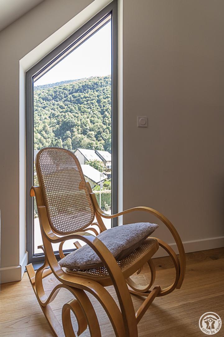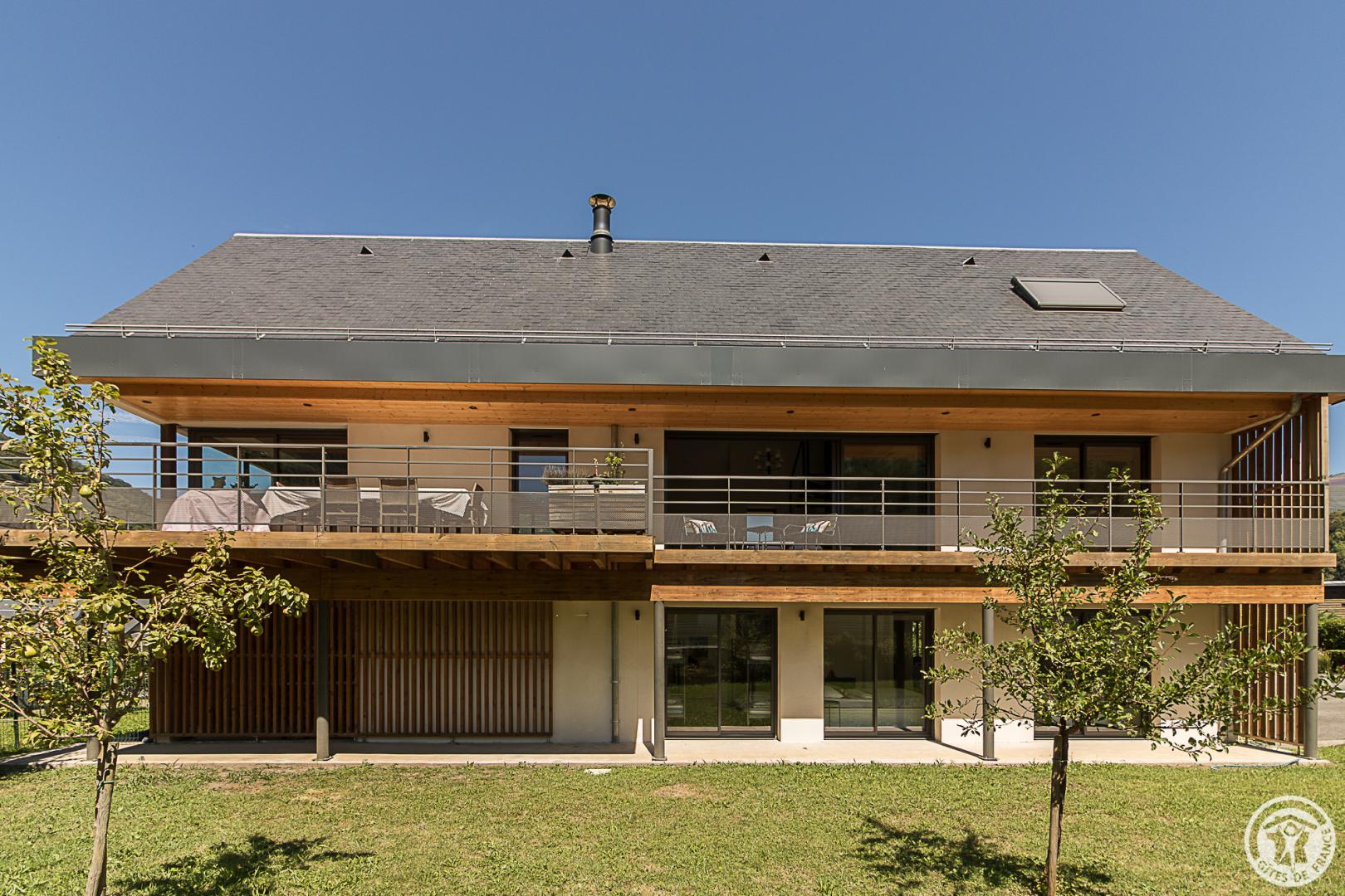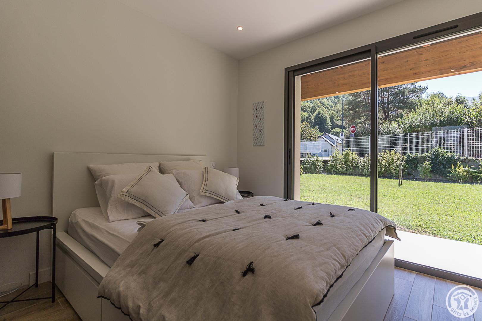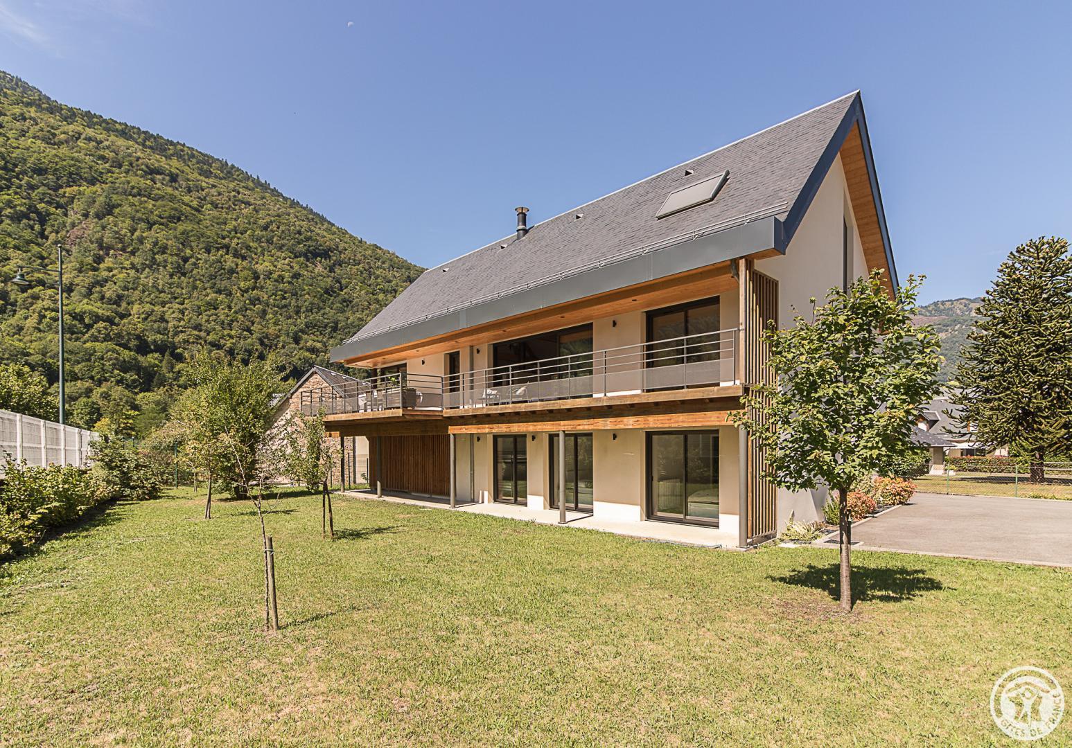 La casa rural está situada en un chalet contemporáneo orientado al sur, hacia las cumbres, en una zona residencial y tranquila. El exterior de 700 m² cuenta con un jardín con césped y árboles frutales, un patio y una cochera cubierta.