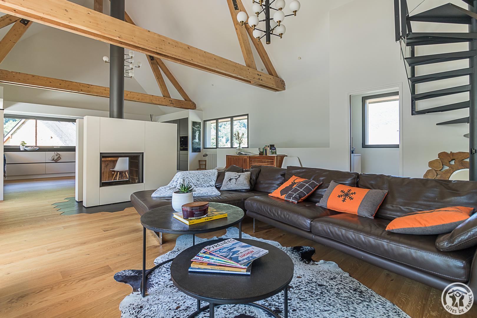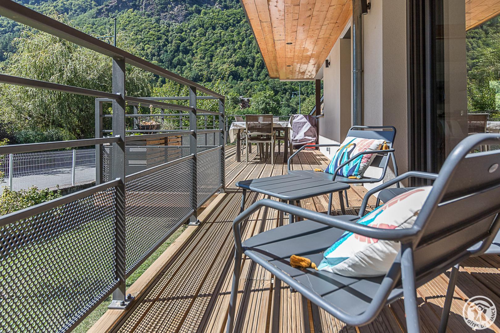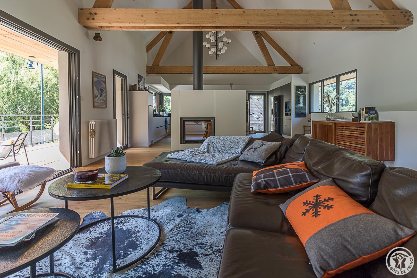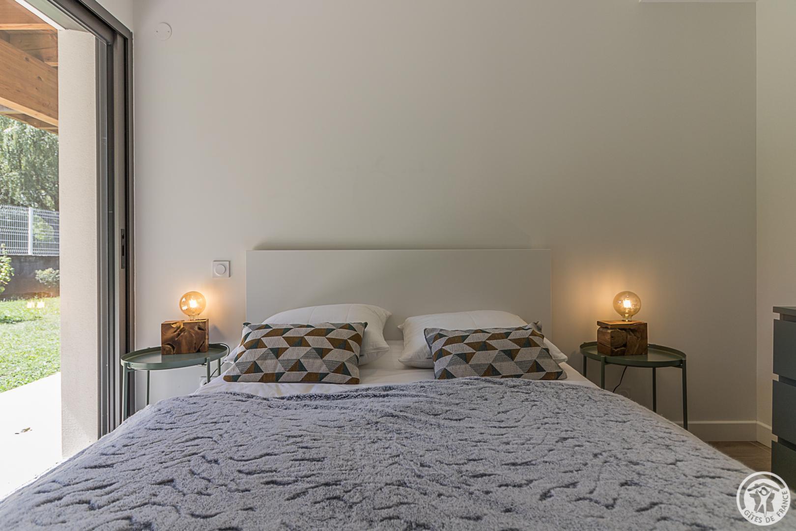 La casa rural está situada en un chalet contemporáneo orientado al sur, hacia las cumbres, en una zona residencial y tranquila. El exterior de 700 m² cuenta con un jardín con césped y árboles frutales, un patio y una cochera cubierta.