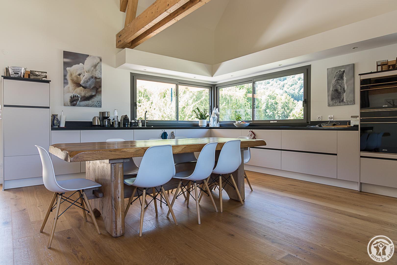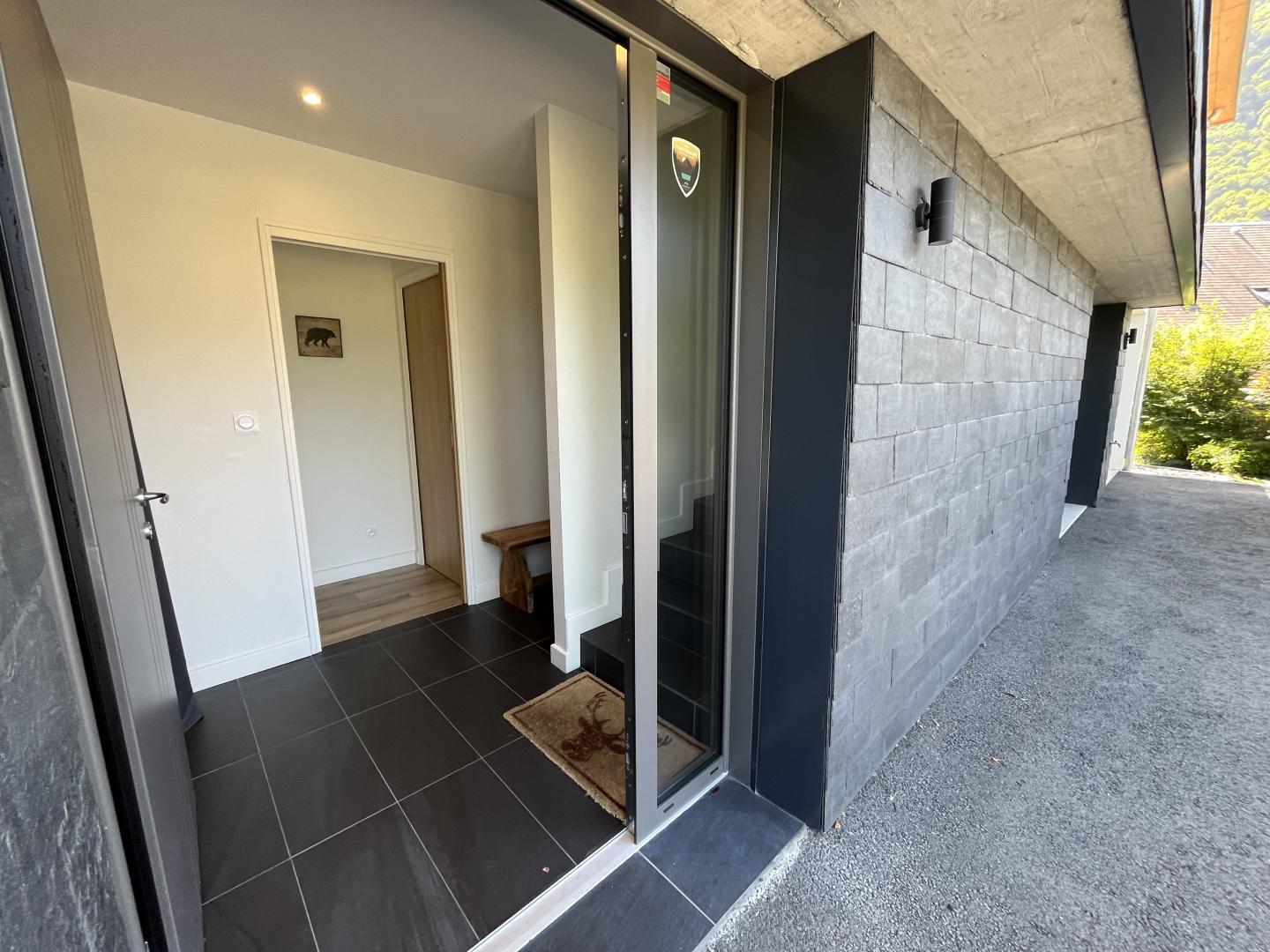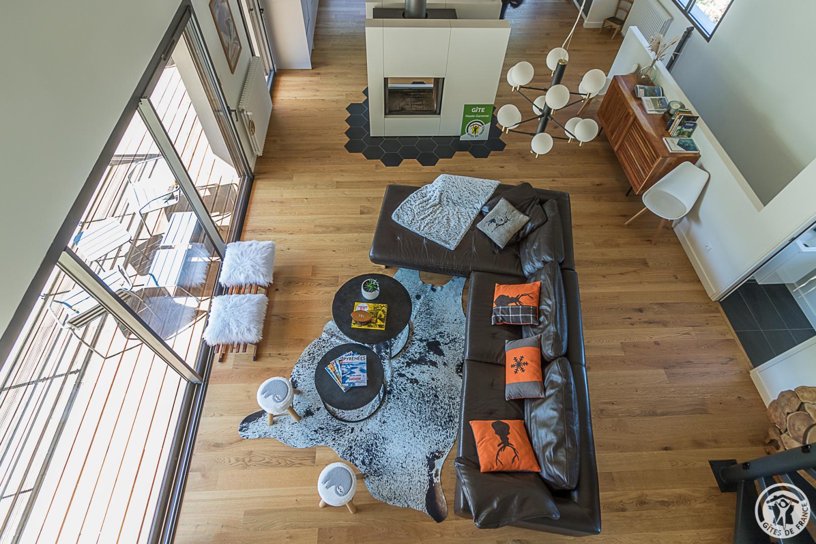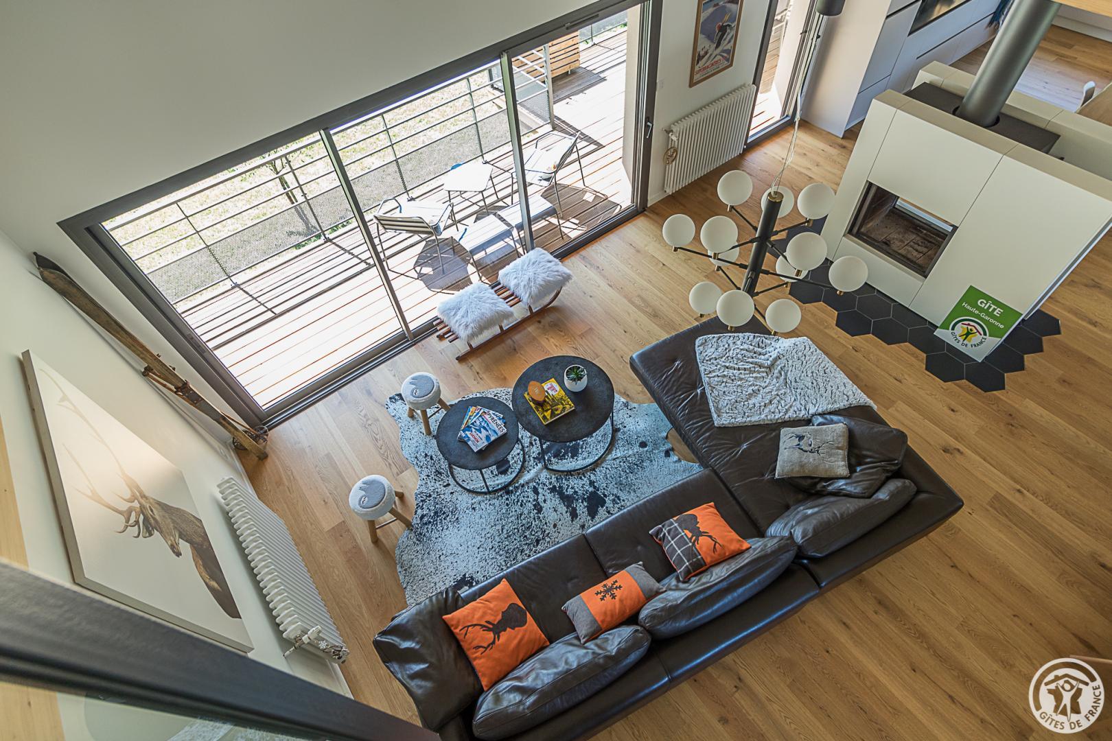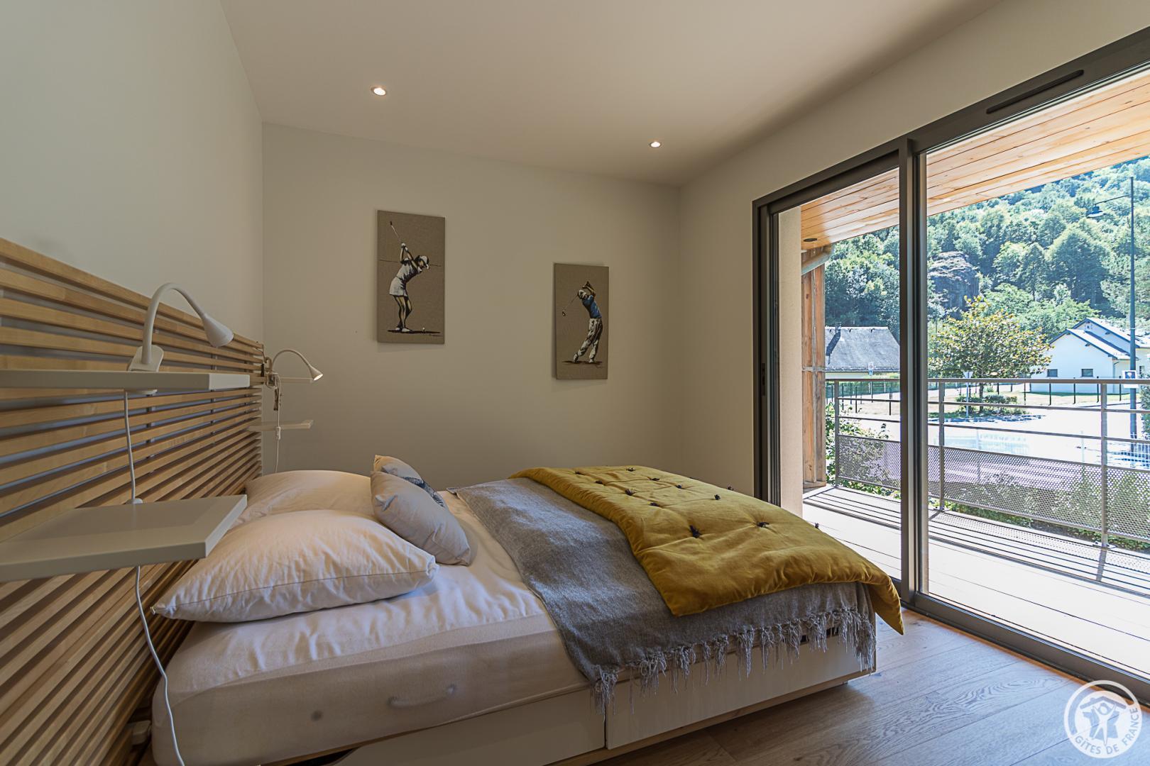La casa rural está situada en un chalet contemporáneo orientado al sur, hacia las cumbres, en una zona residencial y tranquila. El exterior de 700 m² cuenta con un jardín con césped y árboles frutales, un patio y una cochera cubierta.