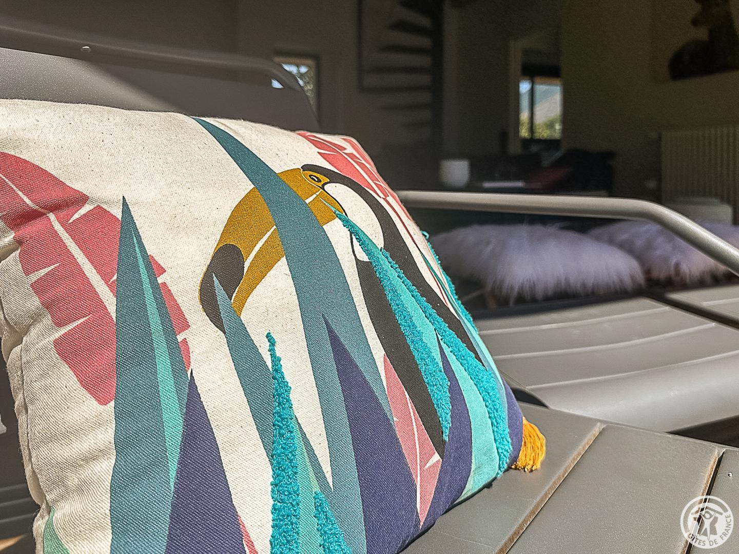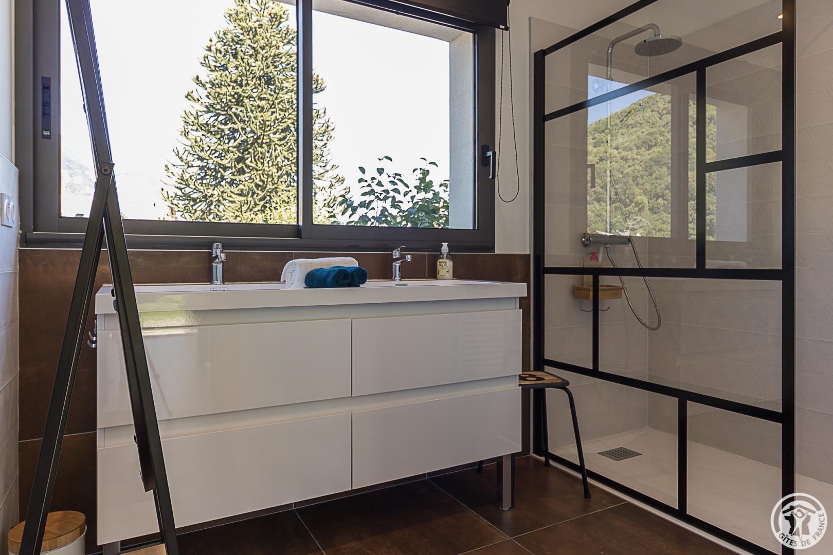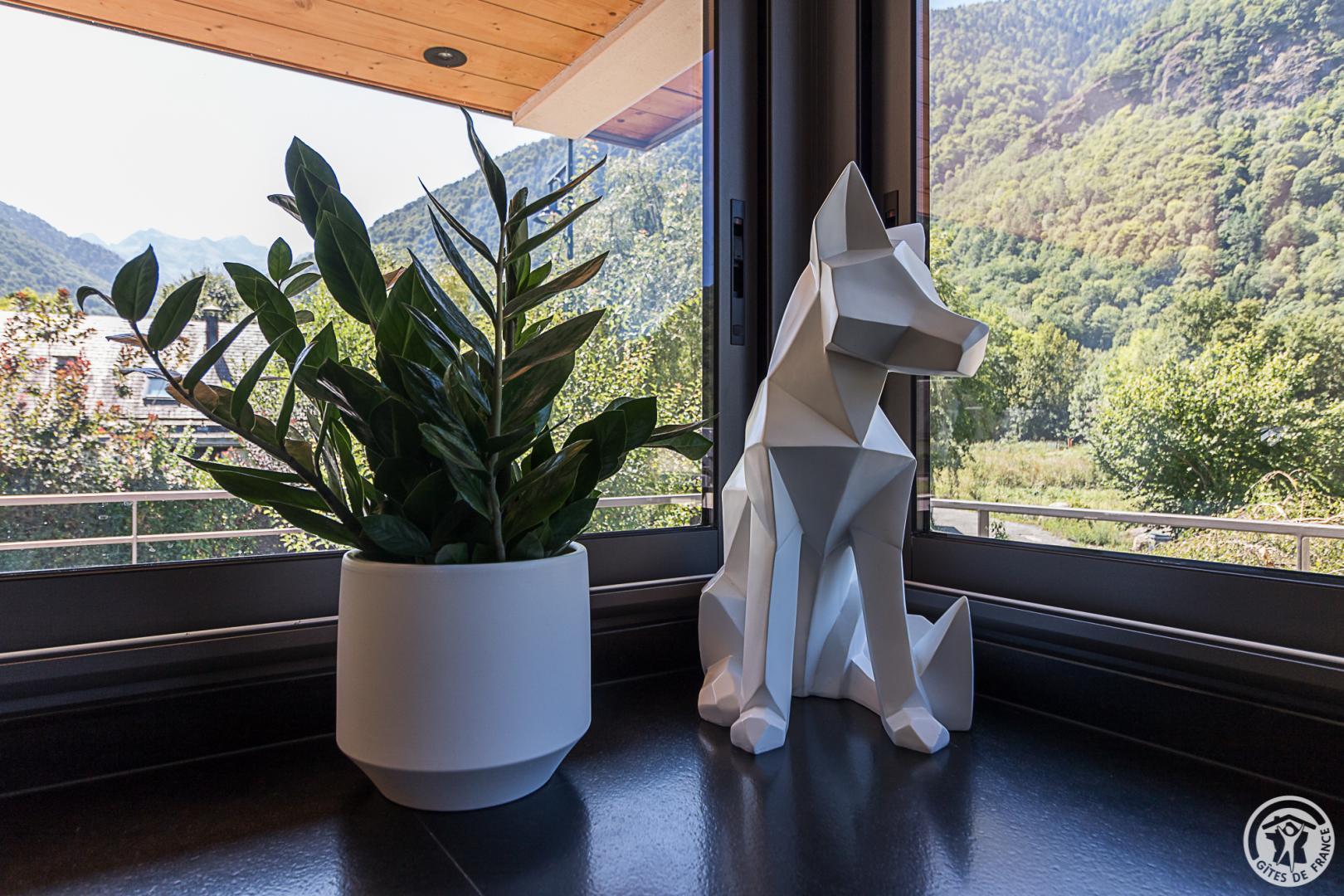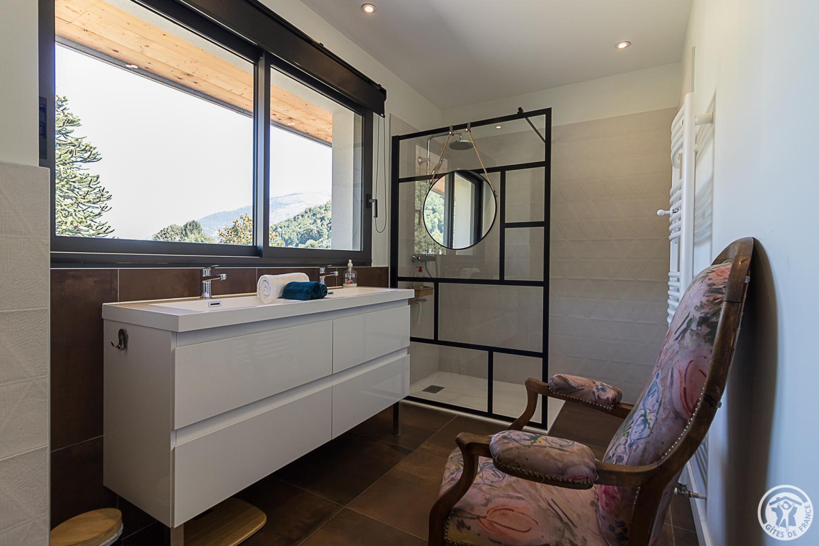 La casa rural está situada en un chalet contemporáneo orientado al sur, hacia las cumbres, en una zona residencial y tranquila. El exterior de 700 m² cuenta con un jardín con césped y árboles frutales, un patio y una cochera cubierta.