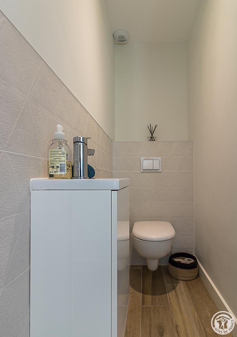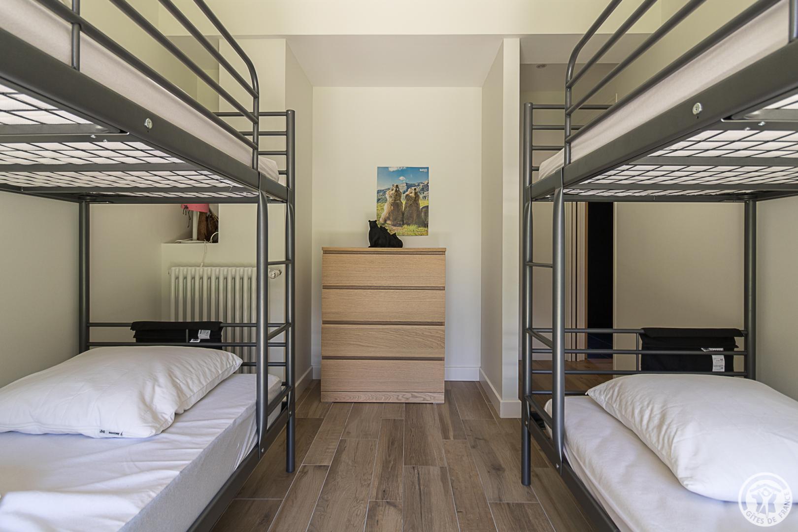 – Planta baja: la zona de noche de la casa consta de un hall de entrada (armario/guardarropa), un lavadero con lavadora/secadora, zapatero, etc., 3 dormitorios con salida al jardín (1 cama doble de 140x190cm) (1 cama doble de 140x190cm) (2 literas, cada una con 2 camas individuales de 90x200cm), un cuarto de ducha y un aseo independiente.