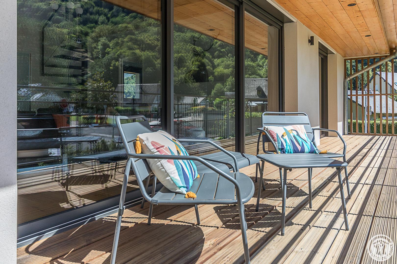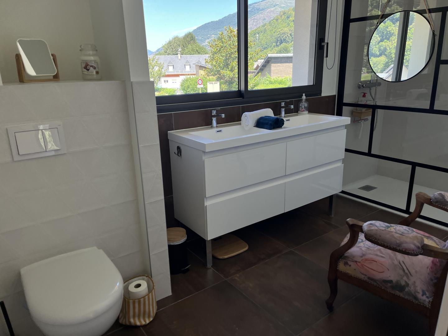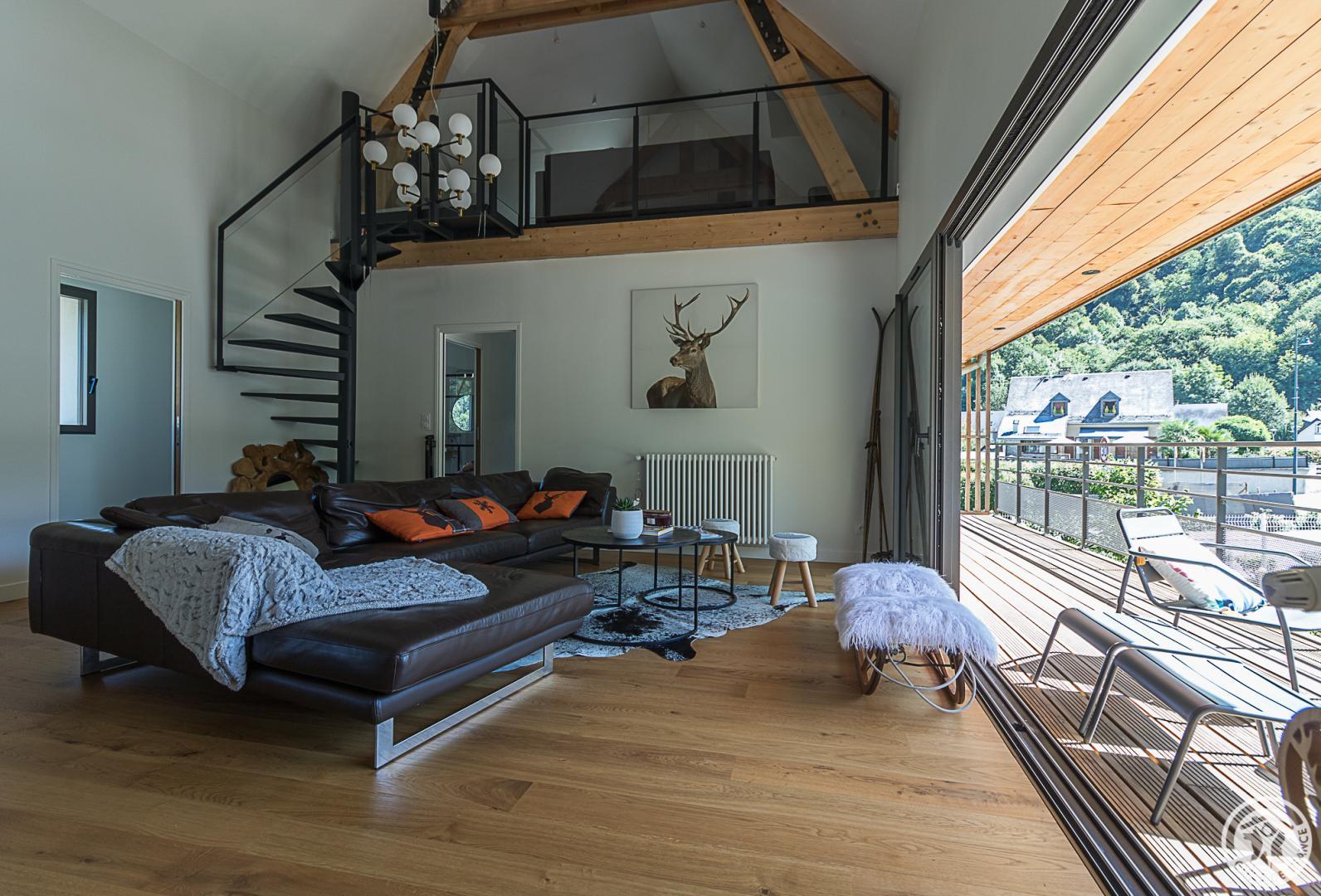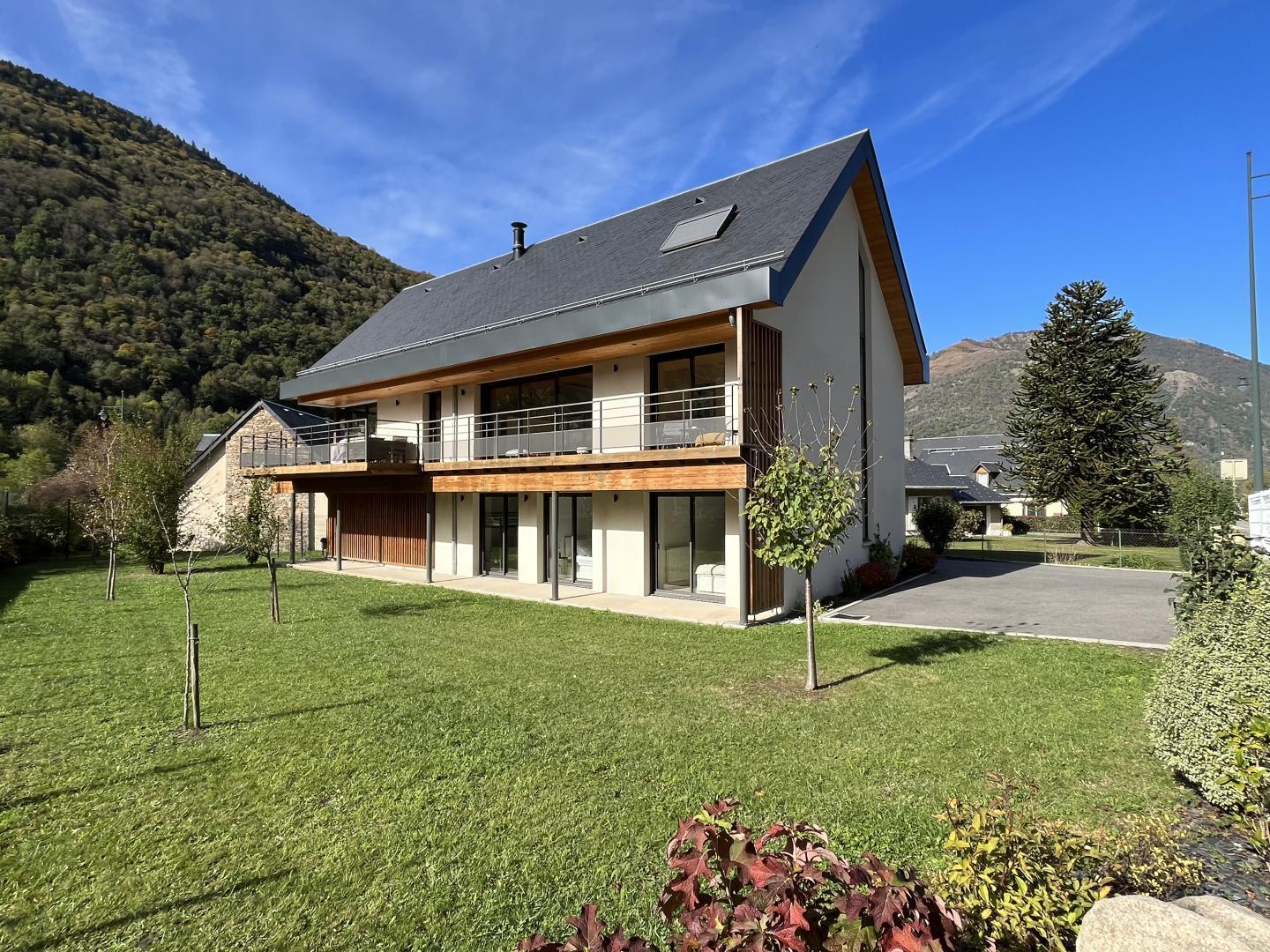 ¡Hermoso chalet contemporáneo en una zona residencial de Saint-Mamet, a 1 km de Luchon, los baños termales y el tren expreso a Superbagnères! Jardín, terraza y vistas a la montaña…