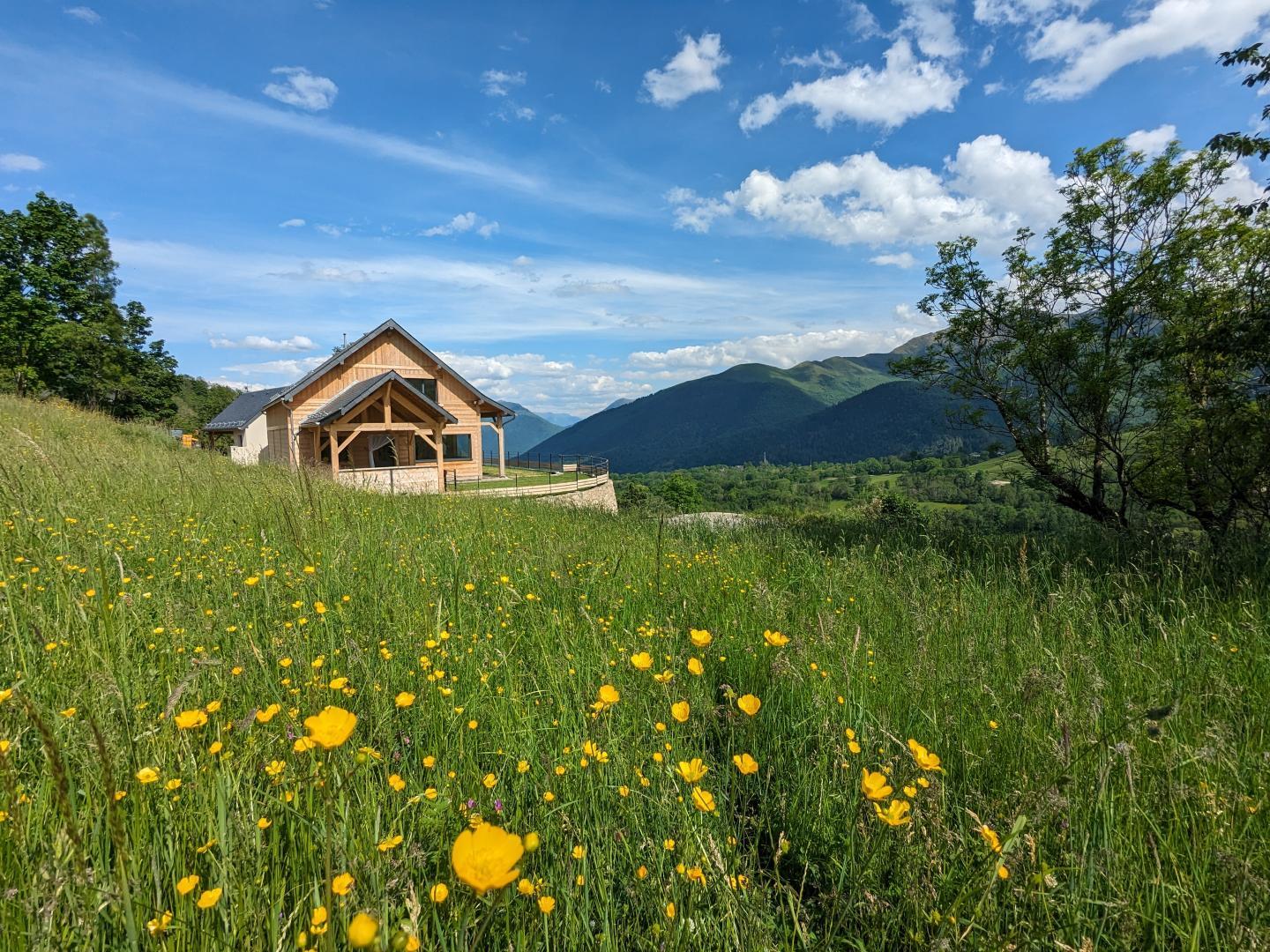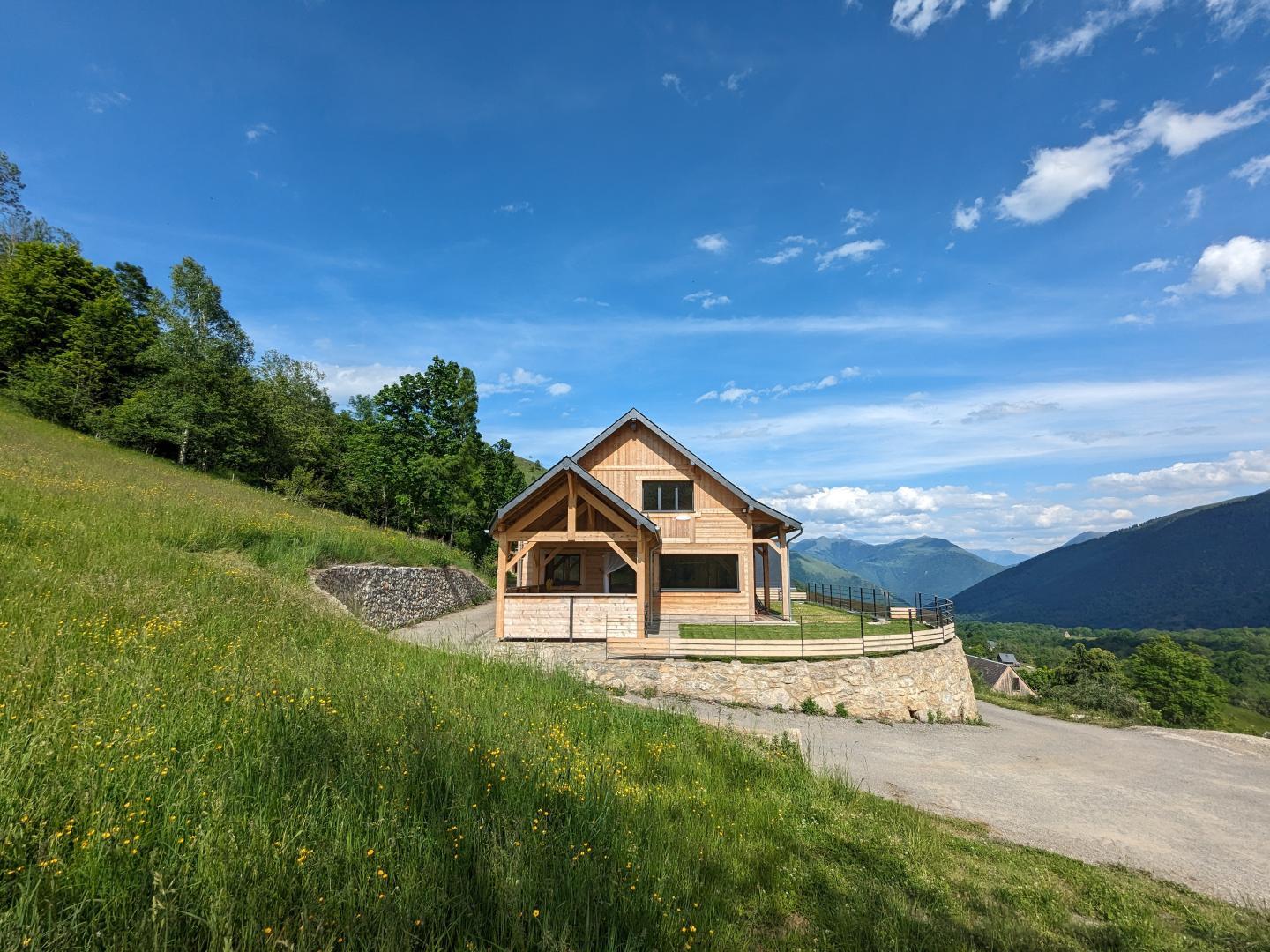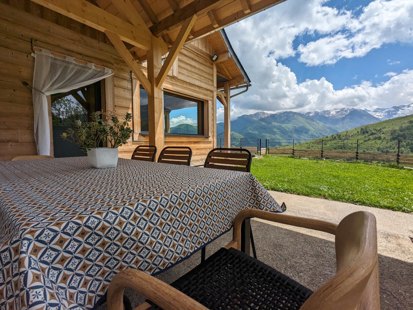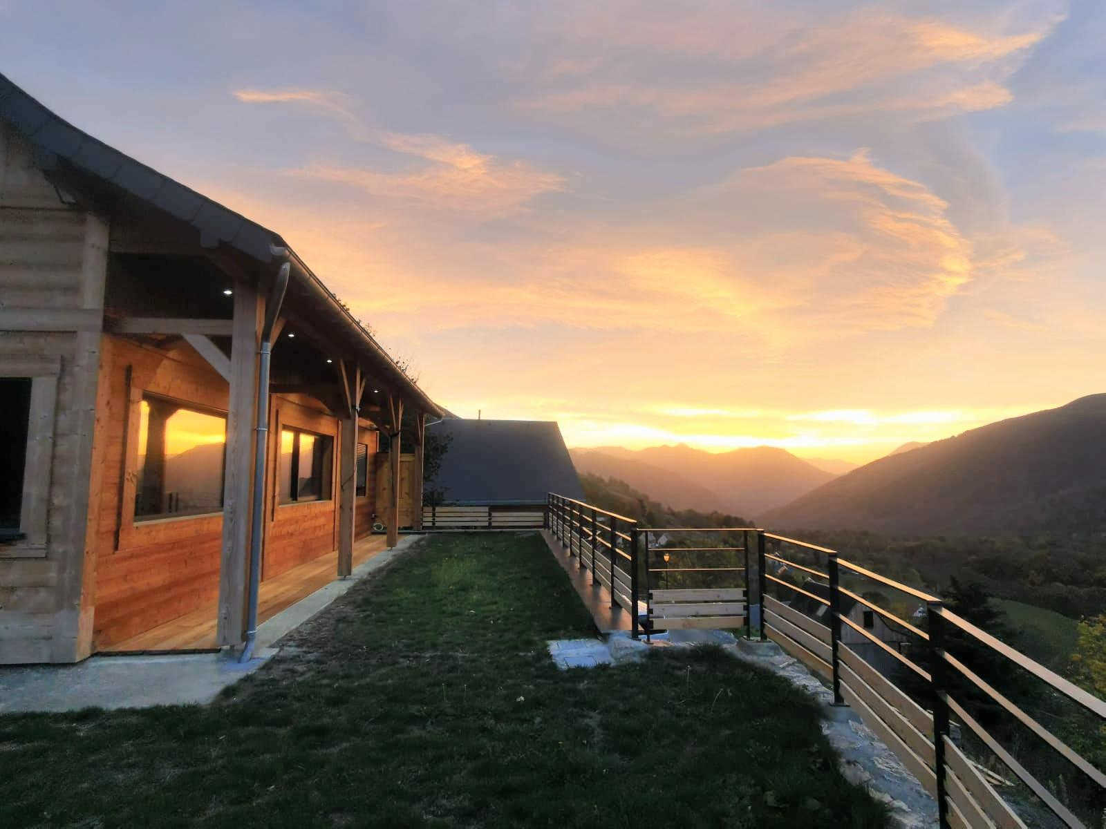 Chalet pirenaico, vista impresionante del valle y de la cordillera de los 3000m
