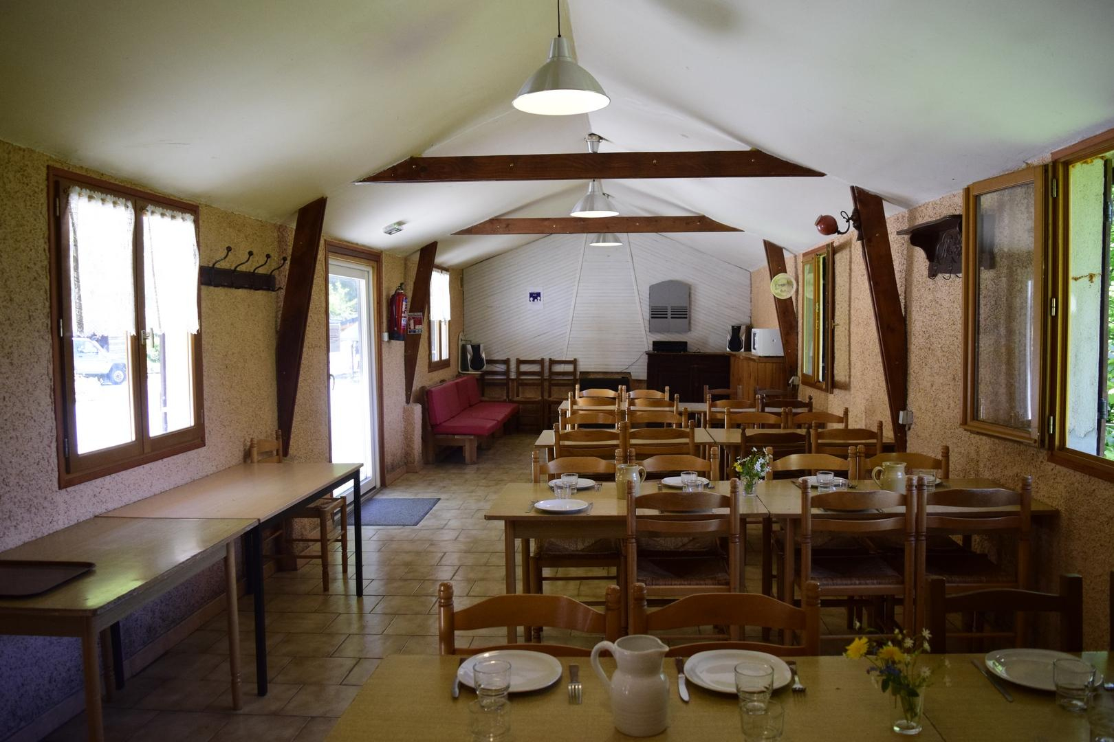 En un nivel: sala de descanso (juegos, biblioteca, chimenea), la casa rural dispone de alojamiento con dos habitaciones para seis personas y dos dormitorios para diez personas, separados en boxes (32 camas individuales y/o literas y 3 cuartos de baño). A unos cuarenta metros, en otro edificio, hay un comedor (60 m² con chimenea, TV y equipo de sonido) y una cocina colectiva profesional.