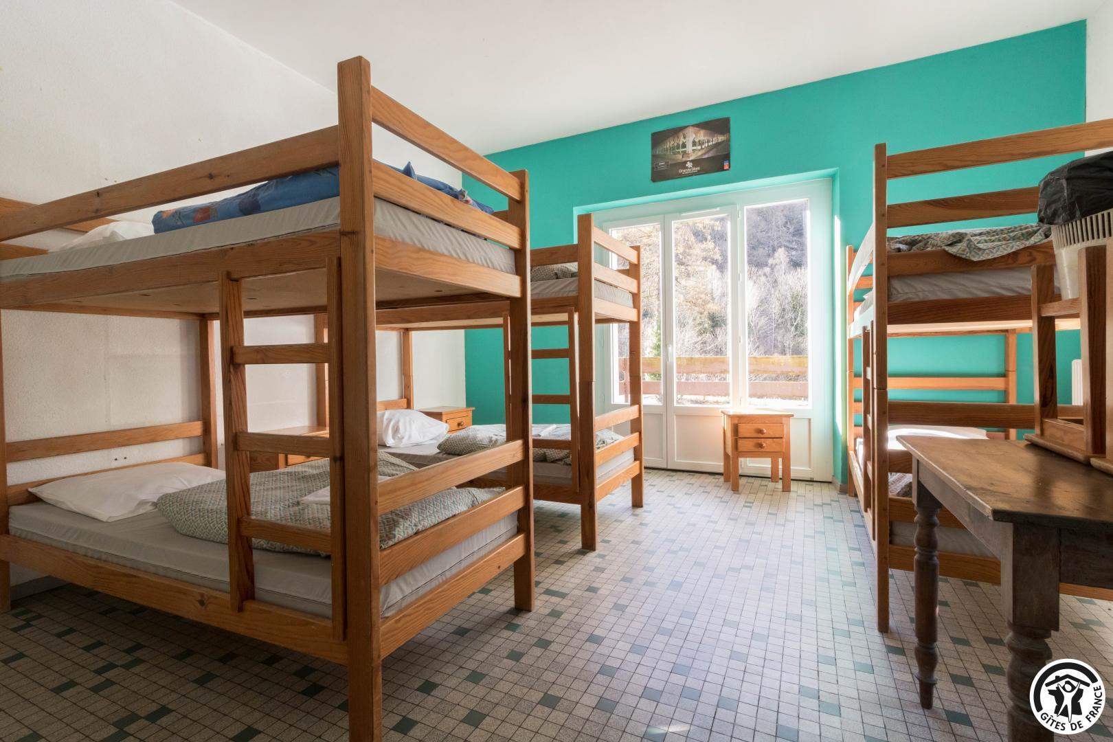 – 1 habitación con 4 literas (80cm) (8 personas)