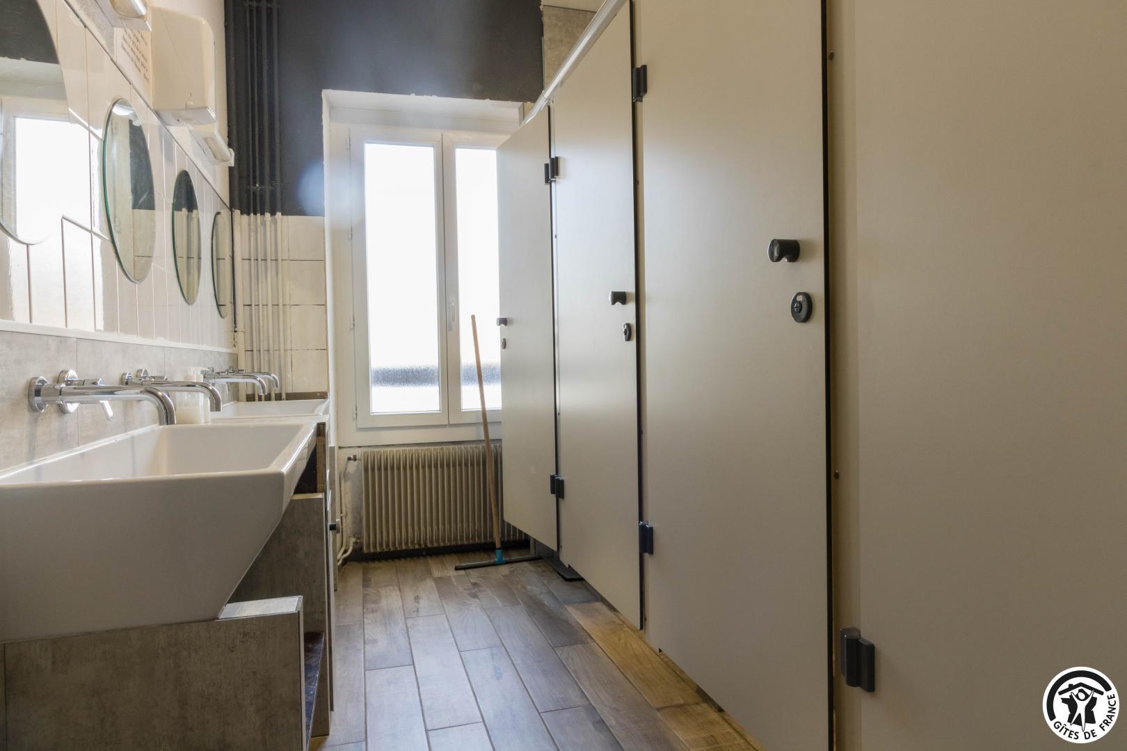 – Un cuarto de ducha con 4 duchas y 2 lavabos dobles en el primer piso