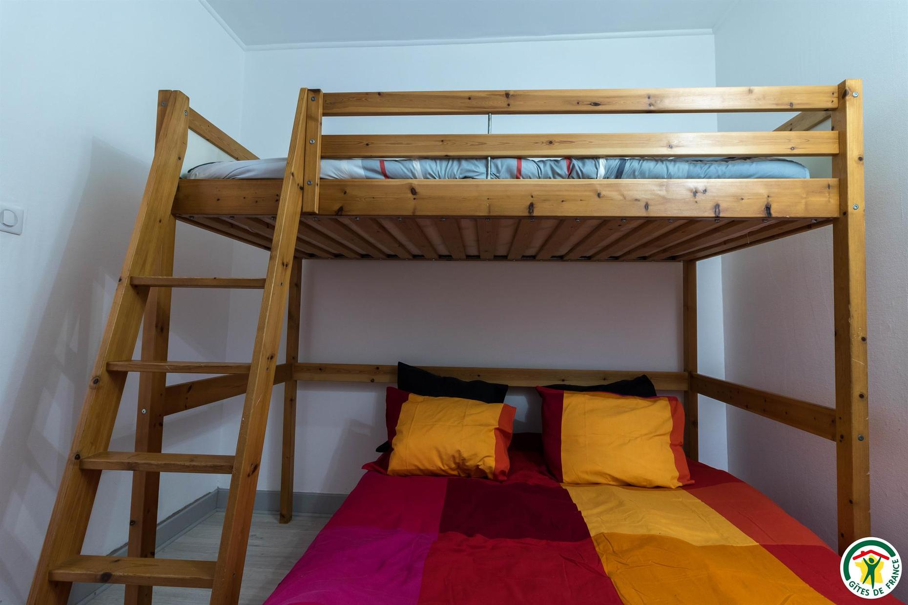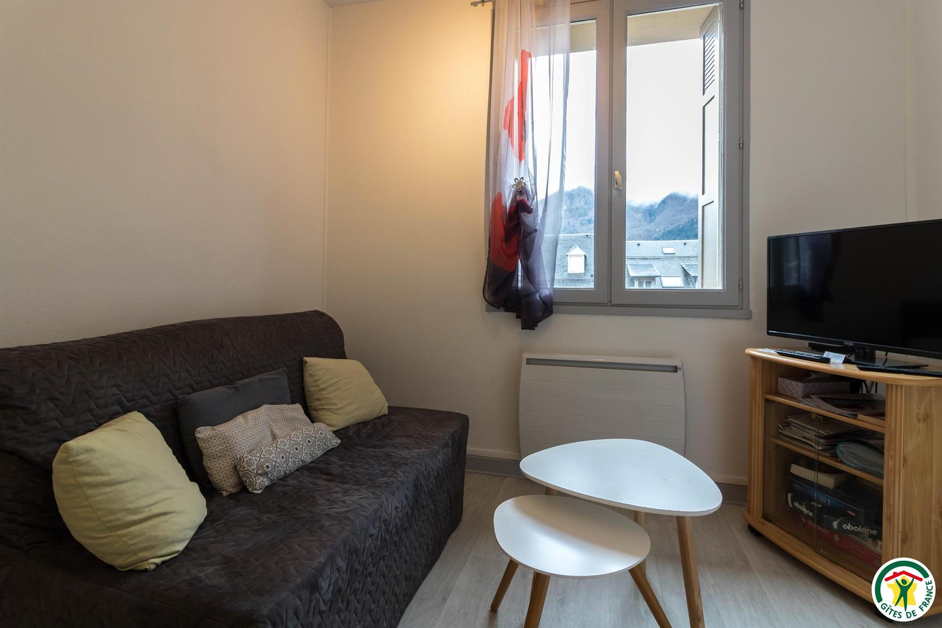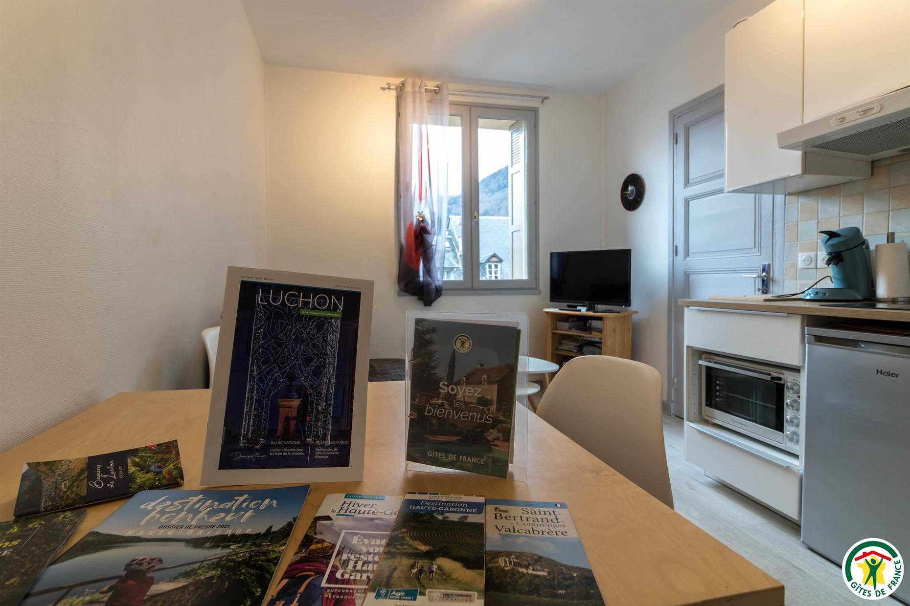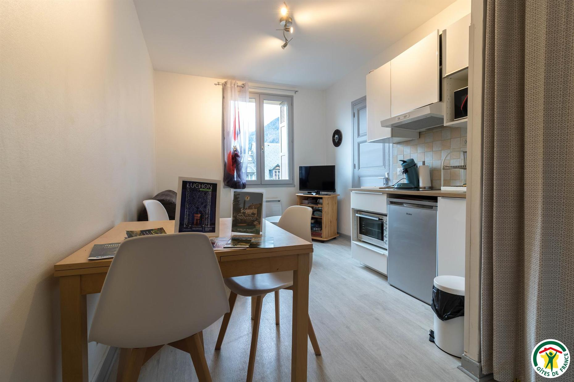 Tercera planta (ascensor): entrada, pequeño salón de 12m2 con zona de cocina (horno, microondas, pequeño frigorífico-congelador, 2 placas de inducción, lavadora, lavavajillas, máquina de raclette y fondue), zona de comedor (1 mesa y 5 sillas) y zona de estar (sofá, mesa de centro y TV de pantalla plana). 1 dormitorio (1 cama de matrimonio de 140*190 cm), 1 dormitorio sin ventanas con 1 litera individual de 90*190 cm y 1 cama de matrimonio de 140*190 cm. Cuarto de baño con ducha, lavabo y WC. Calefacción eléctrica. Puede venir al piso sin su coche: desde Toulouse, puede tomar el tren hasta Montréjeau y luego un autobús que le dejará al pie del piso. Un autobús lanzadera puede llevarle a los baños termales o a la estación de esquí de Peyragudes. Internet con buzón naranja. Sala de esquí. Aparcamiento público al pie del apartamento. Paquete balneario de 3 semanas en temporada baja (588 euros) y temporada alta en julio/agosto/septiembre (672 euros).