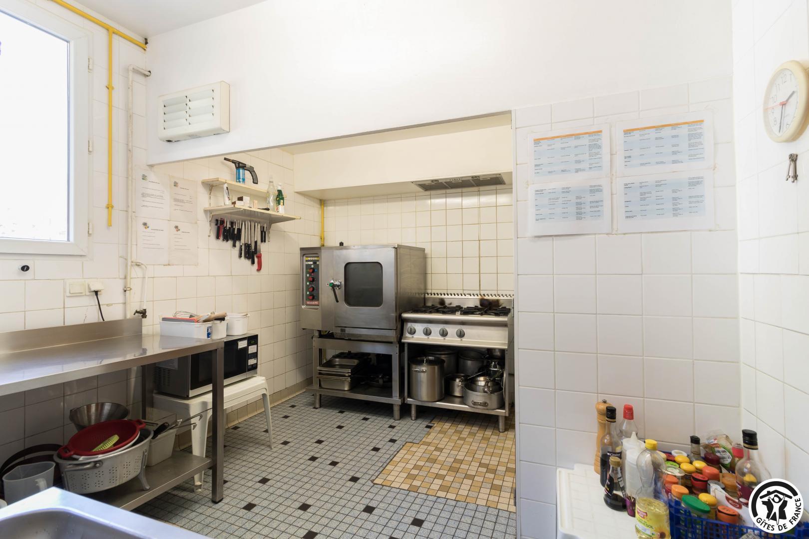 Una cocina profesional en la que los grupos que hayan alquilado la casa rural en exclusiva podrán trabajar en régimen de autoservicio. Para los que lo deseen, cena casera preparada por sus anfitriones.