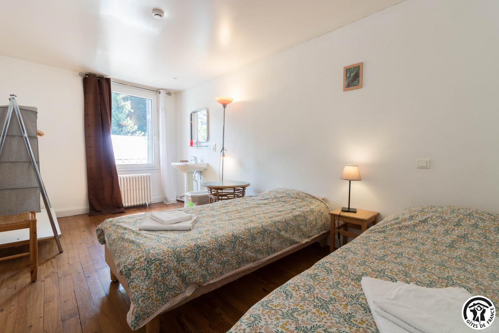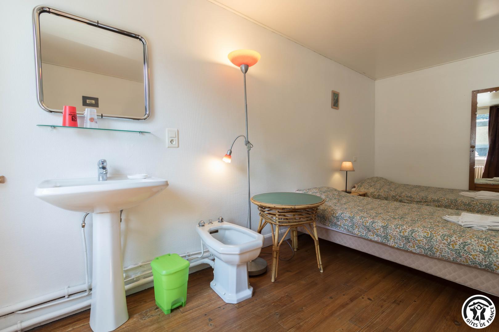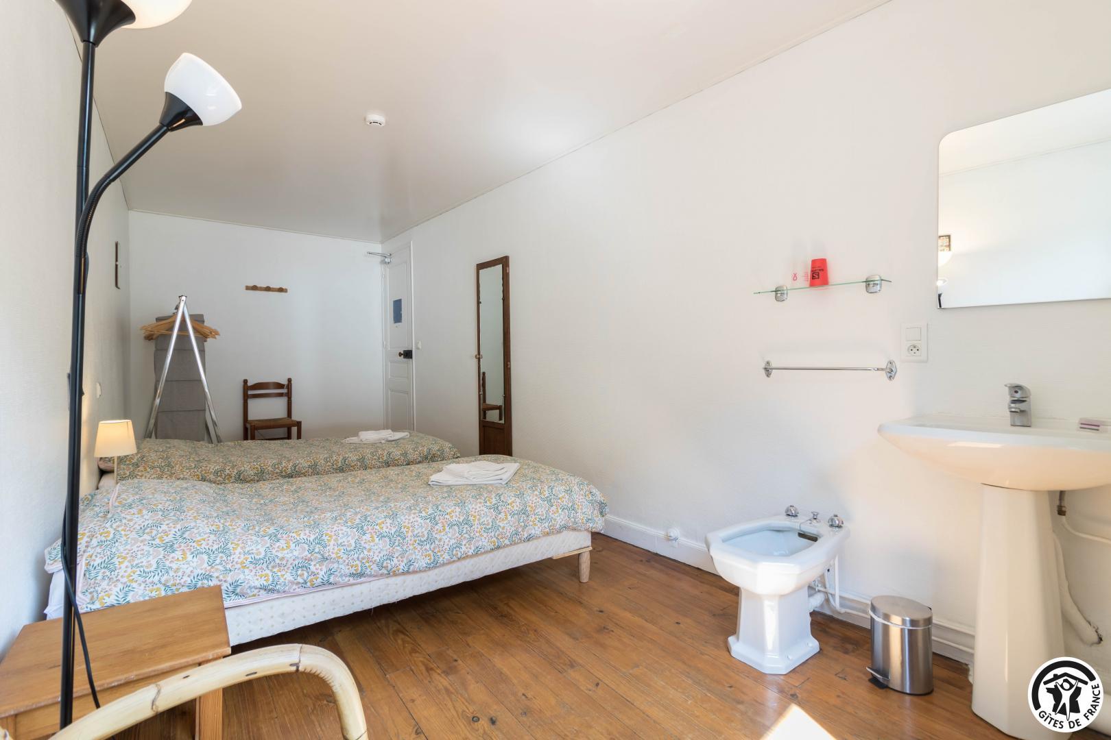 – Primera planta: las habitaciones Grand Tétras (despacho) y Vautour Fauve disponen de camas dobles de 140*190 cm. Aigle Royal y Grand Duc tienen 1 cama doble (140x190cm) y 1 cama individual (90x190cm). Las 4 habitaciones disponen de cuarto de baño (ducha, lavabo y WC). También hay un WC separado en esta planta.