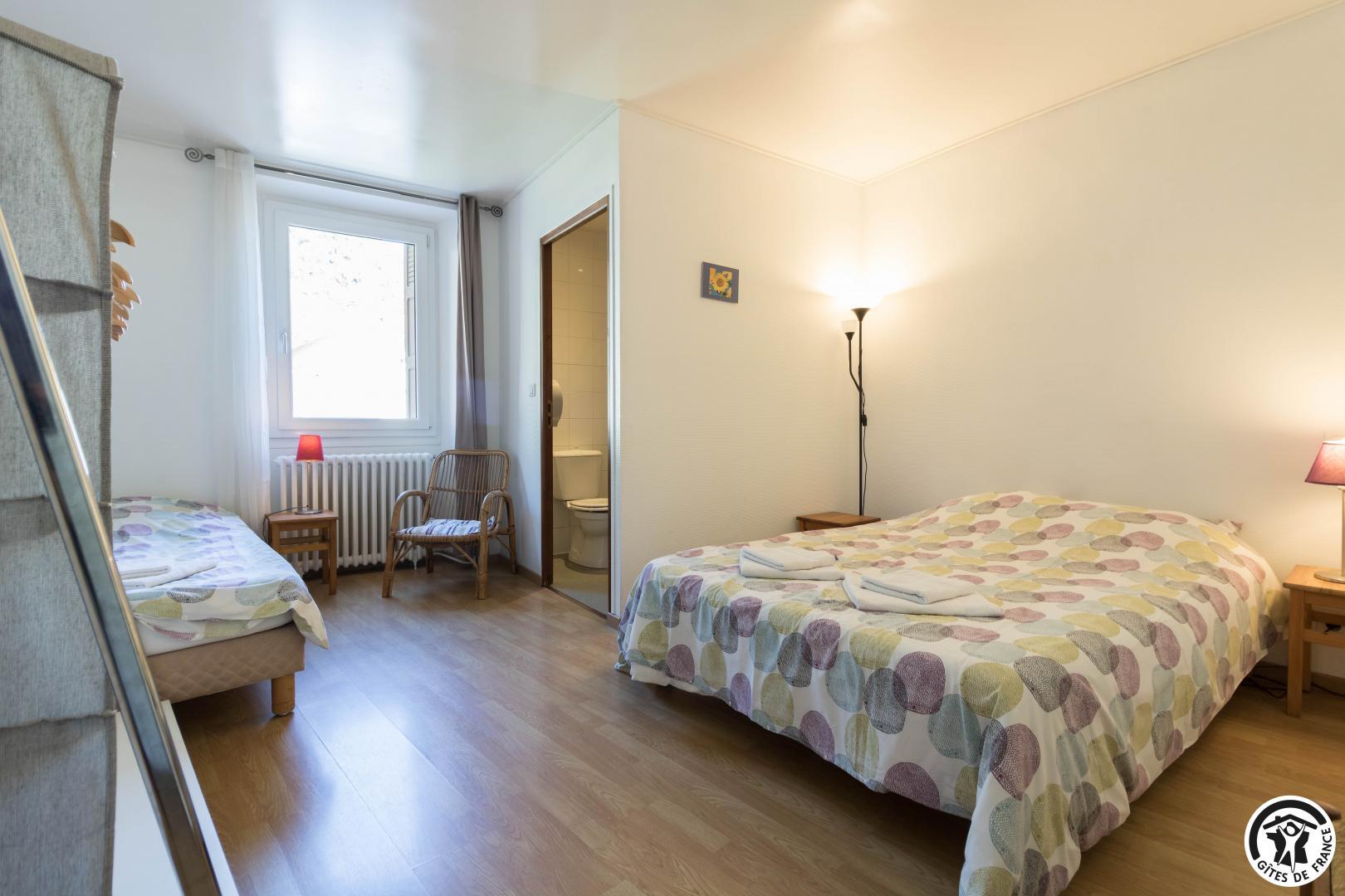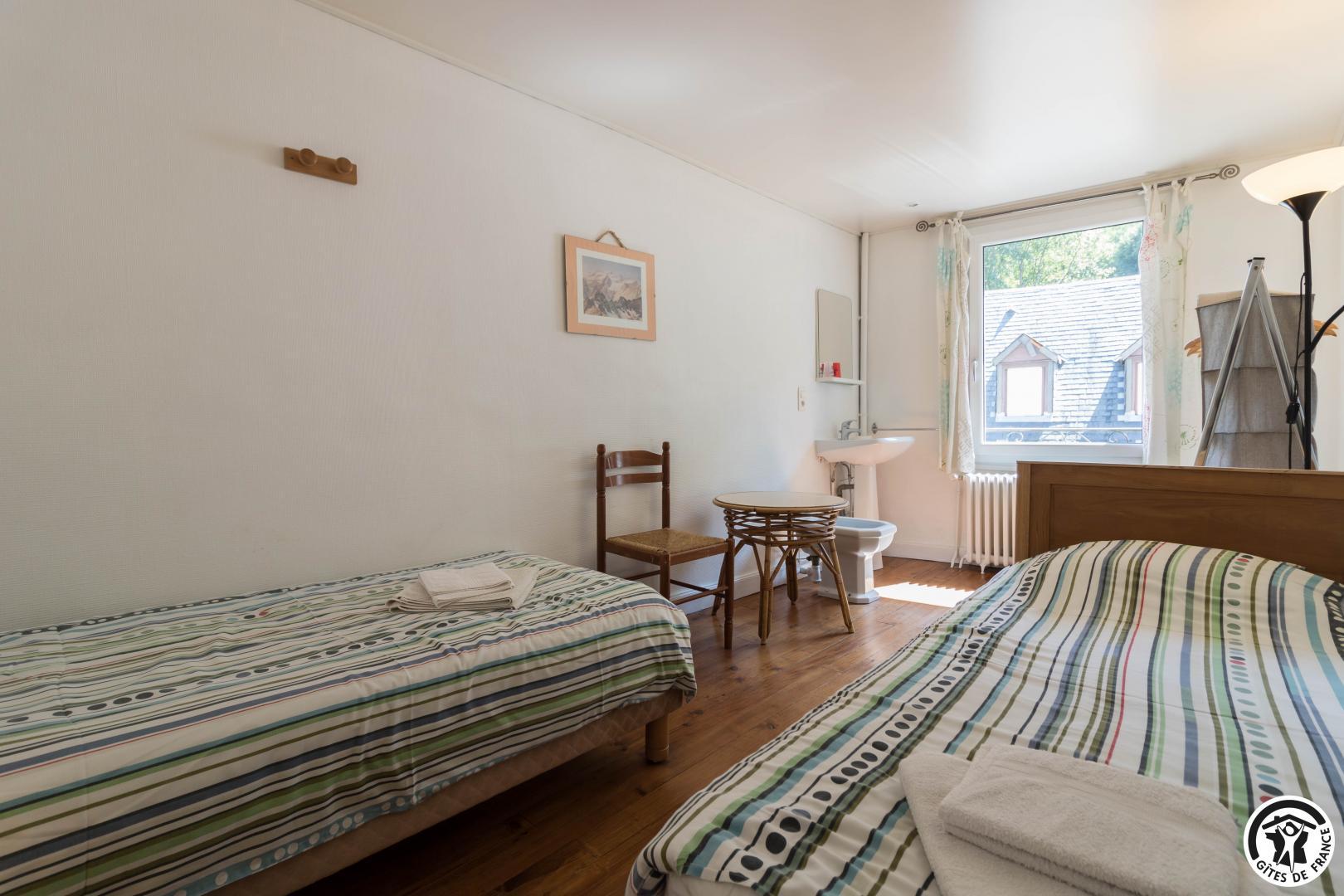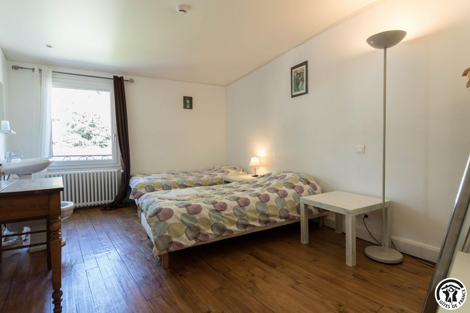 – Primera planta: las habitaciones Grand Tétras (despacho) y Vautour Fauve disponen de camas dobles de 140*190 cm. Aigle Royal y Grand Duc tienen 1 cama doble (140x190cm) y 1 cama individual (90x190cm). Las 4 habitaciones disponen de cuarto de baño (ducha, lavabo y WC). También hay un WC separado en esta planta.