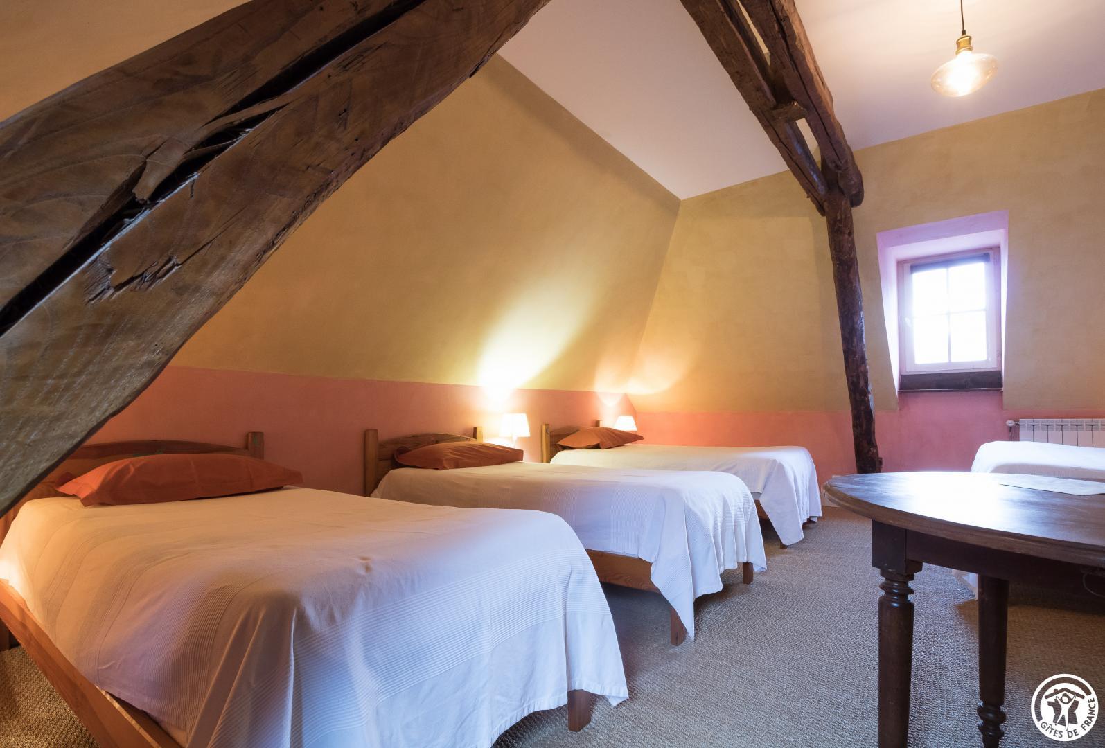 – 2ª planta bajo el alero: habitación familiar Estiouère 2 épis (4 camas individuales 90cm), habitación Sillassère (3 camas individuales 90cm).