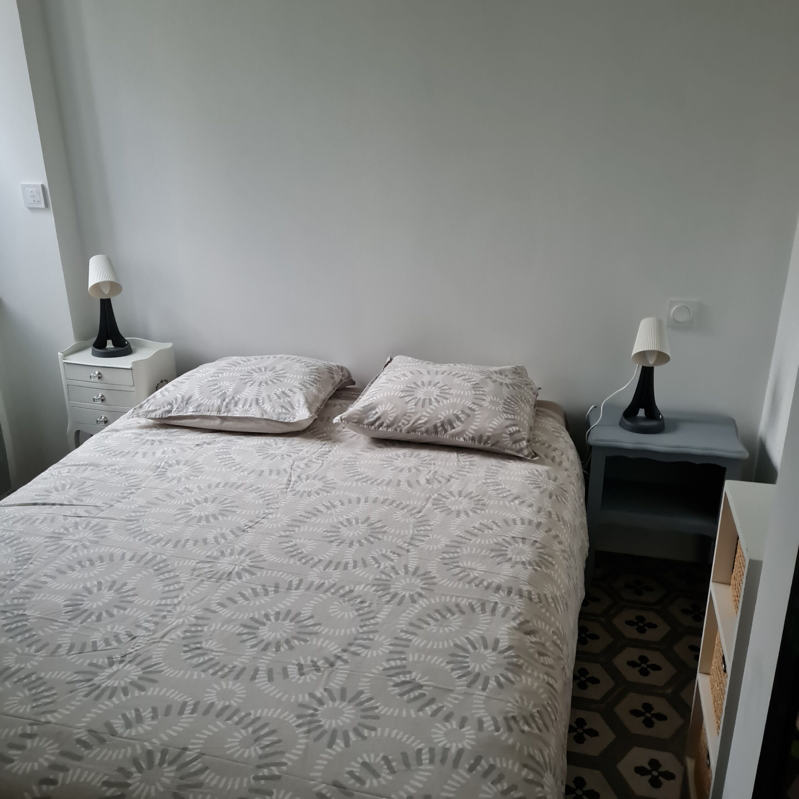 Casa en el centro de la ciudad con, en la planta baja, una cocina, un comedor con una gran mesa para 12 personas. Un cuarto de ducha con WC. Una pequeña T1 con cocina americana, una habitación con cama de matrimonio (140cm), un cuarto de ducha con WC y una cama individual (90cm).