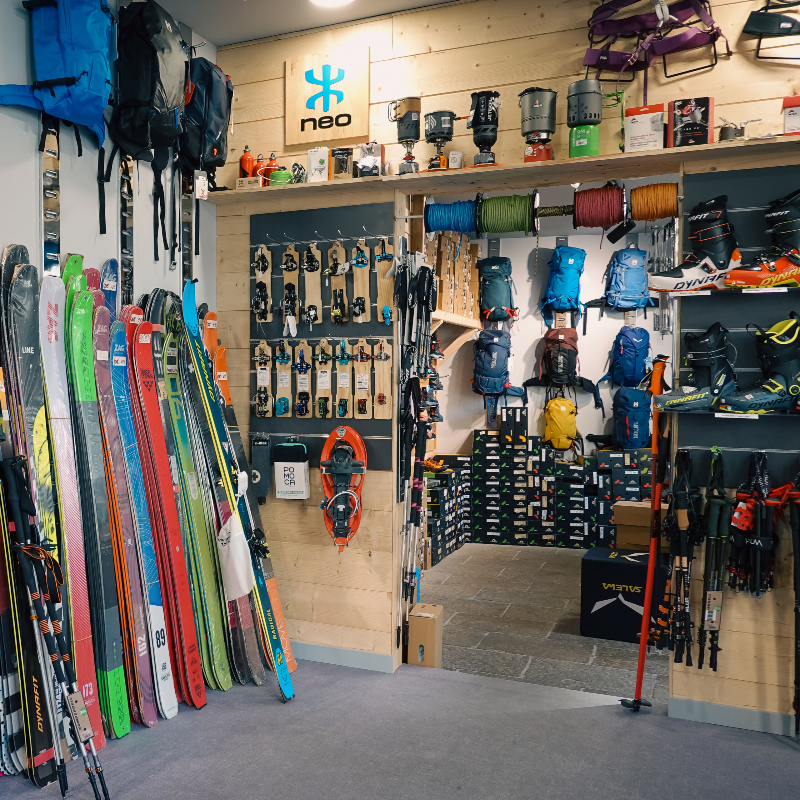 Tablas de snowboard, raquetas de nieve, material de senderismo y alpinismo: todo lo necesario para explorar la montaña en todas sus formas.