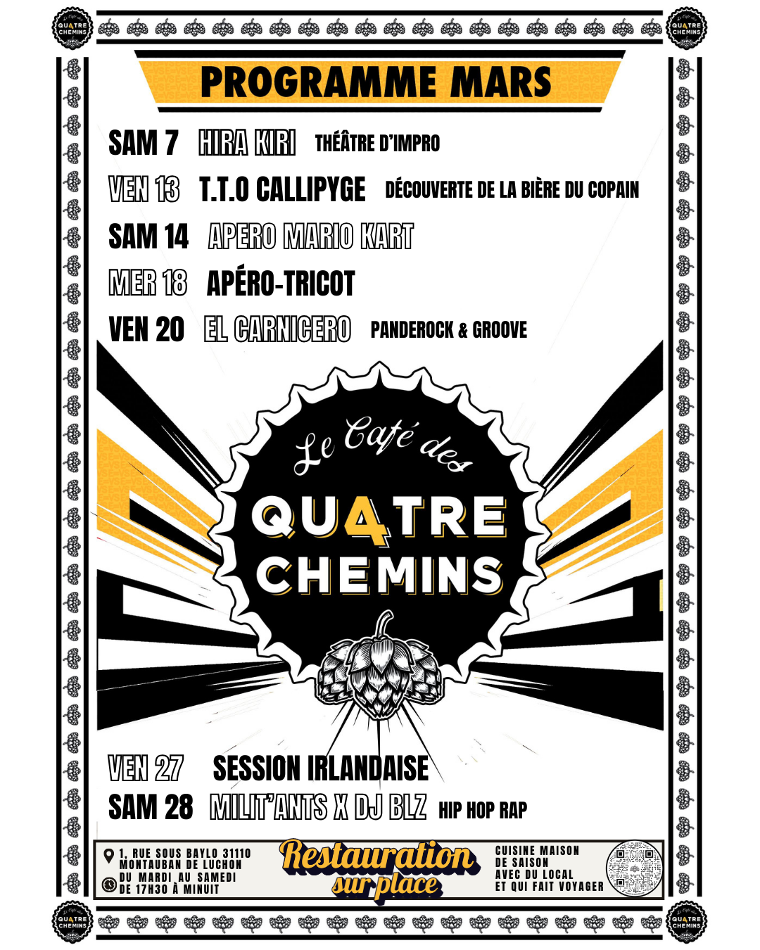 Pour cette soirée, nous prenons exceptionnellement les réservations : faîtes vous connaître en envoyant un SMS (je répète, un SMS) avec votre nom et le nombre de convives !