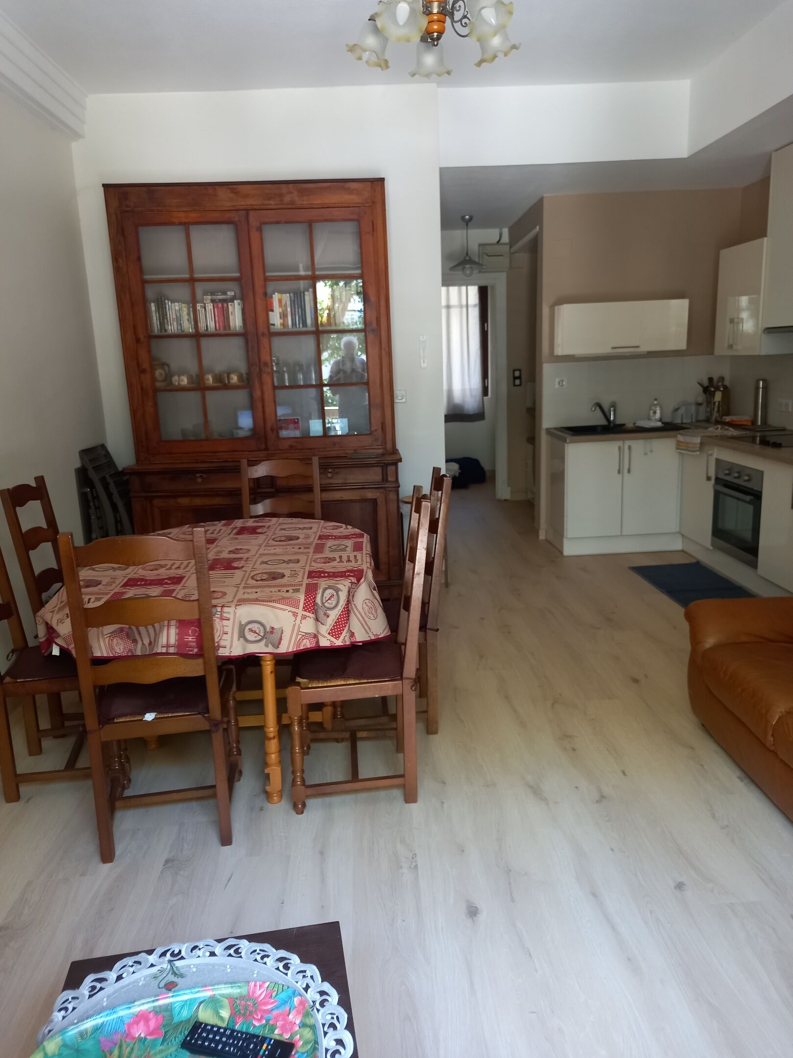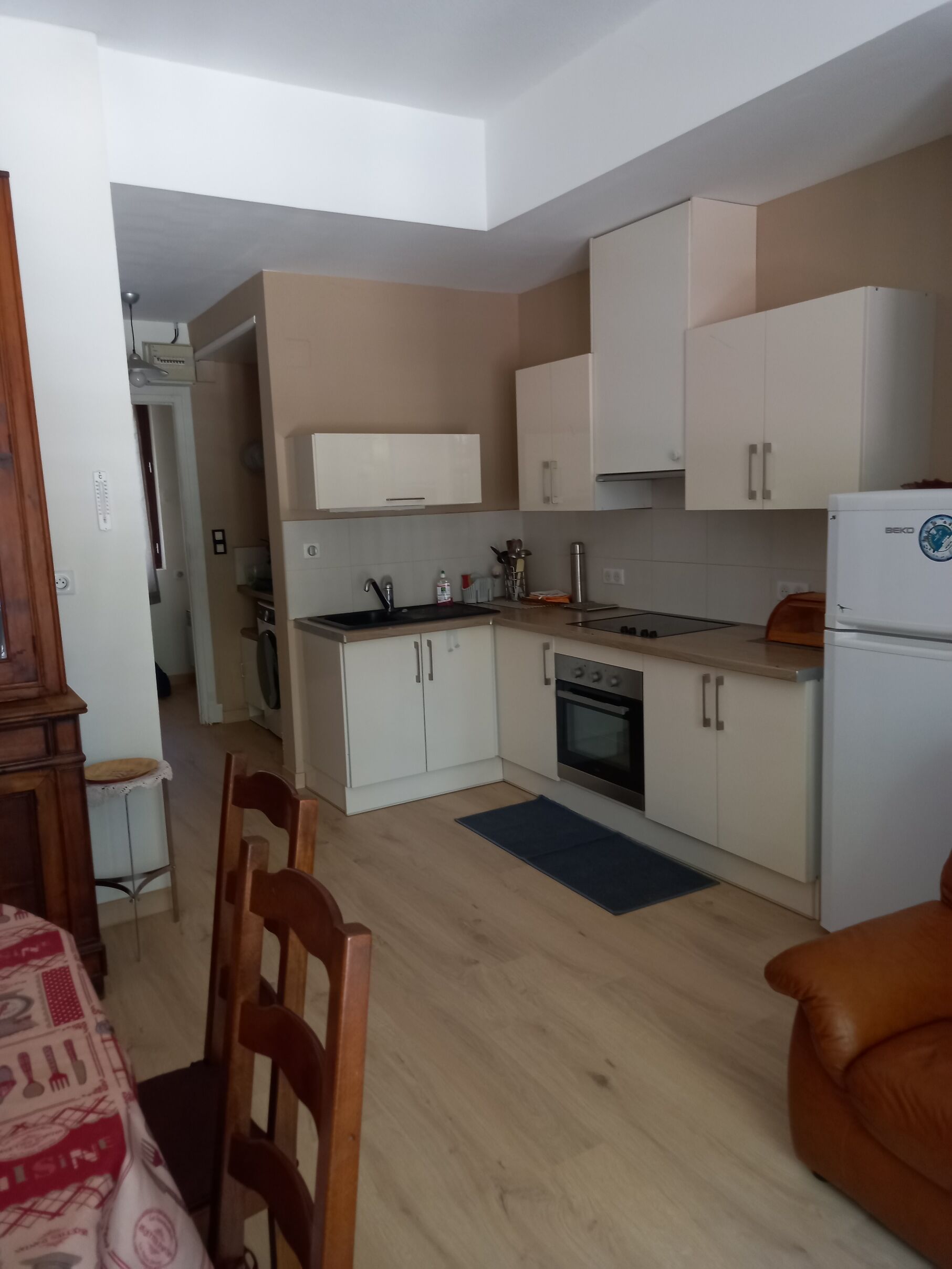 Grande pièce à vivre comprenant : cuisine équipée : four, plaques vitrocéramiques, micro ondes, cafetière, bouilloire, grille pain, lave-vaisselle, lave linge, frigo congélateur… vaisselle et batterie de cuisine en grand nombre, rangements, fauteuil et canapé, télé écran plat, lecteur DVD, poste radio/cd.