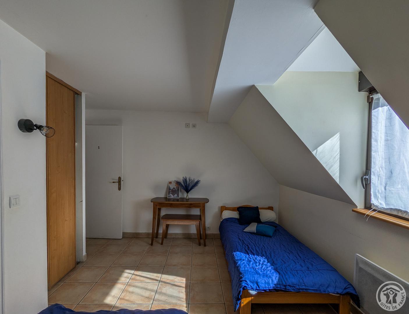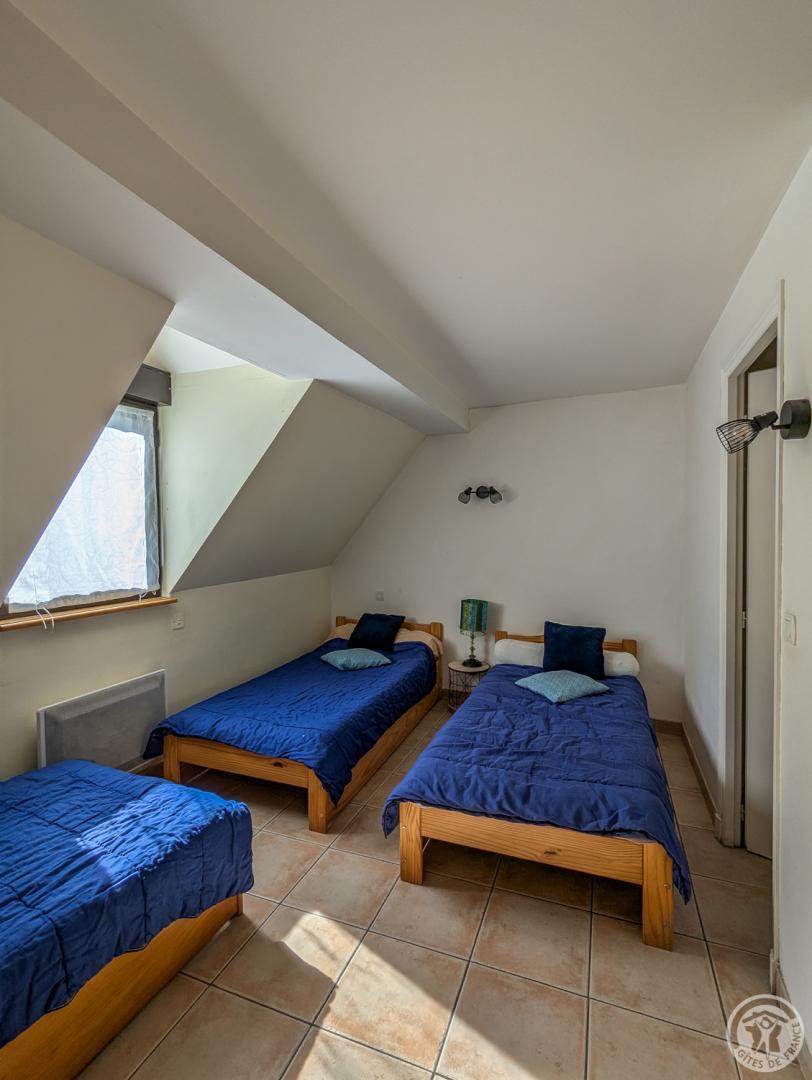 – A l’étage : 5 chambres (3 lits 1 personne en 90cm) (1 lit 2 personnes en 140cm + 2 lits 1 personne en 90 cm superposés) (1 lit 2 personnes en 160cm + 1 lit 1 personne en 90cm + balcon) (1 lit 2 personnes en 140cm) (3 lits 1 personne en 90cm). Chaque chambre dispose d’une salle d’eau/WC privative et communicante.