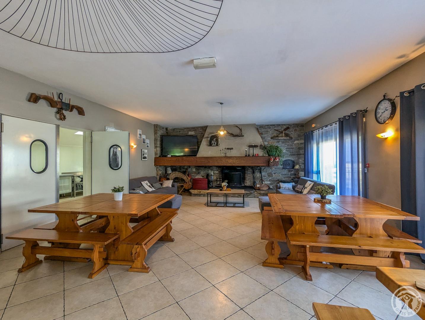– Au rez-de-chaussée : entrée, vaste séjour/salon, cuisine professionnelle (non chauffée), WC.