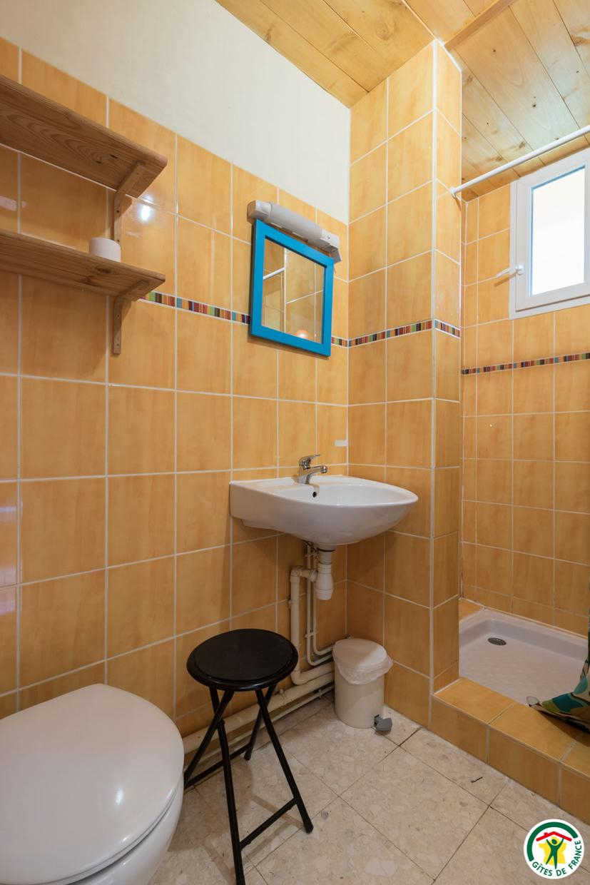 – premier étage, les 9 chambres avec sanitaires privatifs (douche, lavabo et WC) se composent de la façon suivante : 3 chambres double avec chacune 1 lit en 140*190cm, 1 chambre triple avec 3 lits simple en 90*190cm dont 2 superposés, 3 chambres triple avec chacune 1 lit double en 140*190cm et 1 lit simple en 90*190cm, 1 chambre quadruple avec 4 lits simple en 90*190cm superposés (balcon terrasse) et 1 chambre quadruple avec 1 lit double en 140*190cm et 2 lits simple en 90*190cm superposés (balcon terrasse).