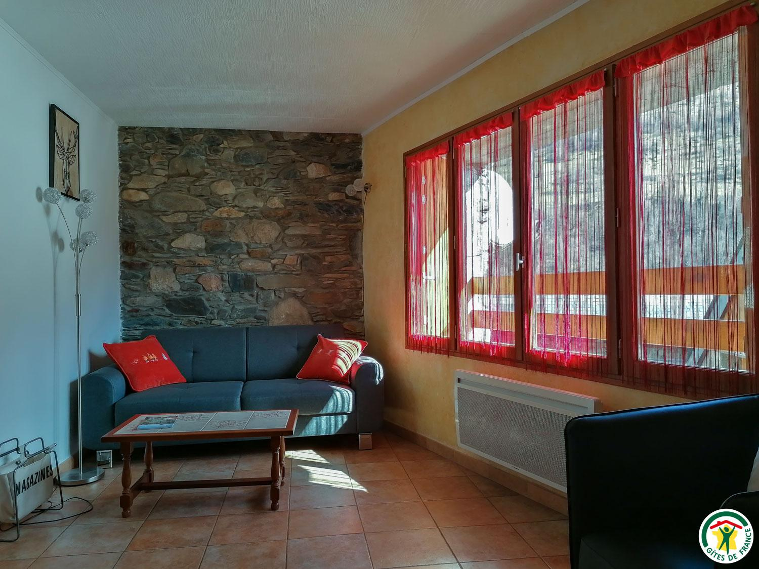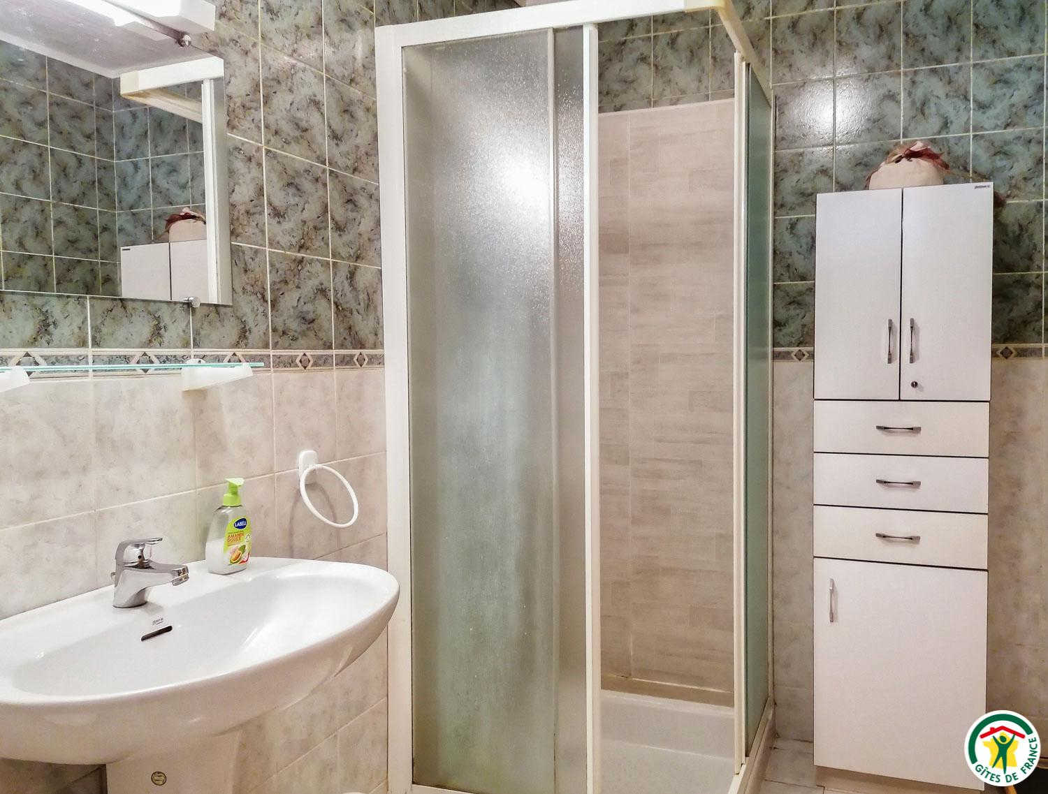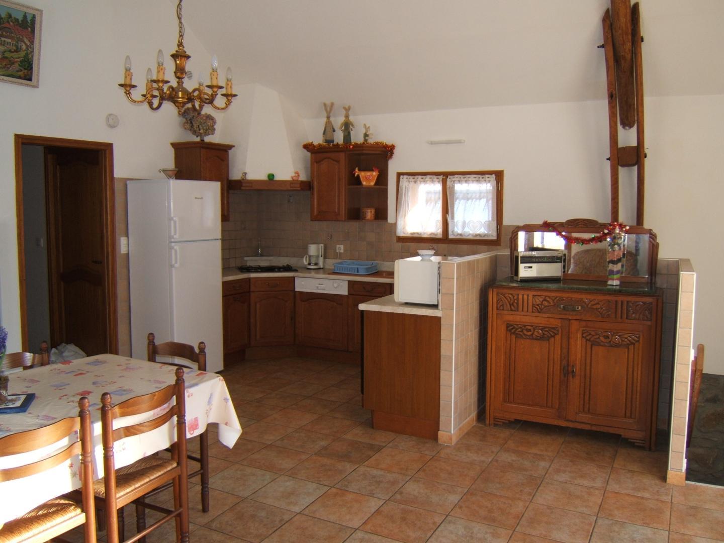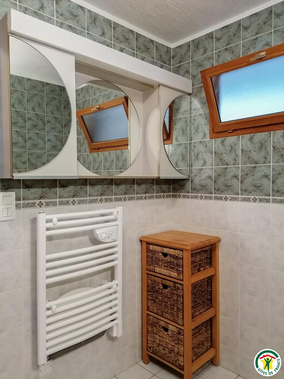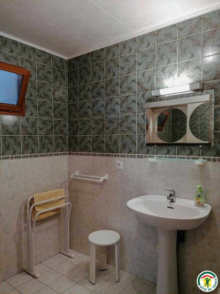Au sous-sol : coin-buanderie. Au rez-de-chaussée (accès par trois marches extérieures) : séjour (2 TV) donnant sur la terrasse, coin-cuisine, salon indépendant, 3 chambres (1 lit 2 personnes en 140cm) (1 lit 2 personnes en 140cm) (1 lit 2 personnes en 140cm), salle d’eau, WC. Chauffage électrique. Sèche-linge.