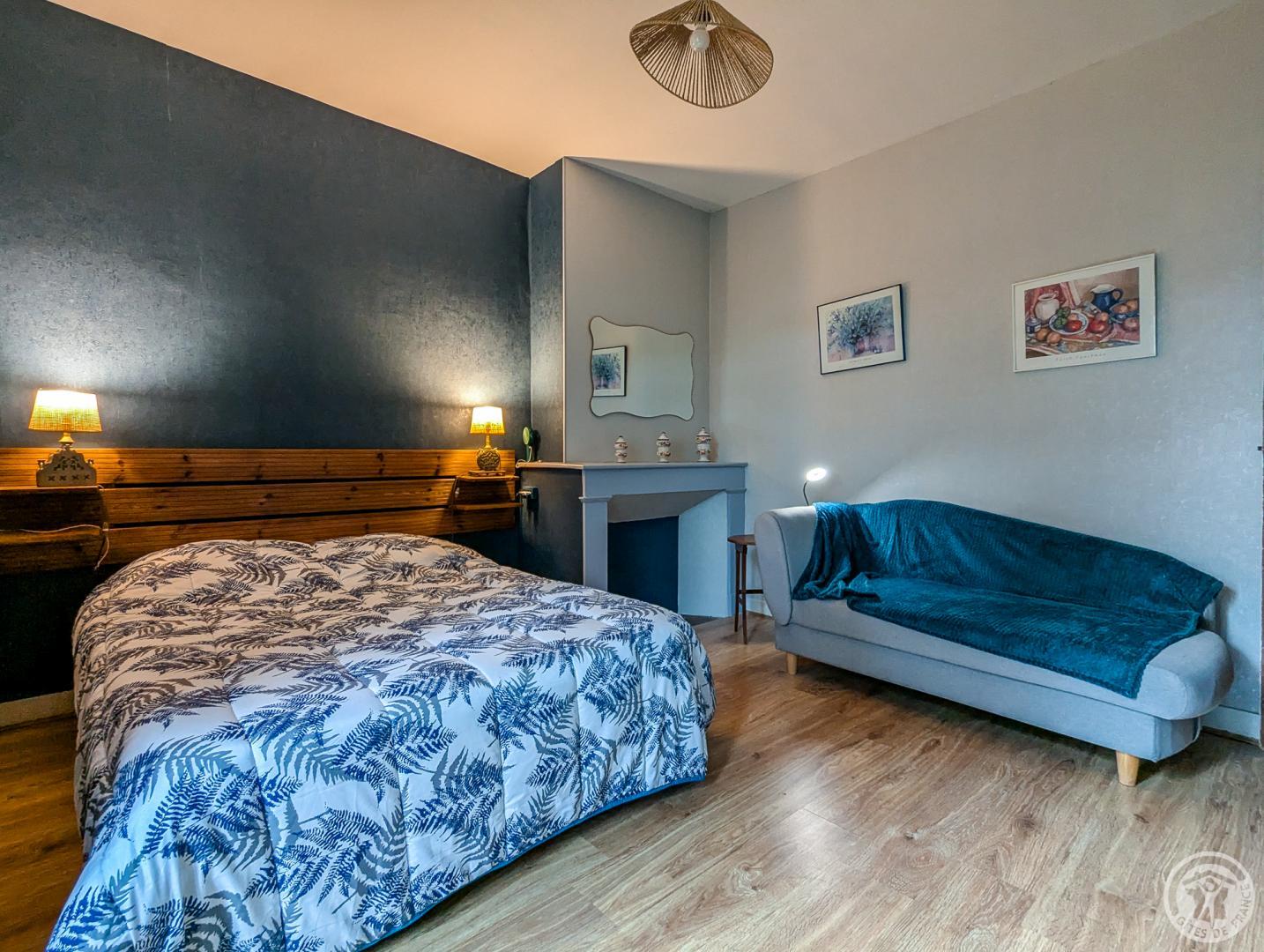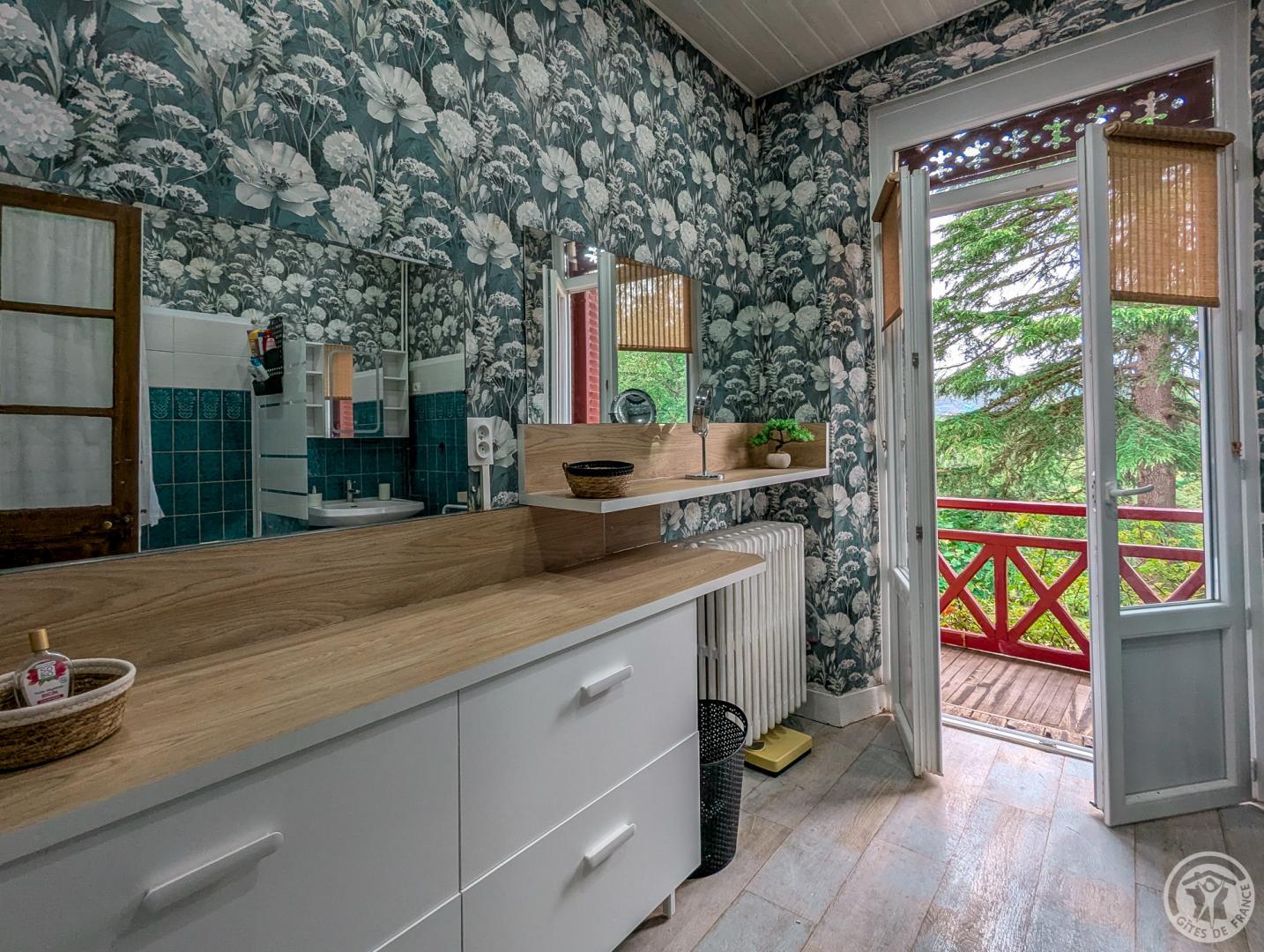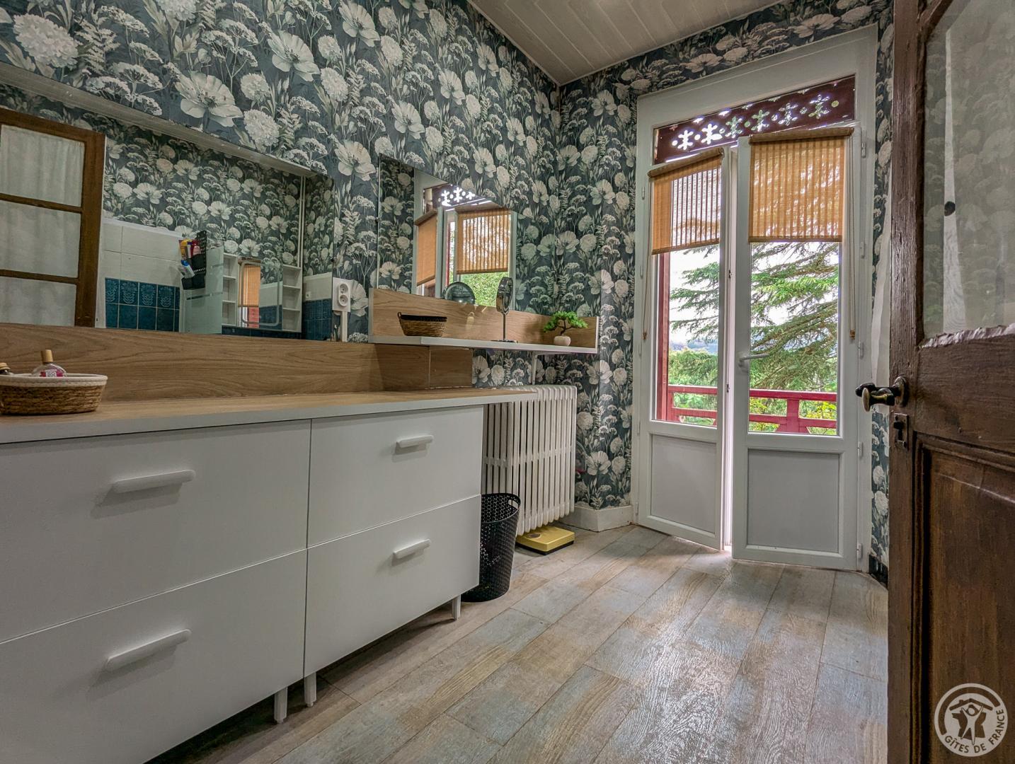 – au 1er étage : chambre Mireille et Jean (1 lit 2 personnes en 140cm + convertible en 140cm + dressing + salle d’eau, chambre Monique (1 lit 2 personnes en 140cm), chambre Claude (1 lit 2 personnes en 140cm + 1 lit méridienne en 80cm), salle de bains. 1/2 palier supérieur : chambre Annie (1 lit 2 personnes en 140cm + 1 canapé convertible 140cm + salle d’eau + balcon).