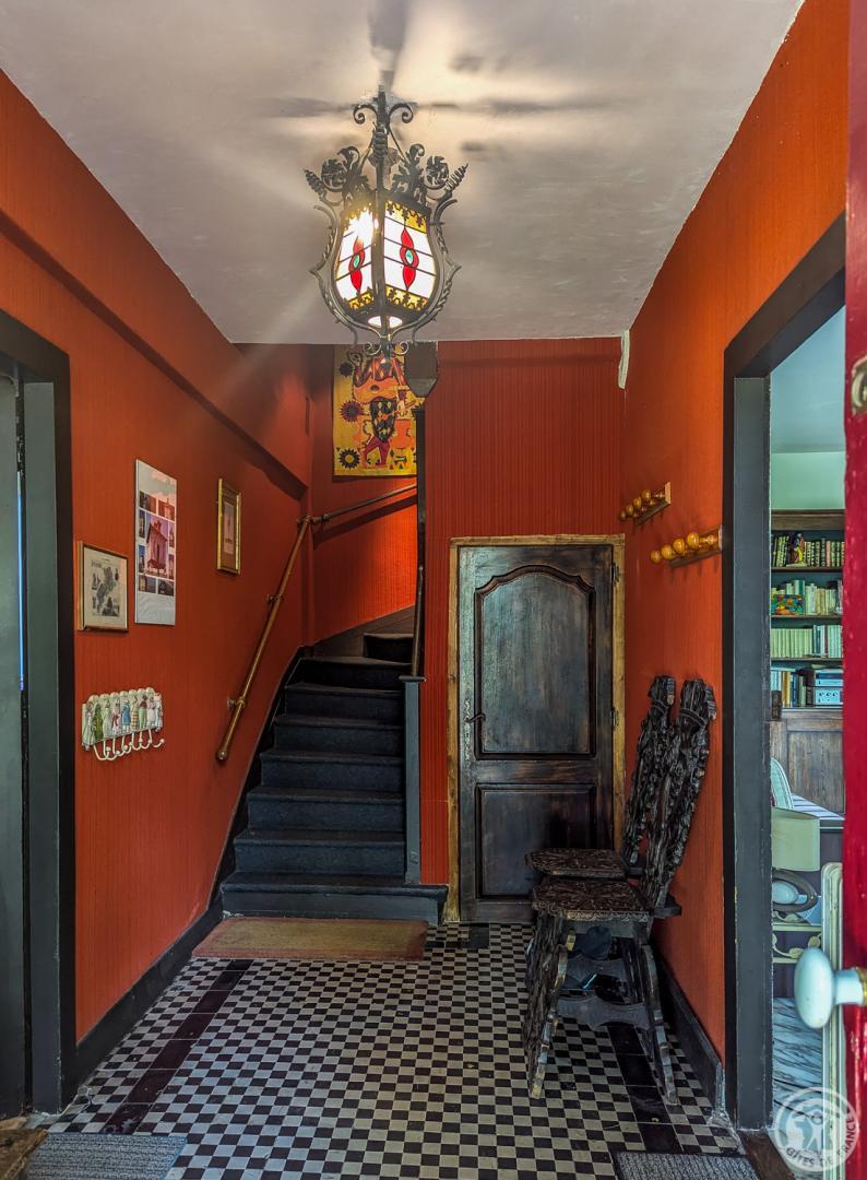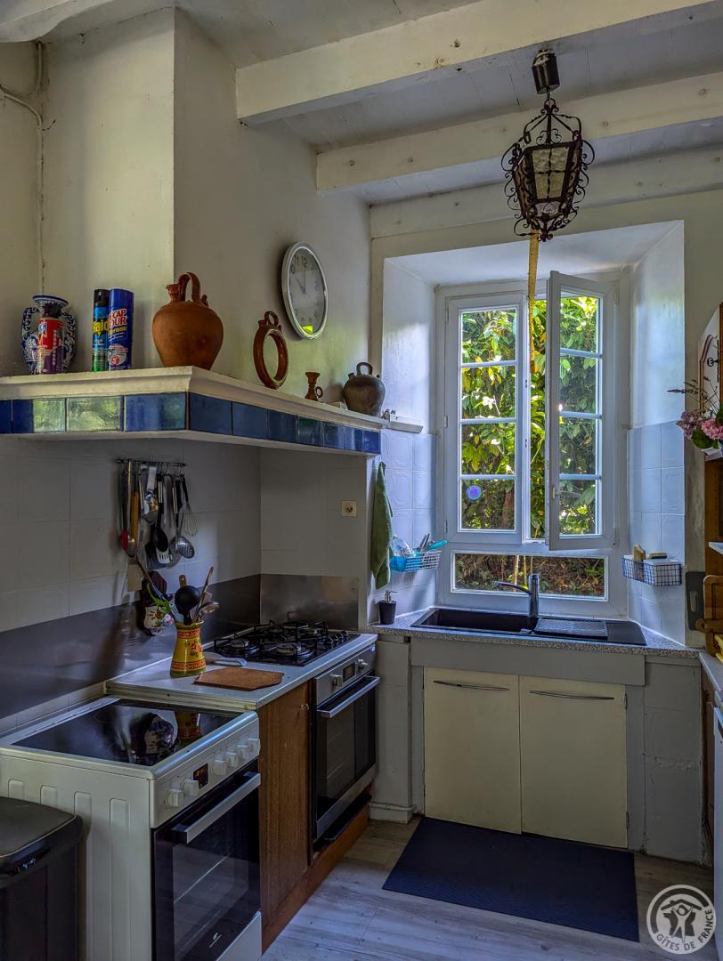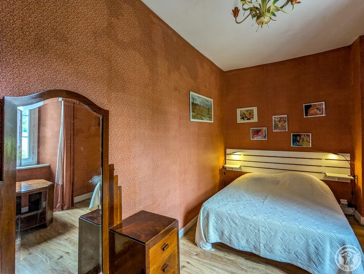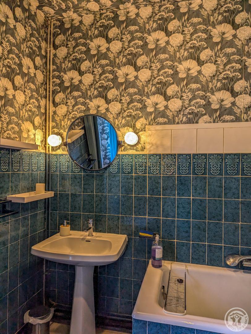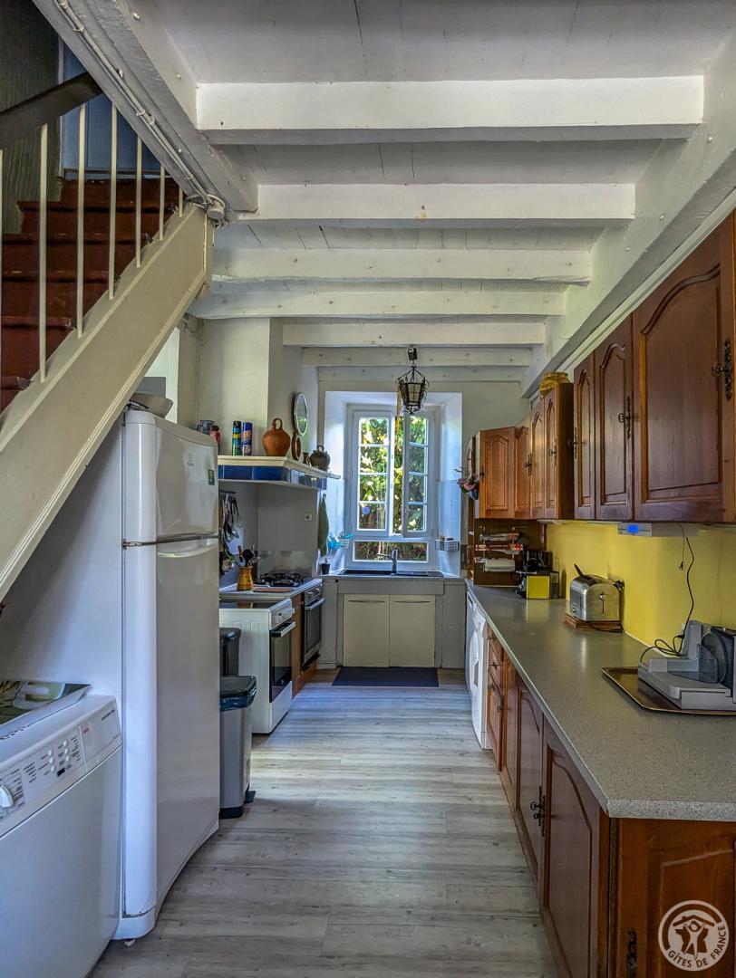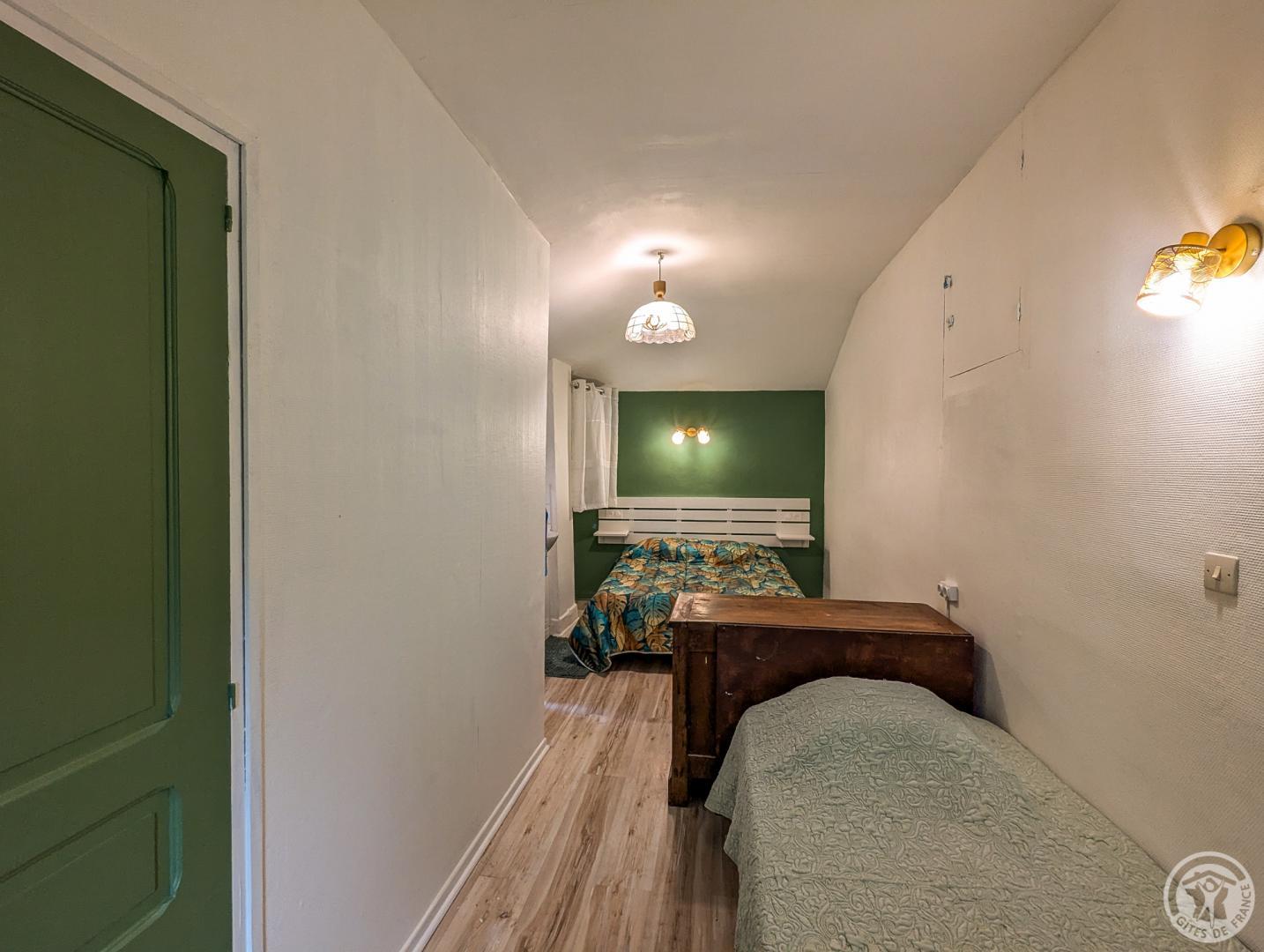– par la cuisine (escalier raide) : chambre Céline au 1er étage (1 lit 2 personnes en 140cm + 1 lit en 90cm + lavabo + WC sanibroyeur)