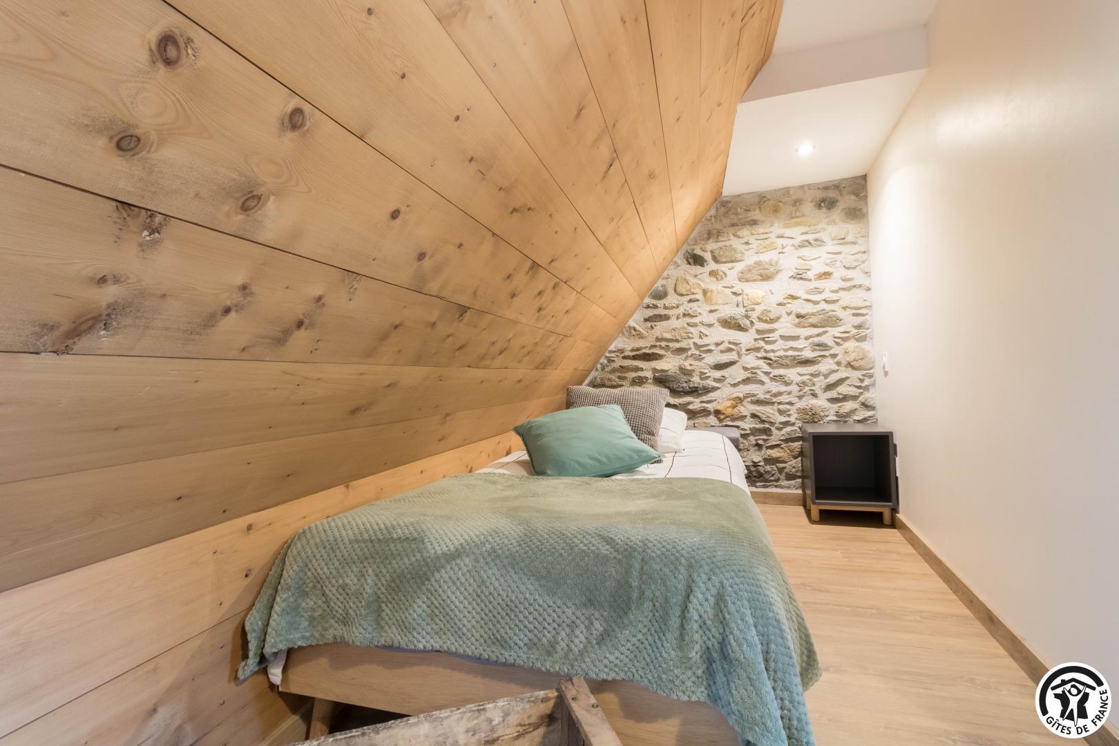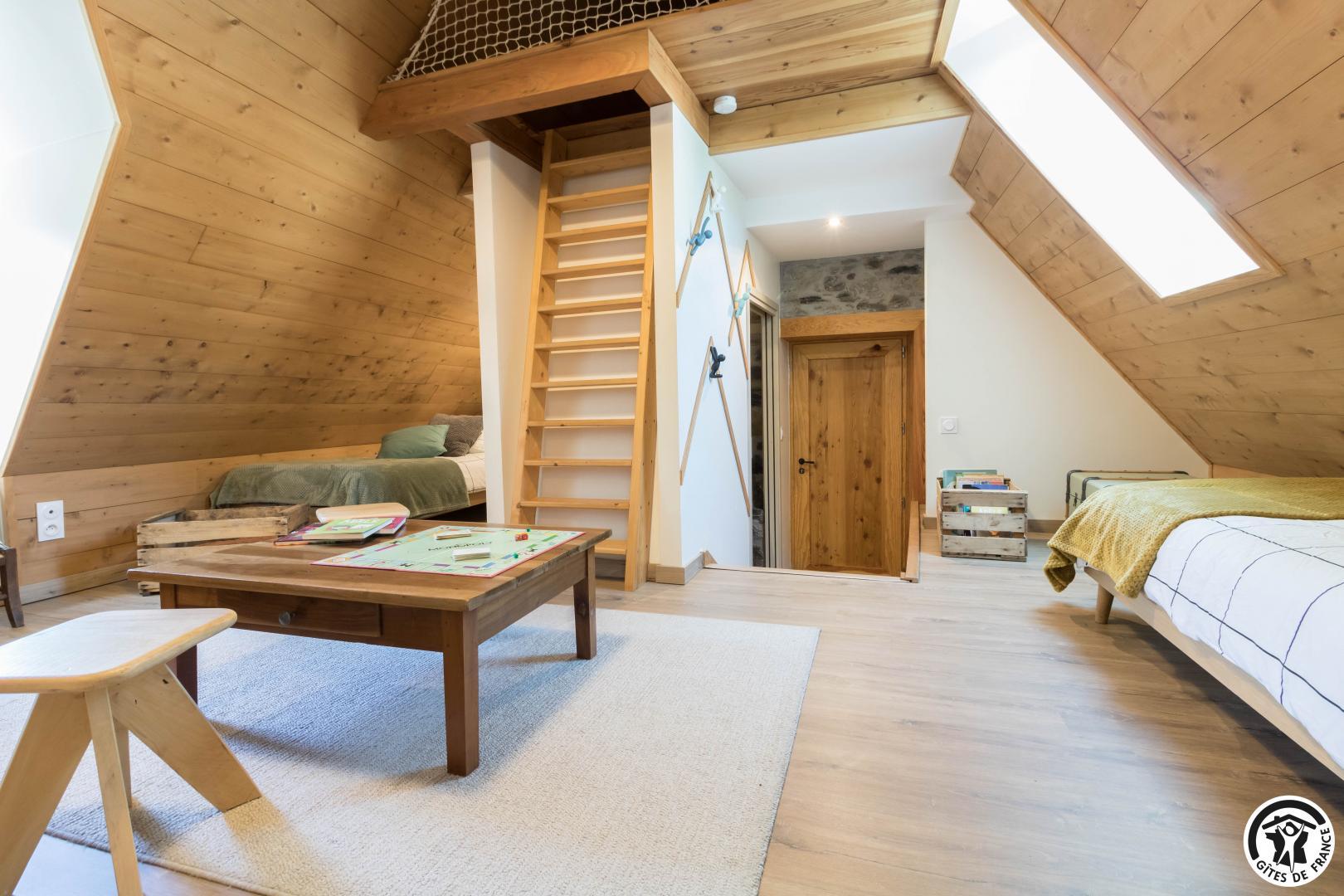 – au deuxième étage (accès depuis la rue pour décharger vos affaires) : dortoir pour enfants avec 3 lits pour 1 personne en 90*190cm. Mezzanine avec 1 lit supplémentaire pour 2 personnes en 140*190cm.