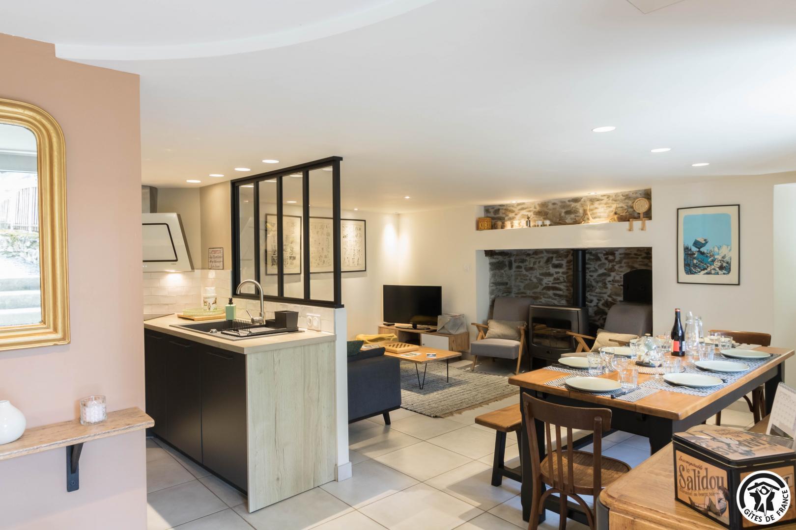 – au rez-de-chaussée composée d’un séjour avec cuisine, salle à manger et salon.