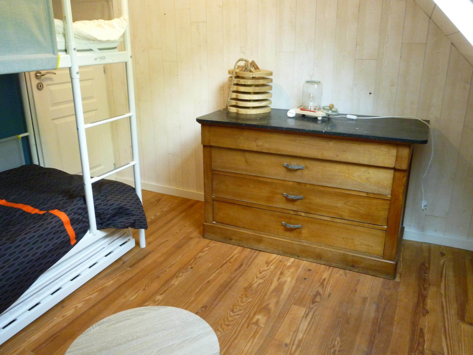 -2 chambres : une chambre parentale avec un lit double en 160 et un lit simple et la deuxième chambre avec un lit superposé plus un lit tiroir. Les draps sont fournis pour les locations à la semaine uniquement.