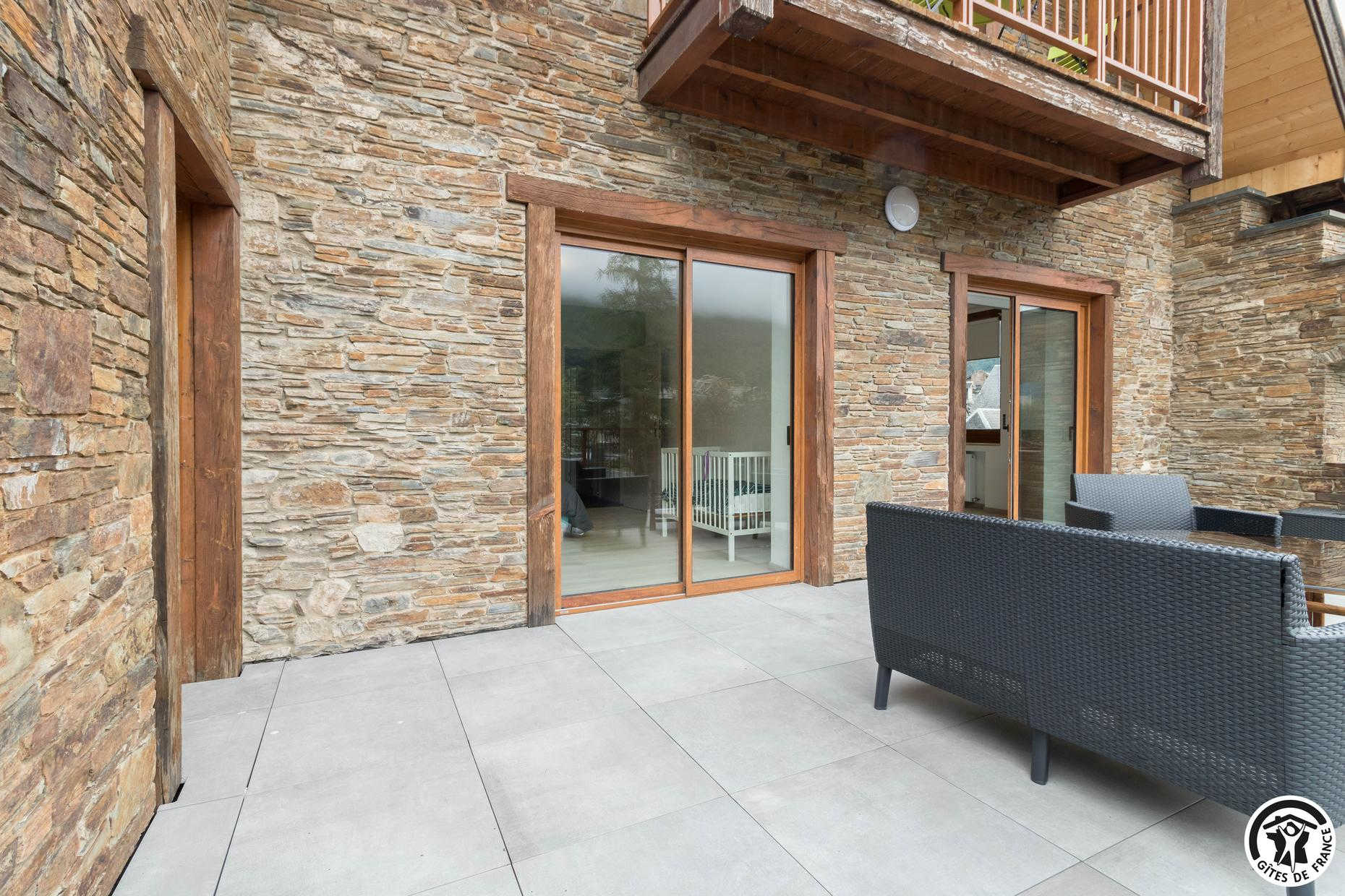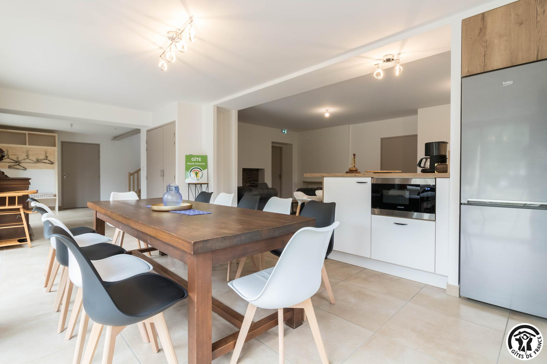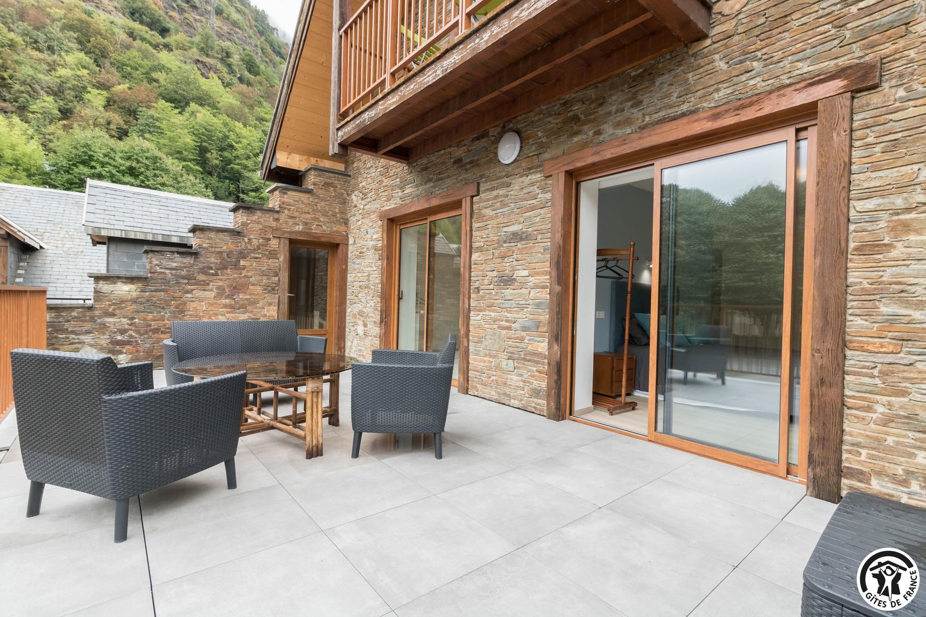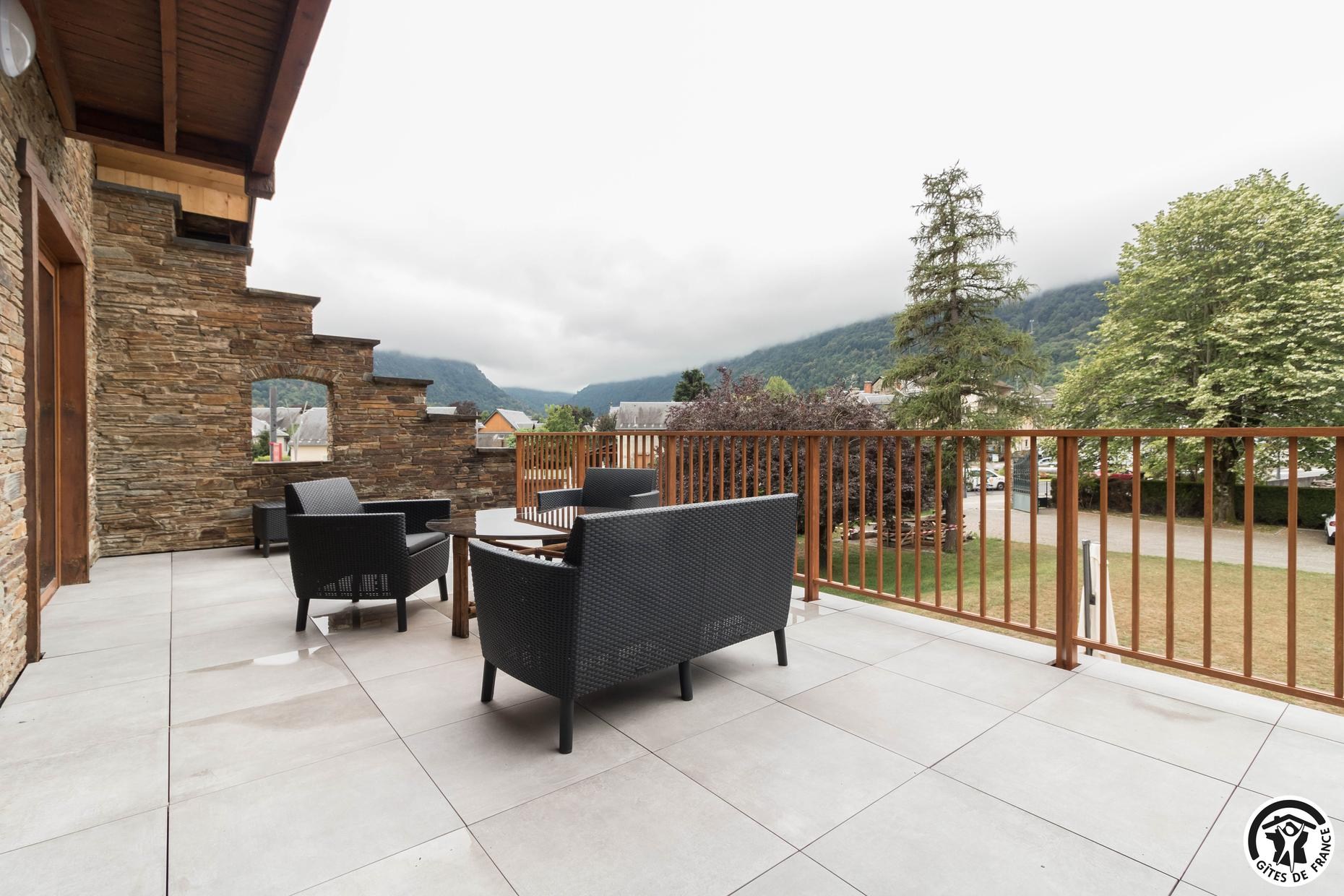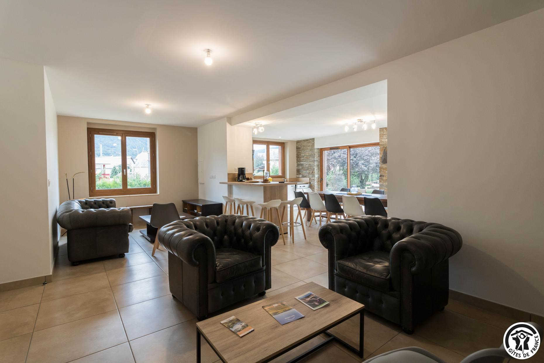 Superbe façade en pierres des Pyrénées. Gîte fait pour les groupes de 15 personnes : familles ou professionnels. Espace de coworking et salle de réunion sur place.