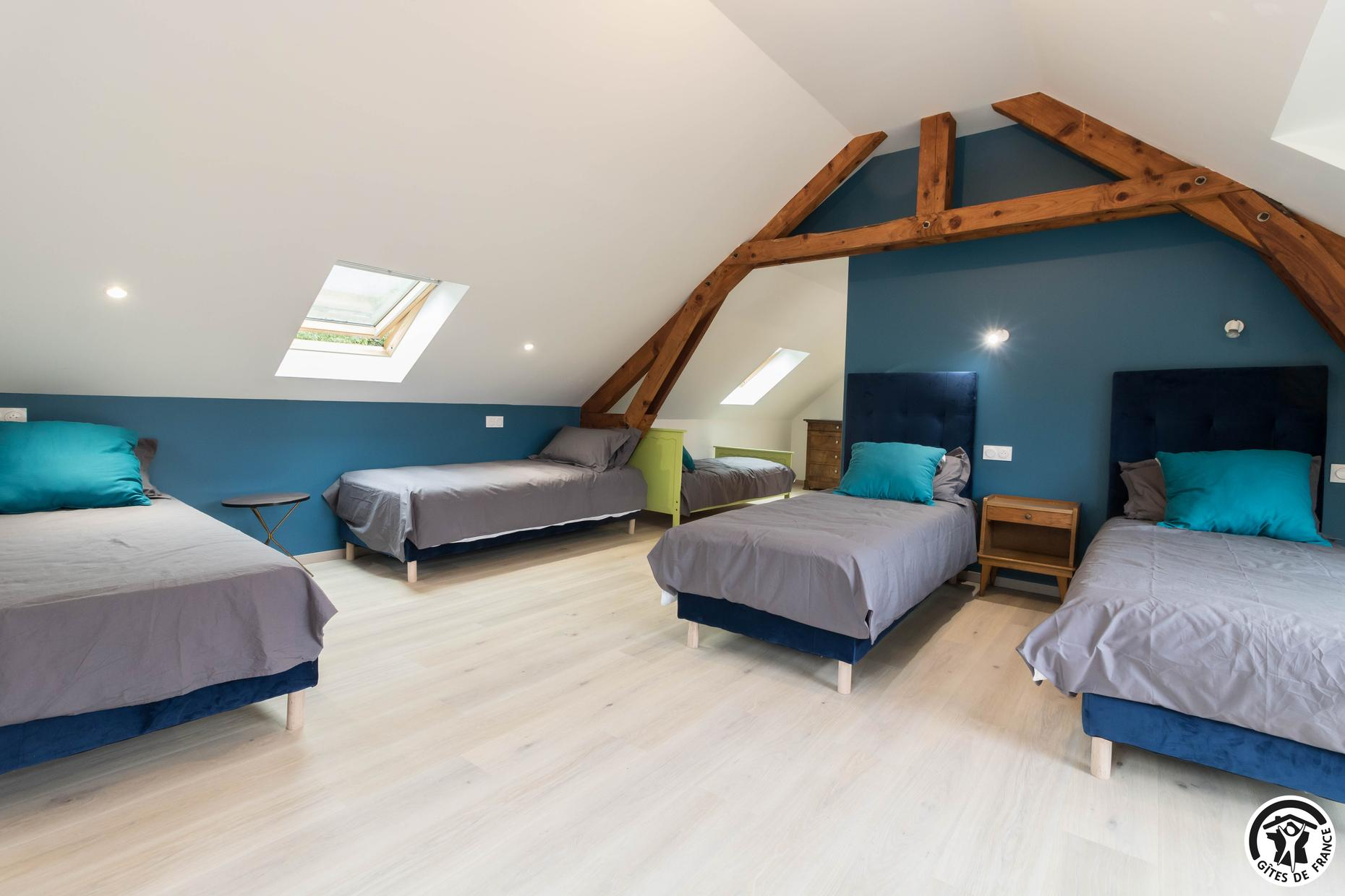 Hébergement comprenant 6 chambres, 13 lits (5 lits doubles en 160X200cm et 8 lits simples en 90X200cm), 4 salles d’eau et 4 WC :