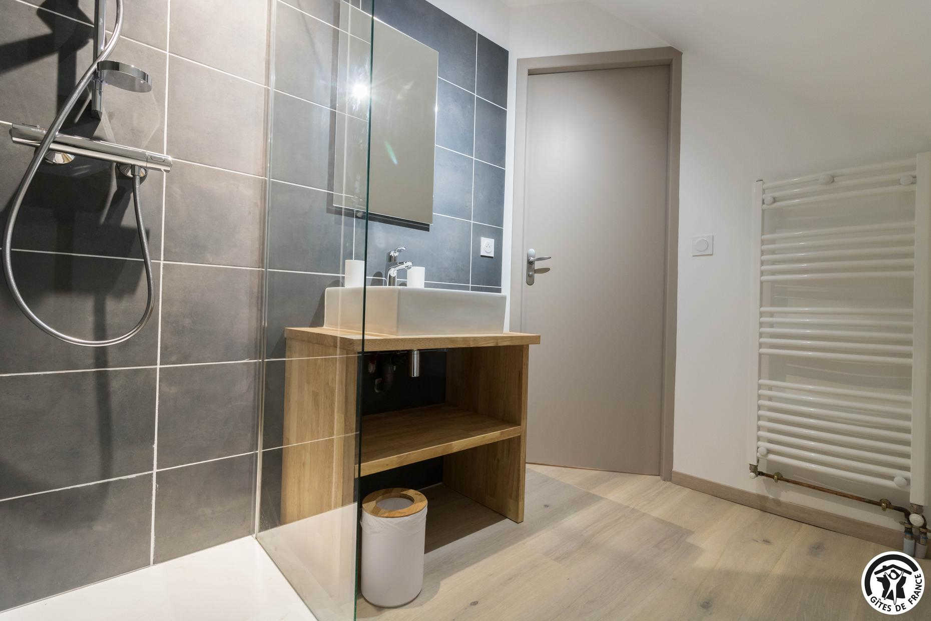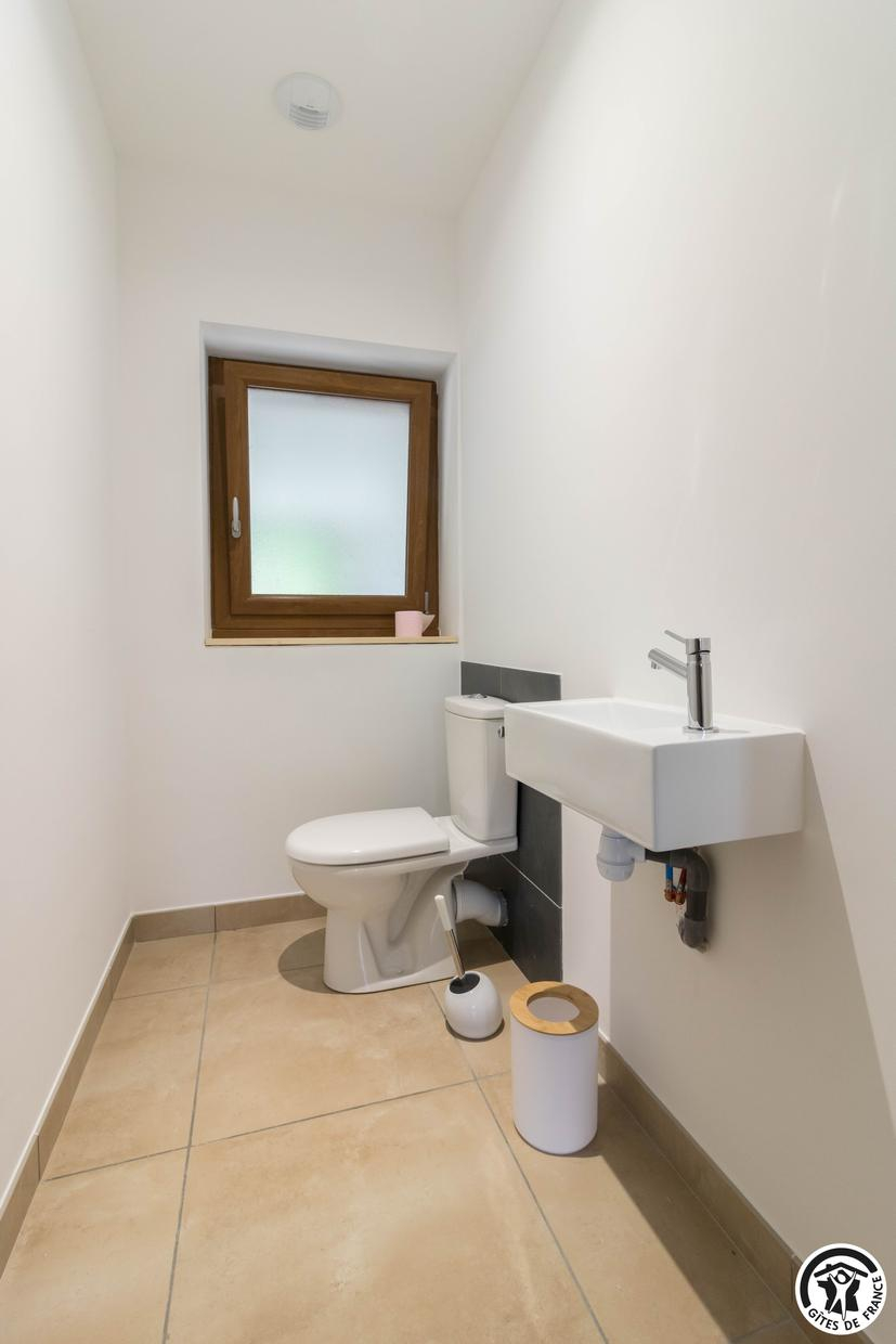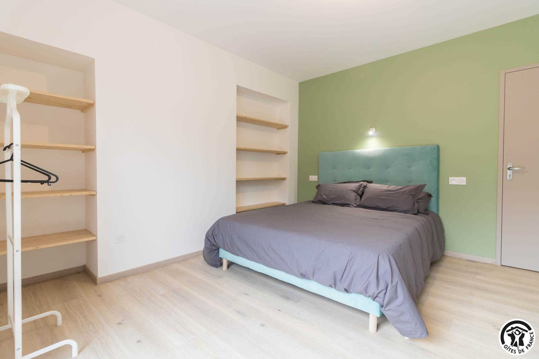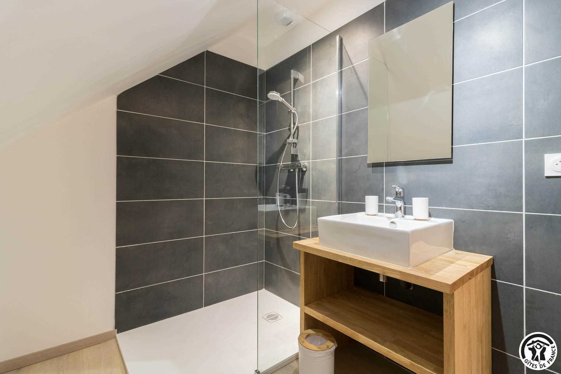 – Au deuxième étage : une chambre avec 1 lit double et 2 lits simples ainsi qu’une salle d’eau privative avec WC.