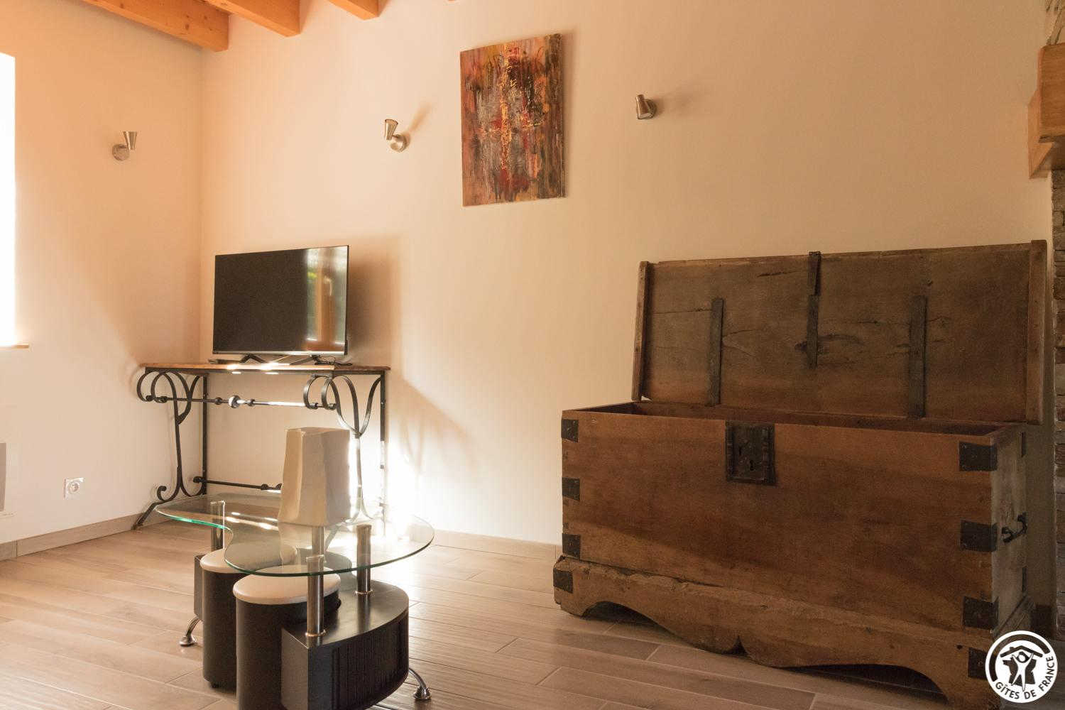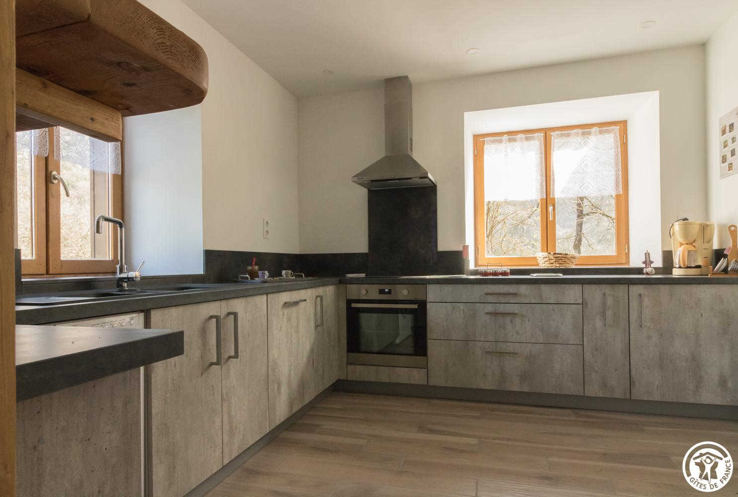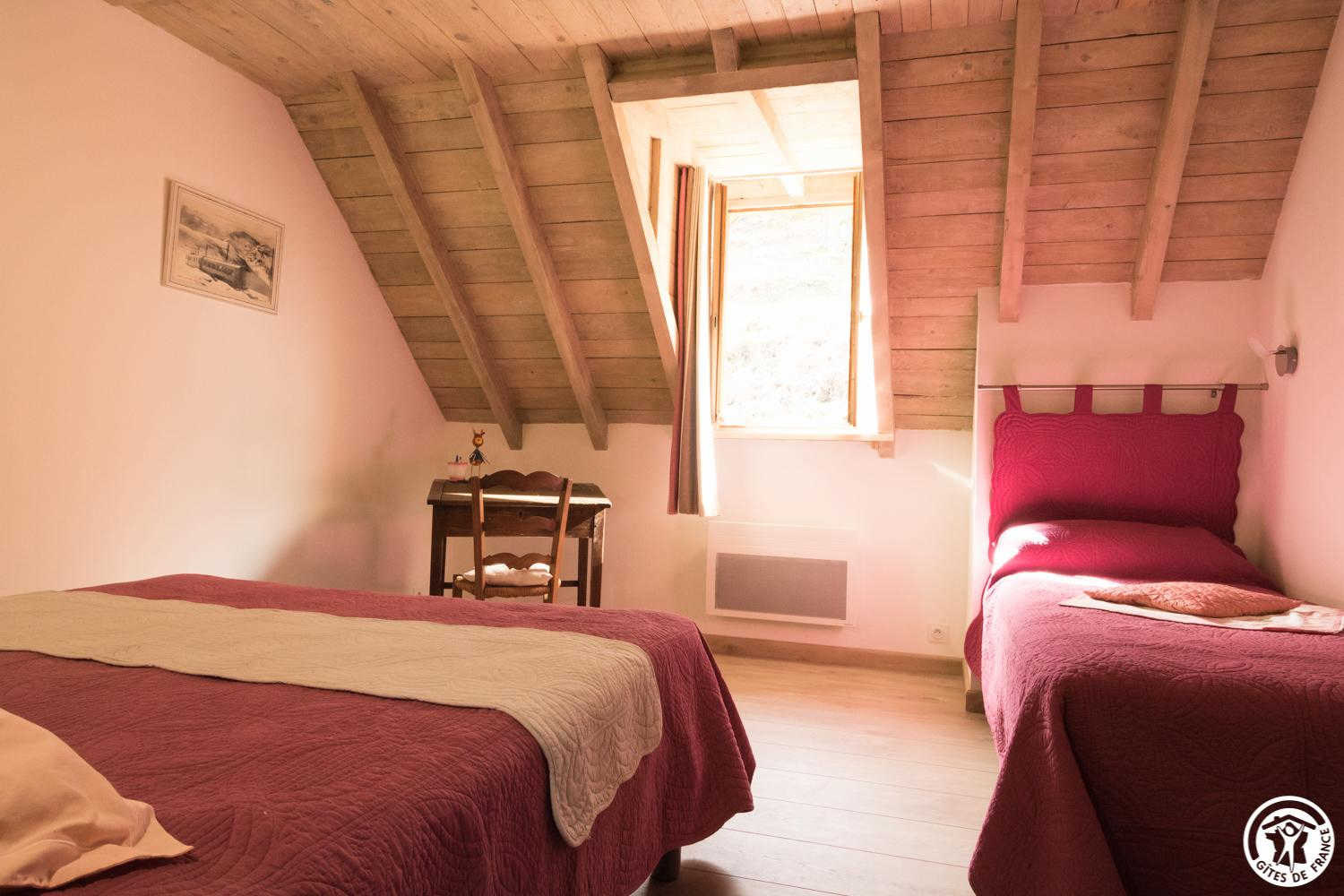 Au rez-de-chaussée du gîte : entrée après deux marches, cuisine intégrée (four intégré, plaque vitrocéramique à 3 feux, réfrigérateur-congélateur, micro-ondes), séjour avec coin-repas et espace salon, une chambre avec sa petite salle d’eau et WC séparés à l’intérieur de la chambre (1 lit pour 2 personnes en 160*200cm). A l’étage : salle d’eau avec une grande douche et deux vasques, WC séparés, 2 chambres avec chacune (1 lit pour 2 personnes en 160*200 et 1 lit pour 1 personne en 90*190). Jardin. Aire de stationnement. Chauffage électrique. Accès Internet Wifi. Animaux non-admis. Jardin clos.