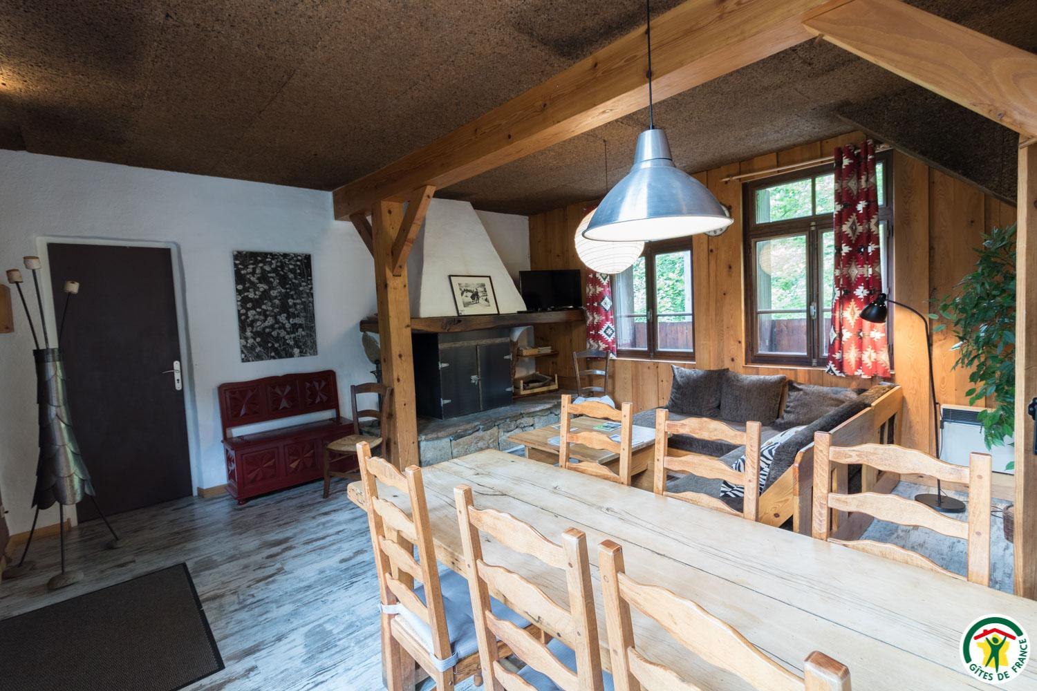 – au rez-de-chaussée : séjour (cheminée) avec cuisine, coin-nuit (2 lits simple superposés en 90*190cm), chambre (1 lit double en 140cm), salle de bains + douche, WC séparé.