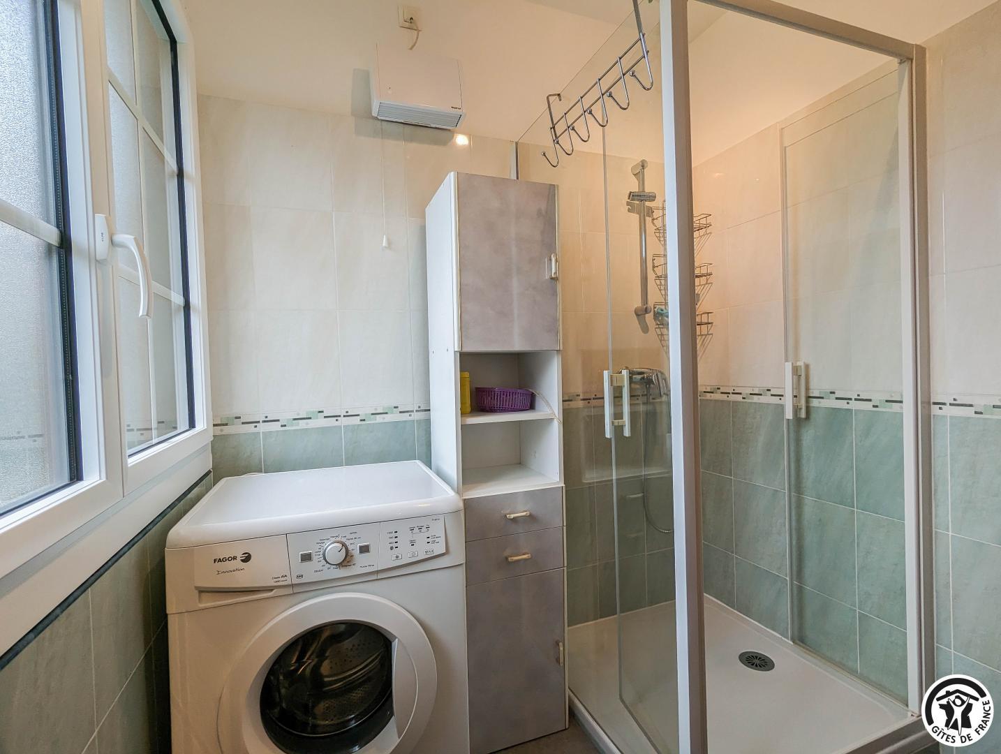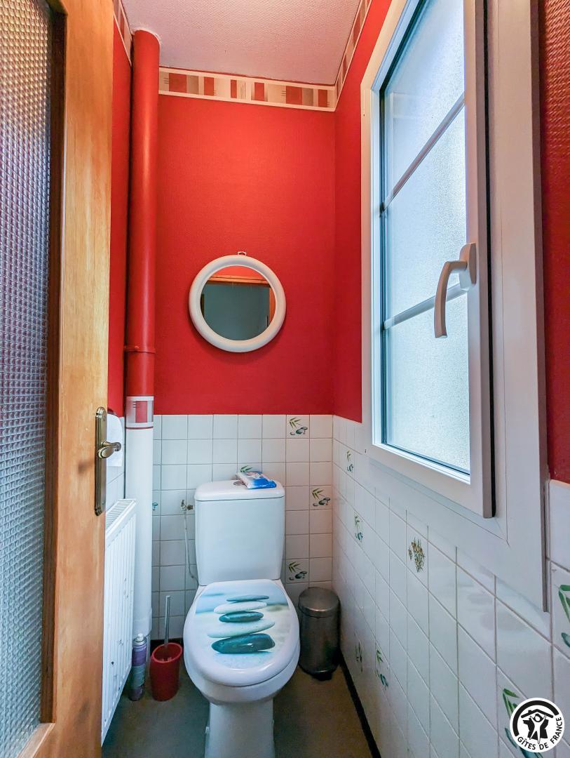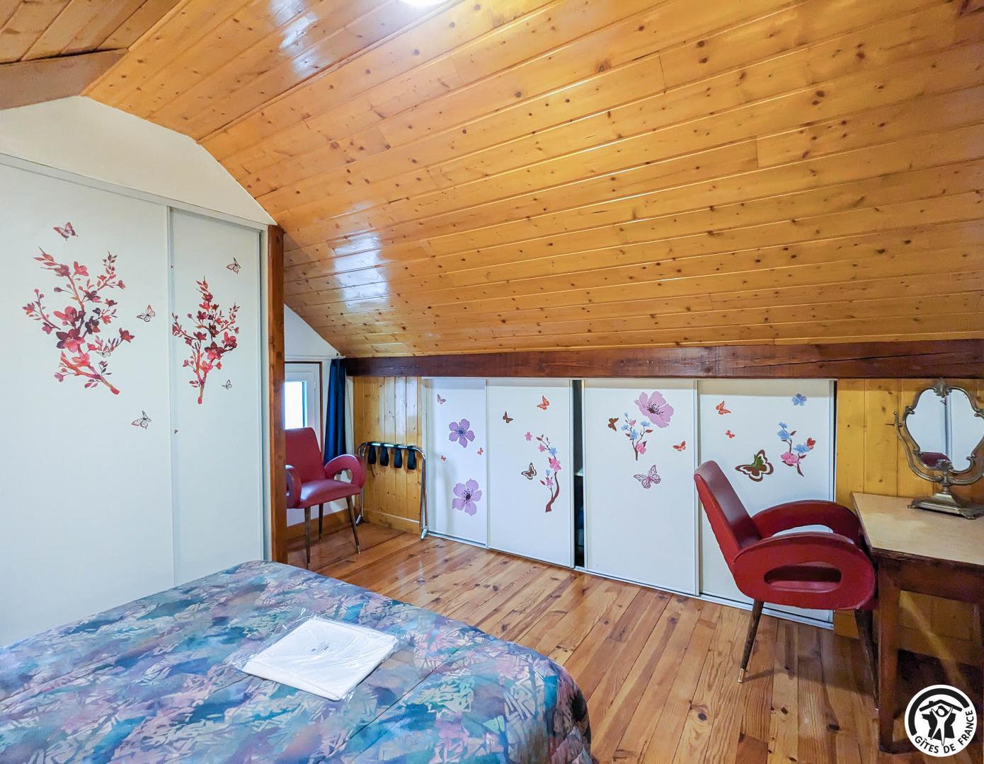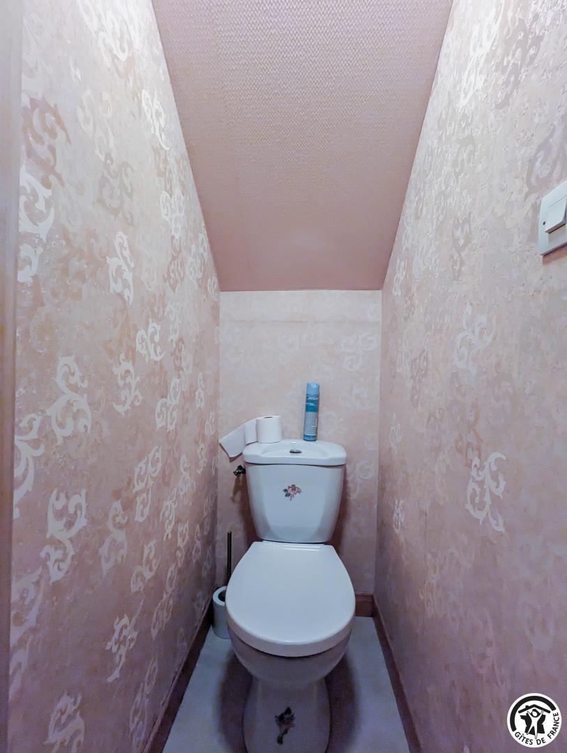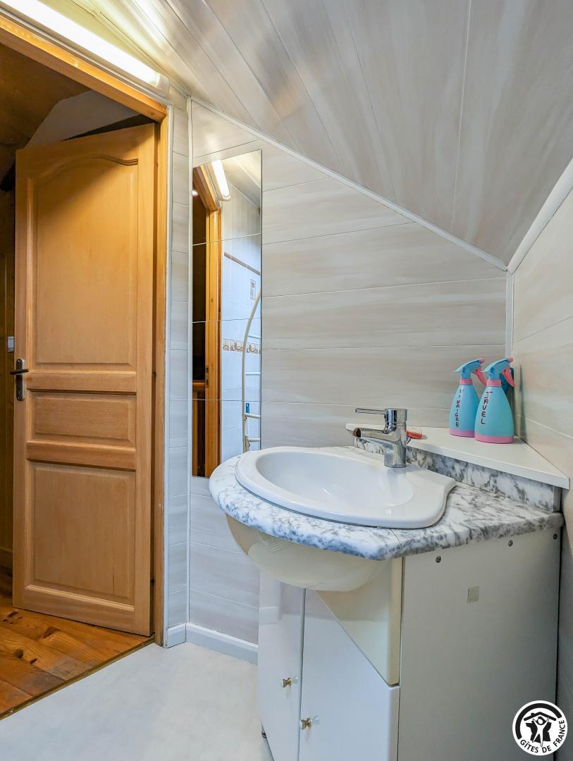 – au deuxième étage : 2 chambres mansardées (2 lits en 90 cm et 2 lits superposés en 90cm) (1 lit 2 personnes en 140cm), salle de bains, WC séparé et coin-jeux pour enfants