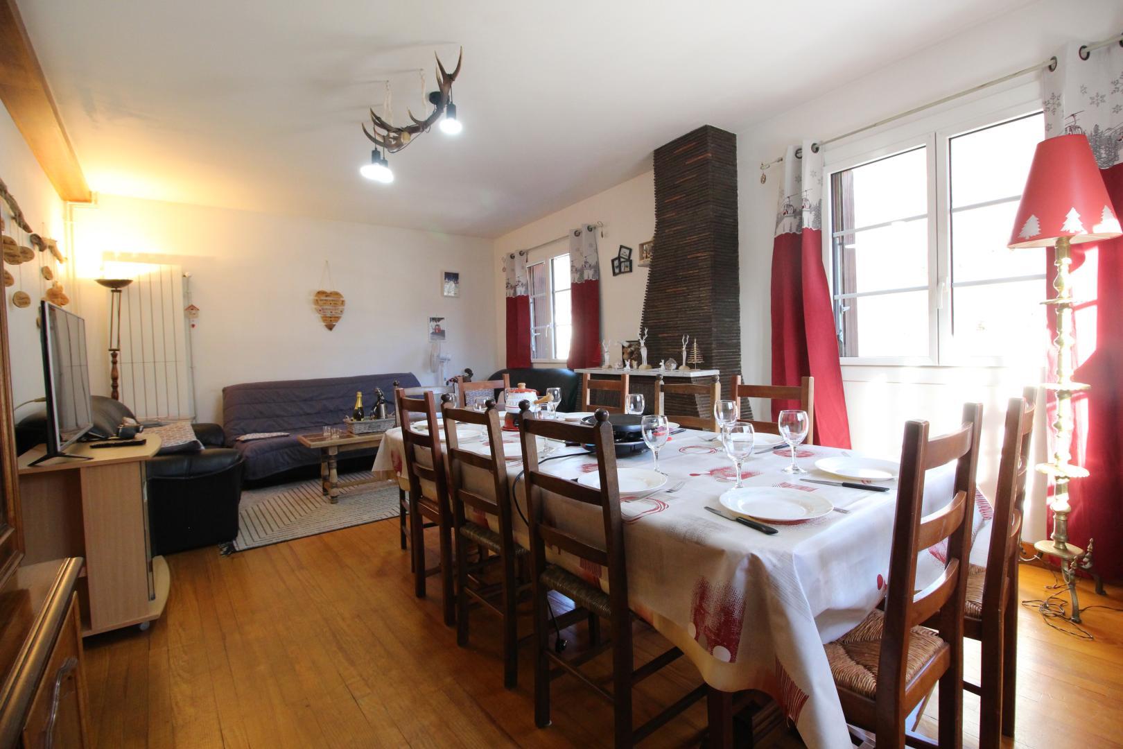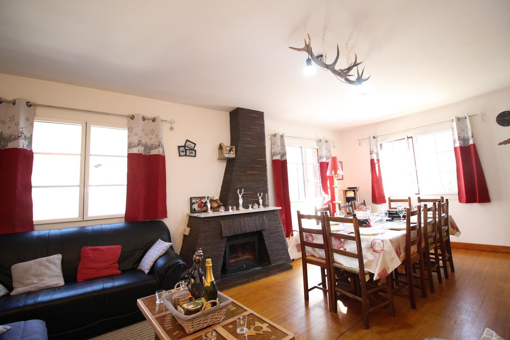 Maison indépendante exposée plein Sud avec belle vue sur les montagnes avoisinantes. Jardin clos, terrasse de 12m² et parking fermé pour deux véhicules. Garage pour deux voitures, vélos, motos, skis, remorques. Gîte avec 4 chambres et 7 lits aménagé :